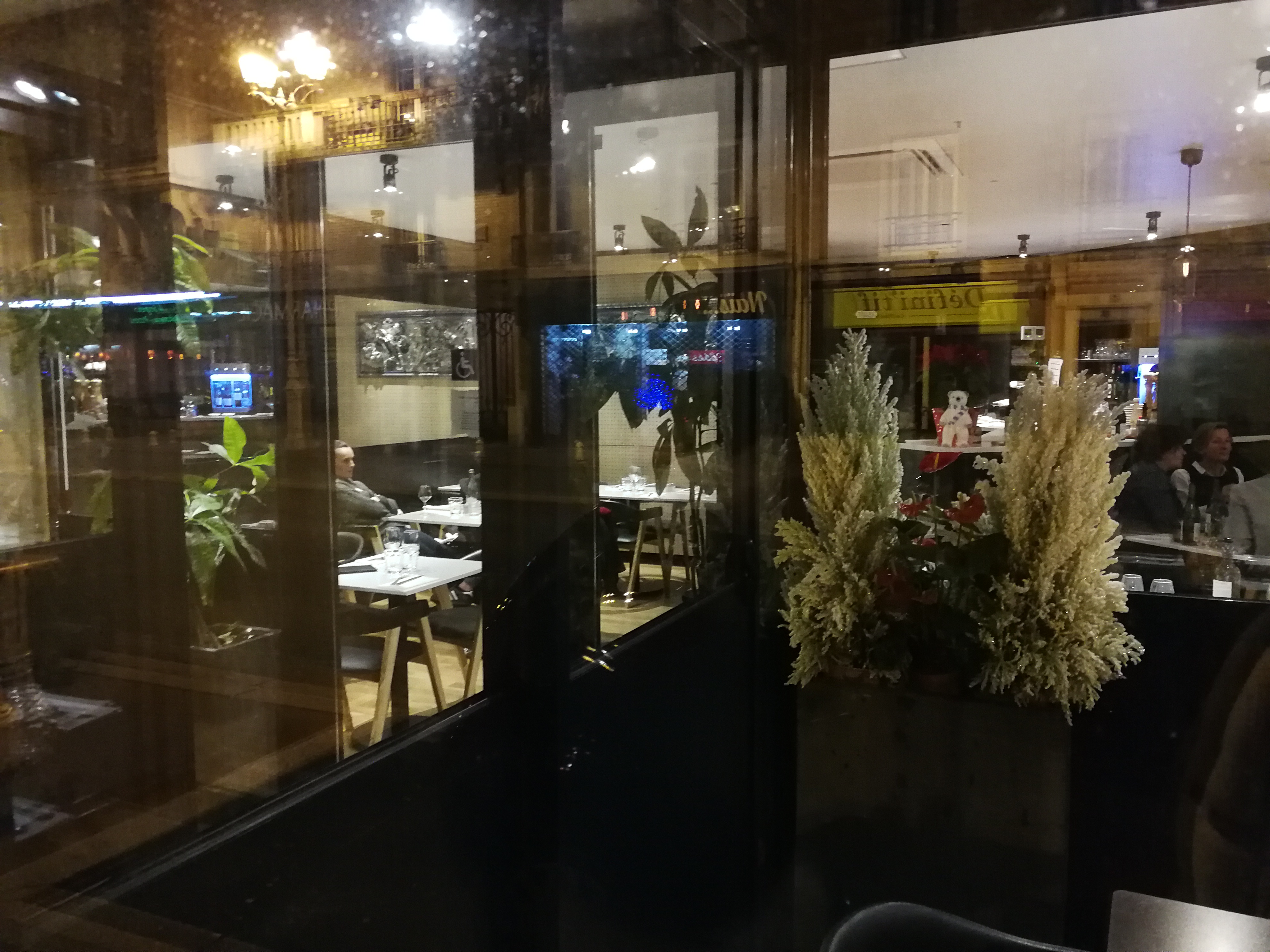 Il est plutôt bien situé. L'accueil fut très chaleureux, le service très rapide, peut être même un peu trop, je finissais ma dernière bouchée que nos desserts nous attendaient déjà. La viande était correcte mais je n'ai pas apprécié qu'elle soit arrivée déjà arrosée de sauce au poivre, j'aurais préféré gérer doser moi même la quantité de sauce. Les frites n'avaient aucune saveur et étaient particulièrement sèches malgré leur grosseur Le vin portugais était excellent.