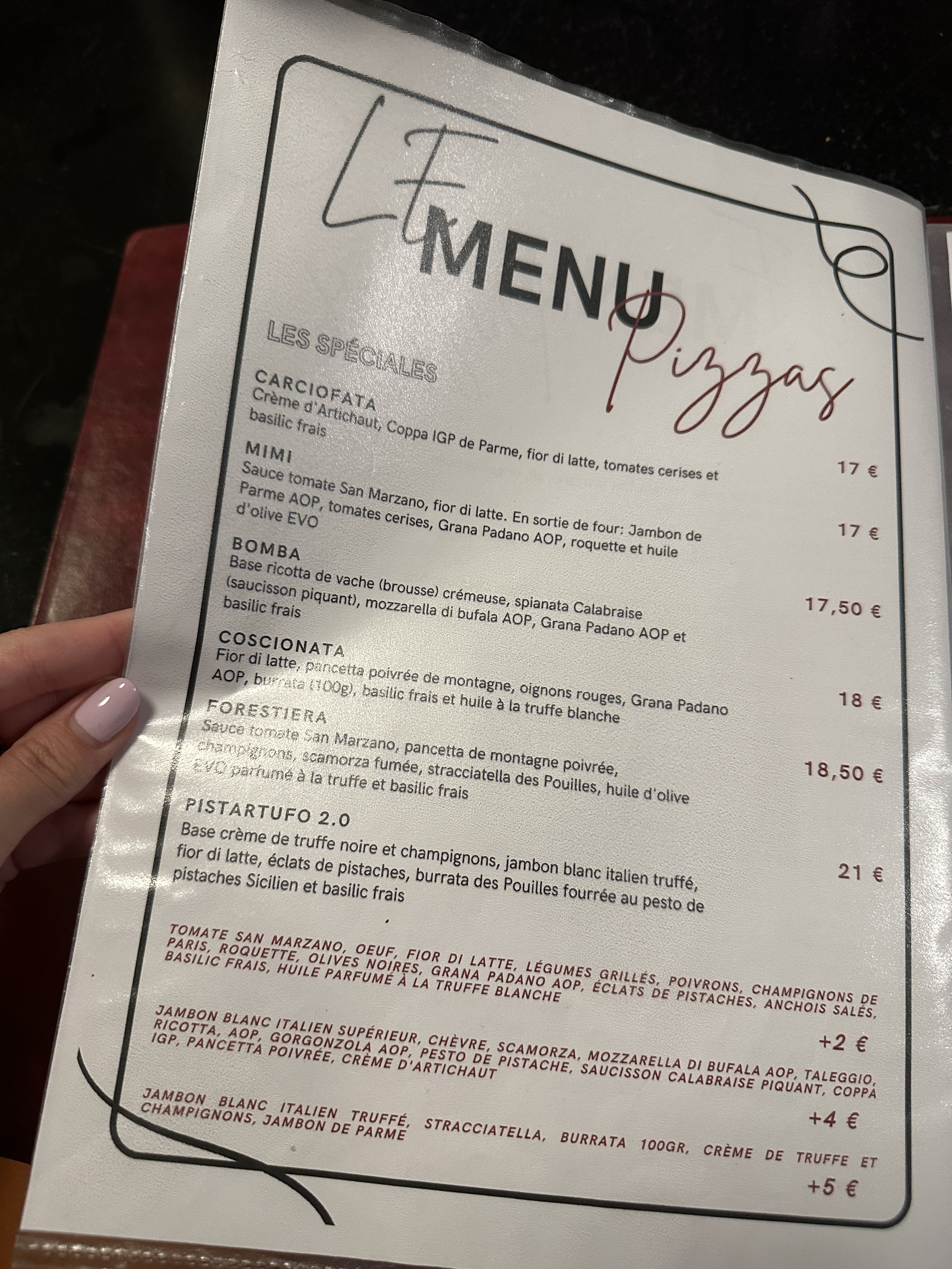 Pizza testée en livraison. Truffe blanche dans l'huile absolument pas présente et burrata mousseuse et non coulante peu agréable à manger. Sinon la pâte est très bonne. À voir en allant manger sur place si l'expérience est différente.