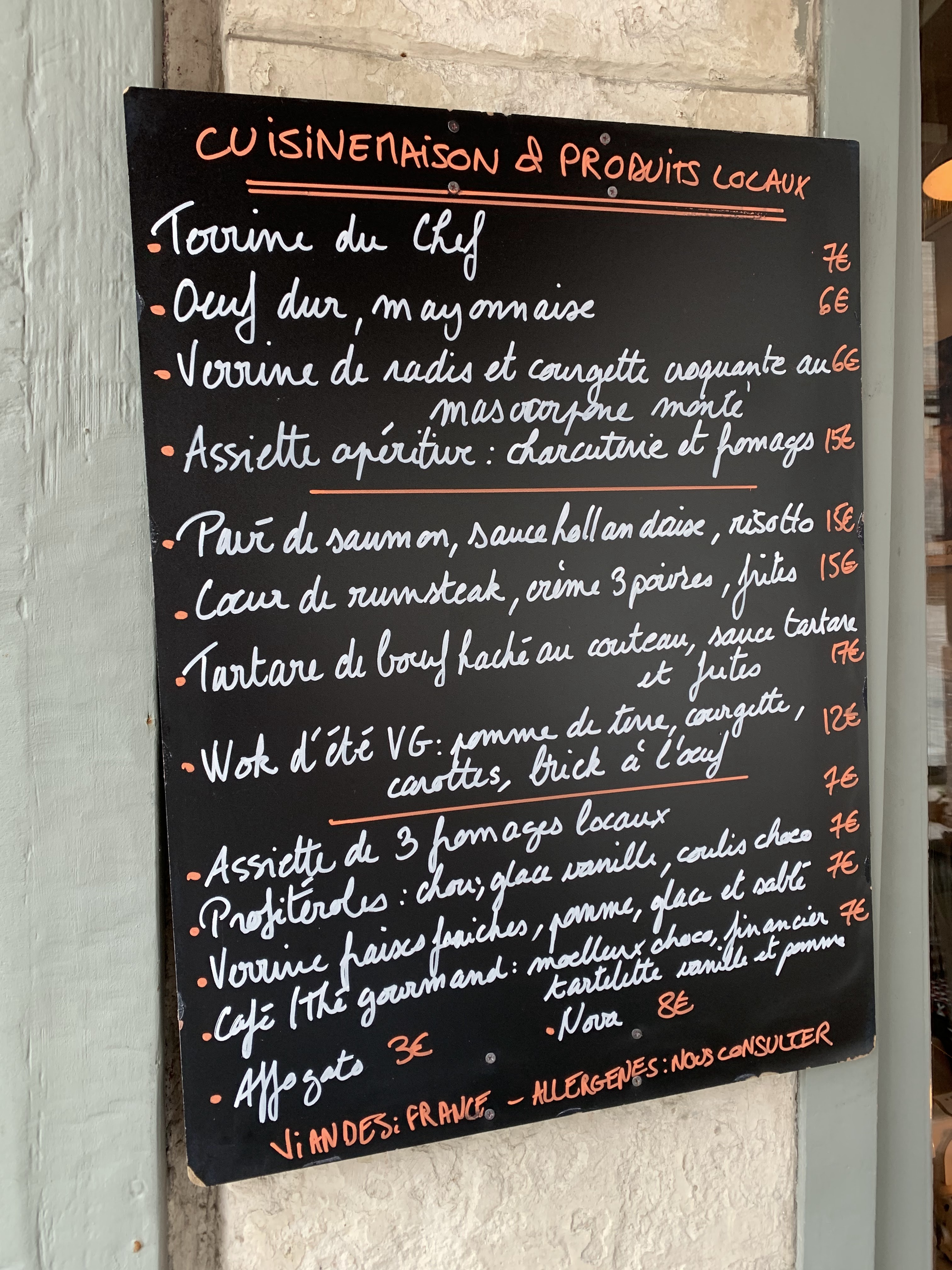 rien à redire... la bonne nourriture, accueil très chalereux. La carte change tous les jours et que des produits frais et de saison.