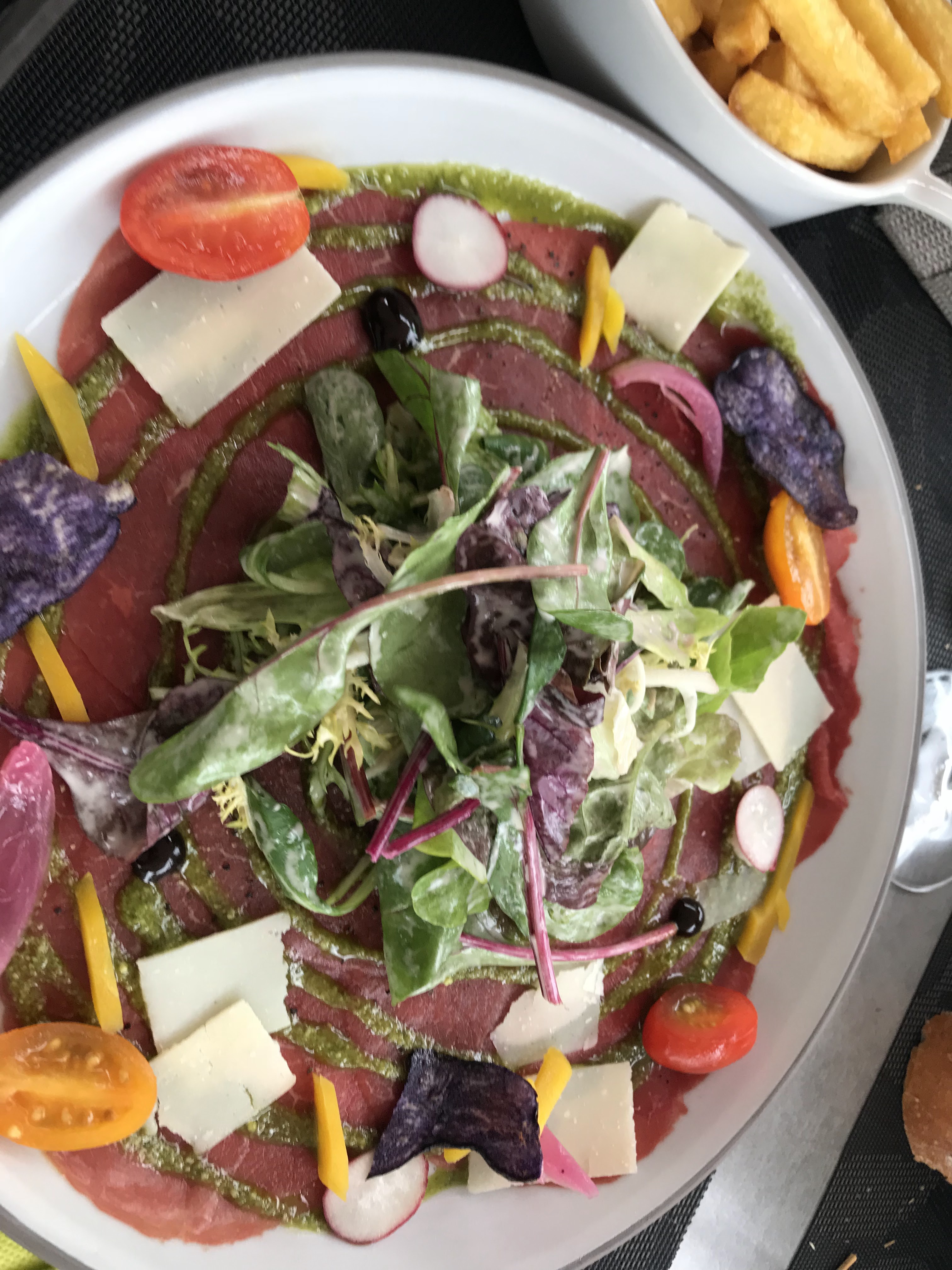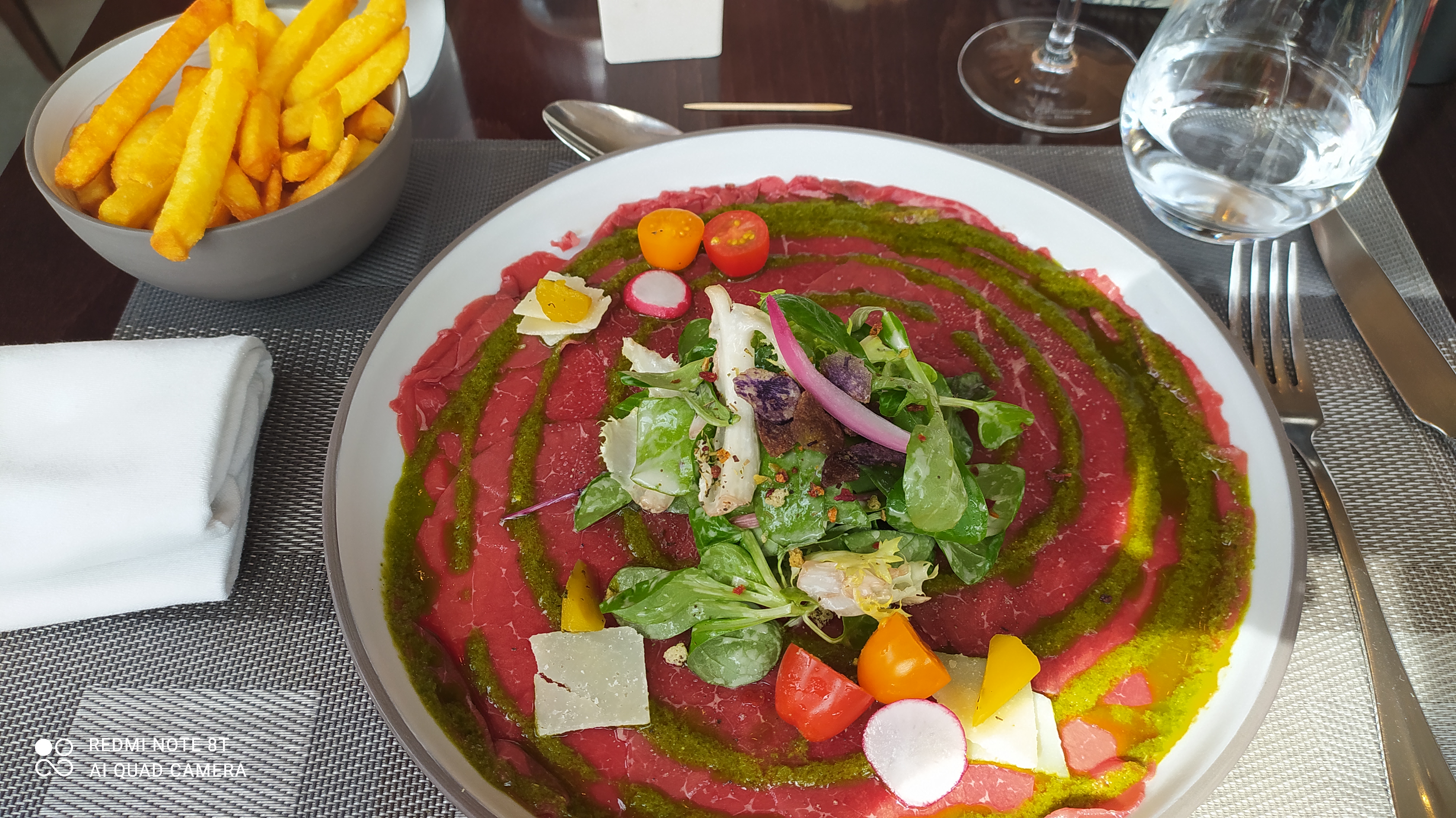 Très beau cadre. C'est bon... mais cher( pavé de bœuf qui devait faire 1cm d'épaisseur et ne dépasse pas les 140gr pour 25€... Désolé, mais c'est trop juste...