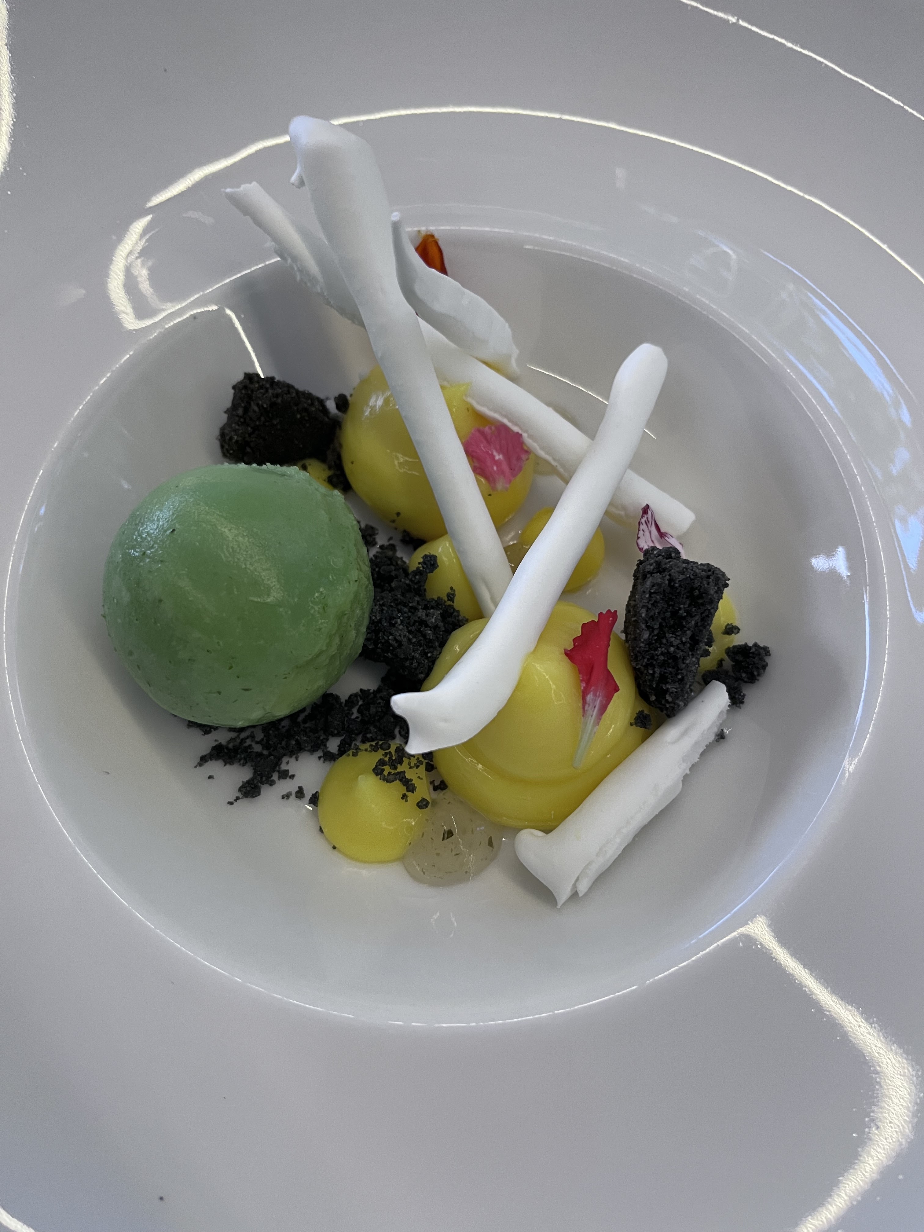 Filet de sandre roti somptueux et le dessert mousse de fromage blanc aux abricots confits était original et surprenant. Ma partenaire a été enchantée par le dos de cabillaud au risotto à l'encre et sauce langoustine.nous recommandons vivement.