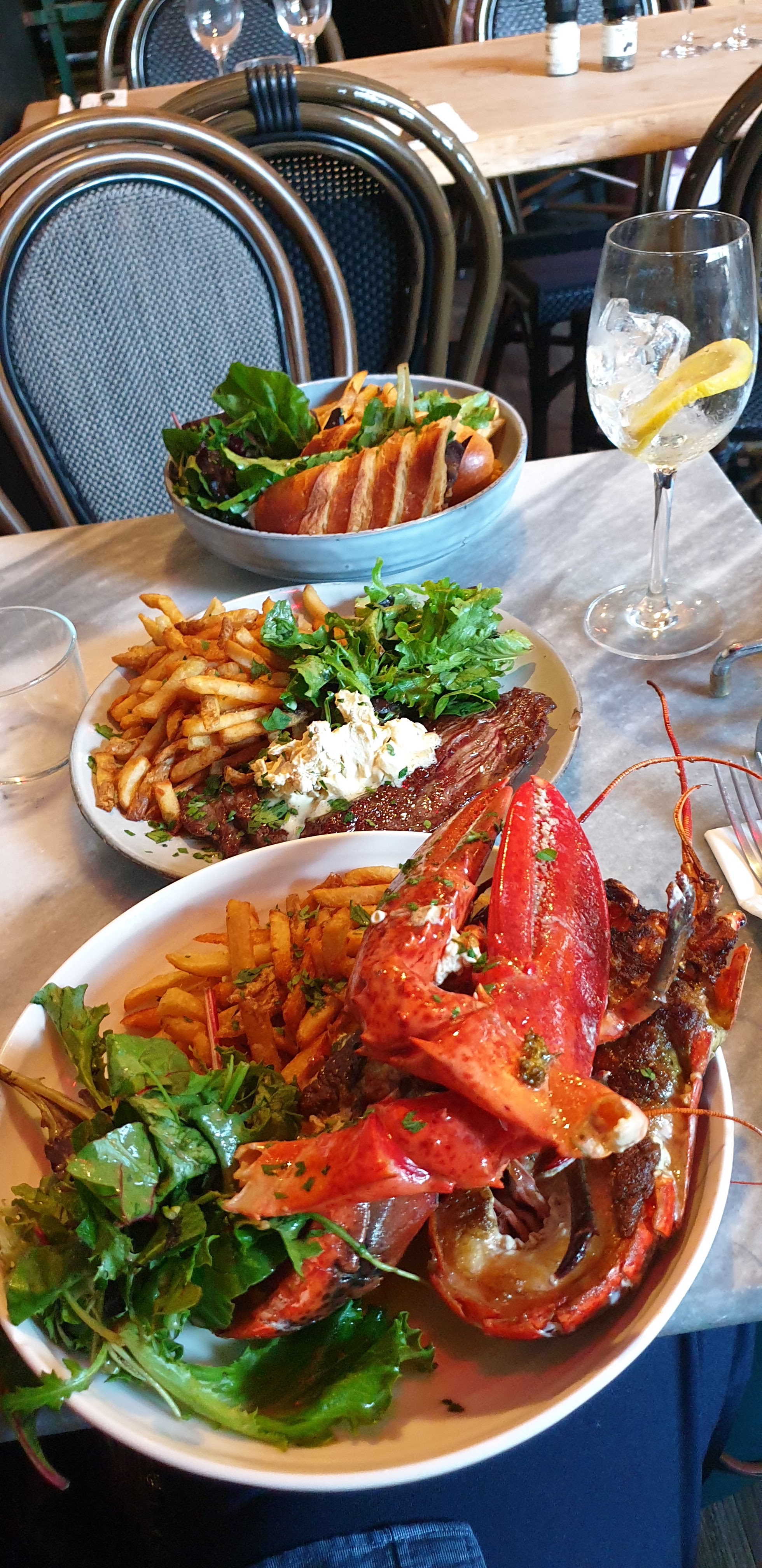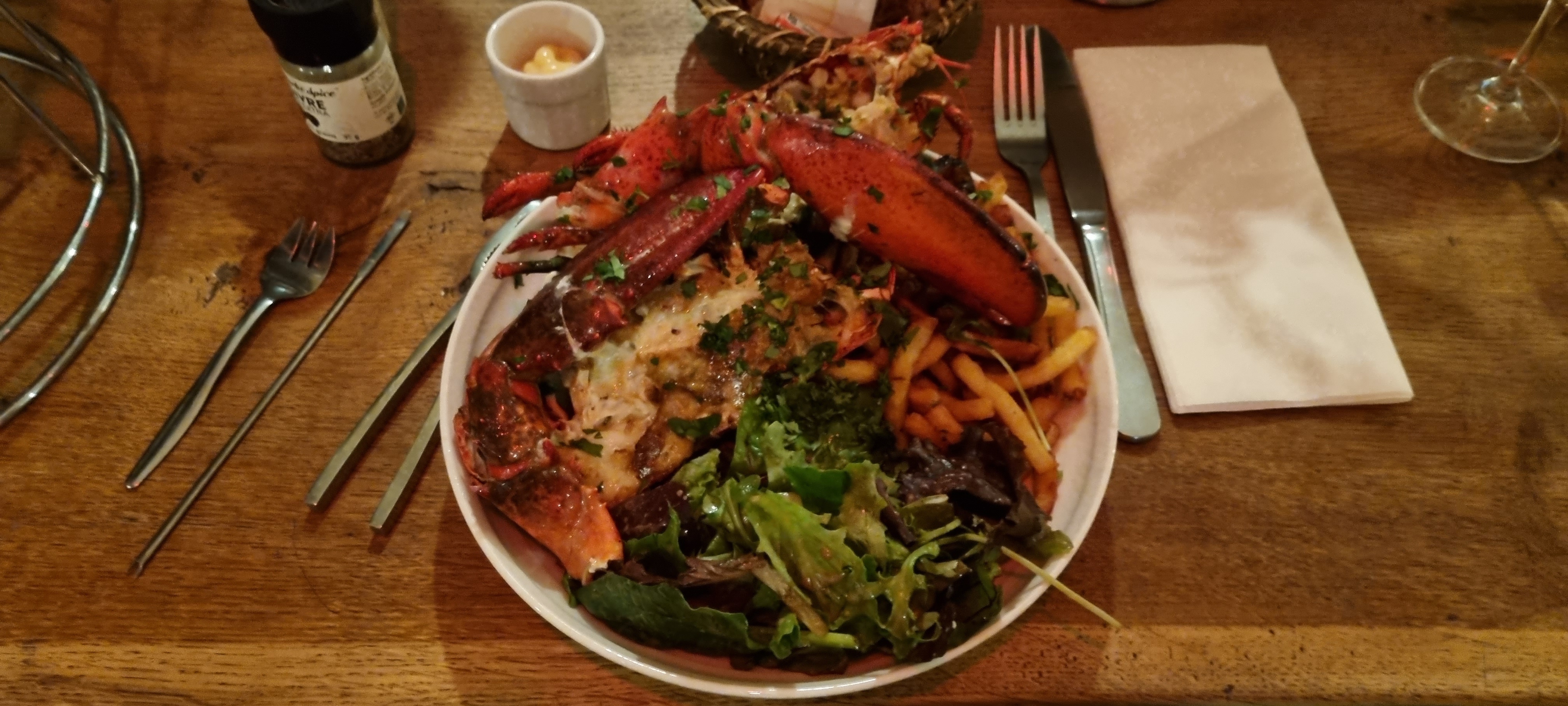 Homard délicieux, sauf que les frites étaient trop salées, la salade était également délicieuse ! 🫡