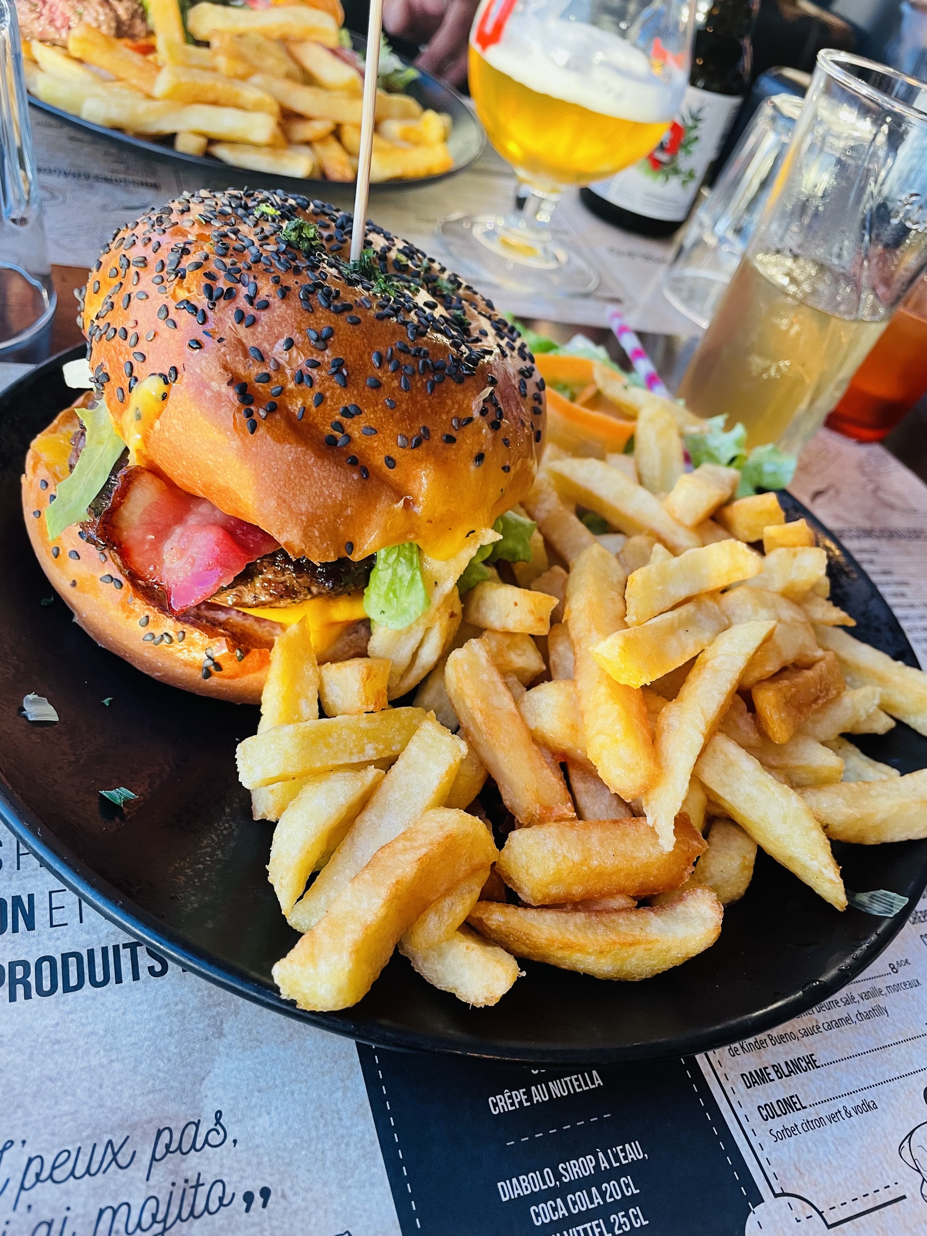 Moules sans saveur. Que ce soit marinières ou gorgonzola Aucune information sur les allergènes, il a été servi des graines de sésames à un enfant allergique ++ Le Menu sur Instagram n’est pas à jour