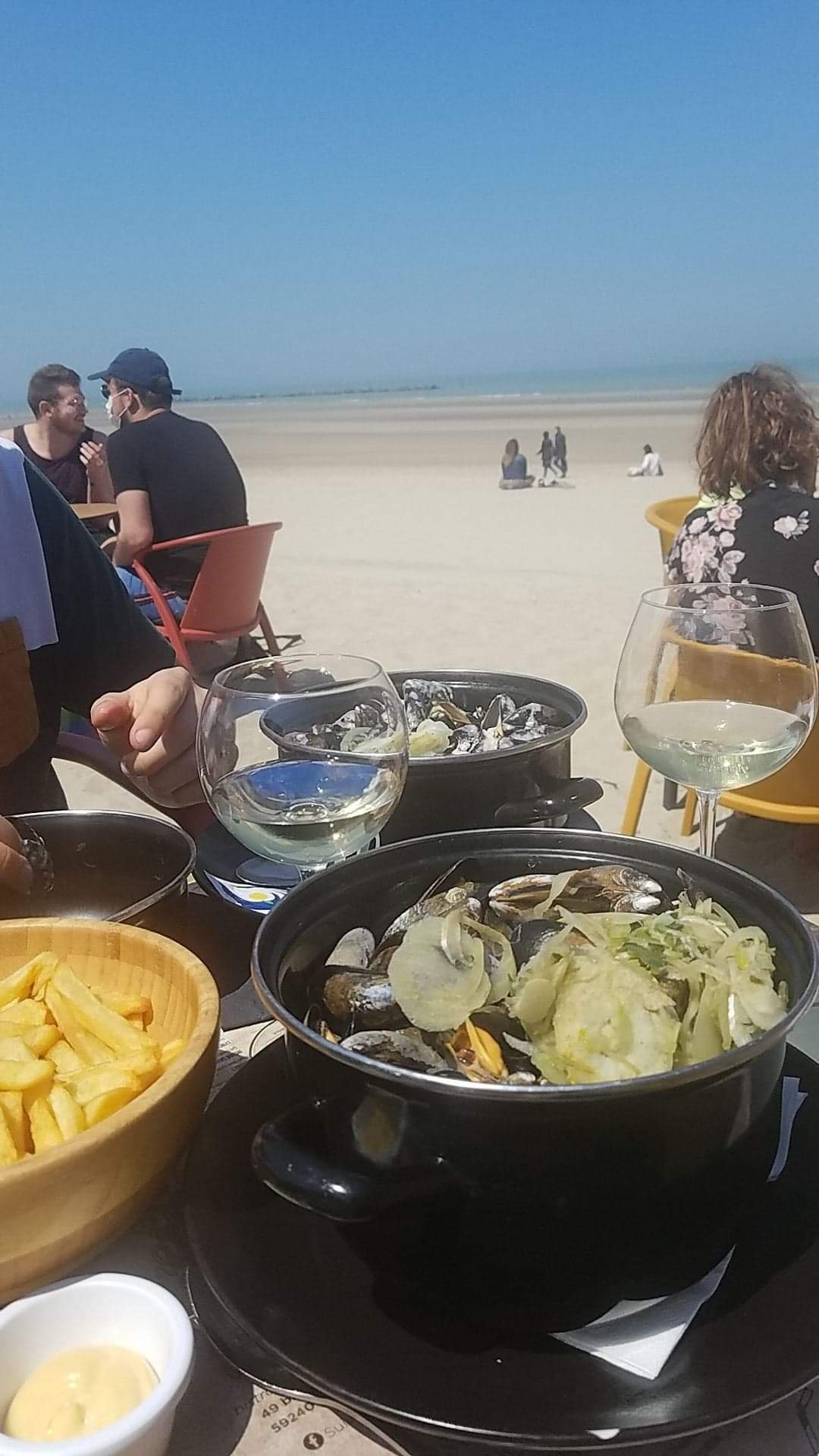 Venu un soir d’été sous réservation, nous avons été placé en terrasse sable mais lors de la commande impossible de commander à manger car la terrasse était exclusivement réservée pour les boissons. Un délais d’attente s’impose afin d’avoir une table sur la terrasse digue. Organisation des serveurs à revoir, assiettes de moins en moins copieuses : - de frites et disparition des crudités par rapport à nos précédentes venues