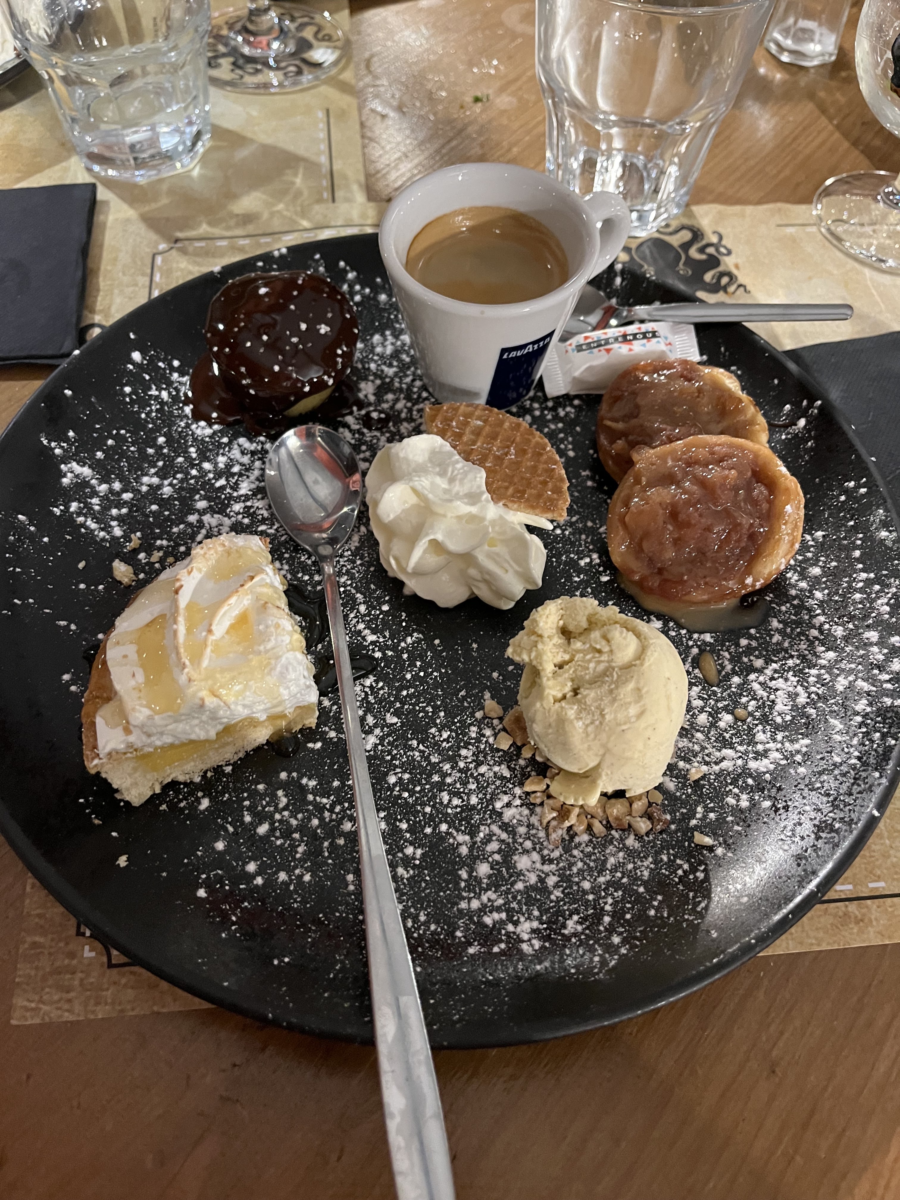 Un peu decue, nous etions encore en hors saison, les serveurs formaient je pense les saisonniers. Il y a eu un melange dans les tables, nos voisins ont été servis tres vite mais nous pas du tout (nos plats, nos apero, nos boissons et nos cafés ont été oubliés). Beaucoup trop d'attente pour les cafes, nous allions partir. Et surtout, ce qui m'a decu : on aurait pu nous les offrir, un café ne coute rien et fait toujours bonne impression lorsque le service n'est pas efficace. Parole d'ancienne serveuse!