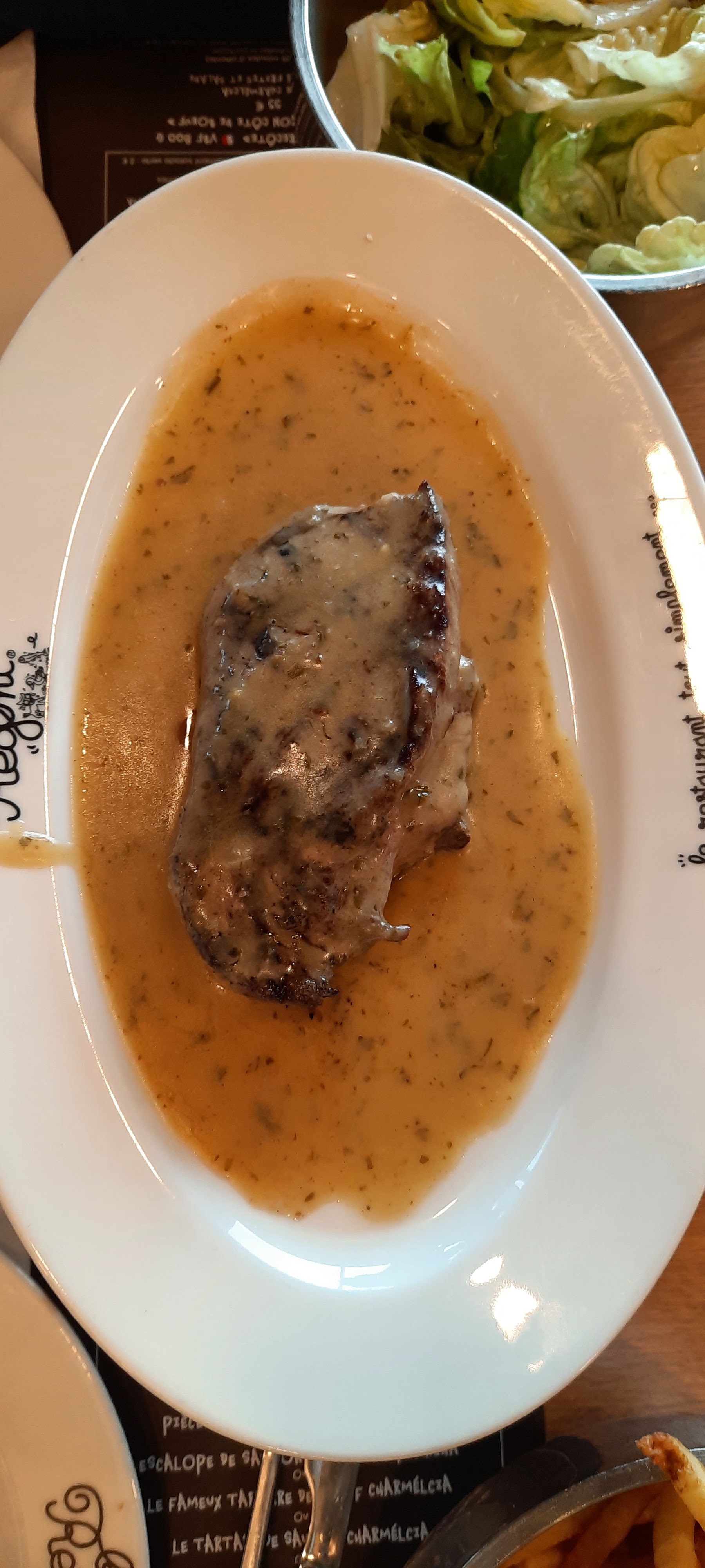 Restaurant de qualité. La viande est tendre et sa sauce est très bonne. les frites sont faites maison. Dommage que la salade manquait d'assaisonnement.