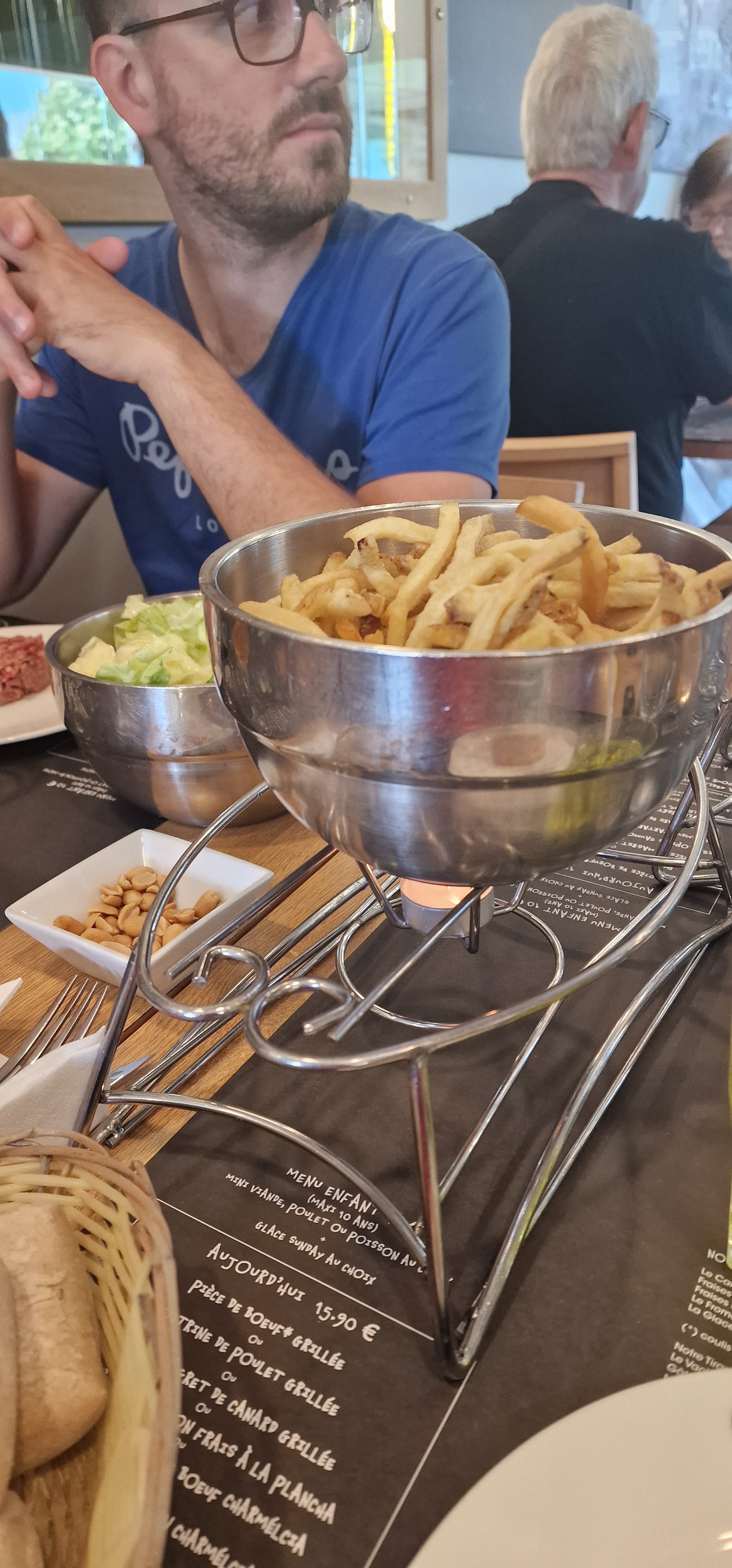Du choix pour tous, viandes de bonnes qualités. Salade et sa sauce vinaigrette très bonne. Frites et salade à volonté. Les profiteroles au Nutella, une tuerie. Bref, on se régale à chaque fois, pour un prix très raisonnable