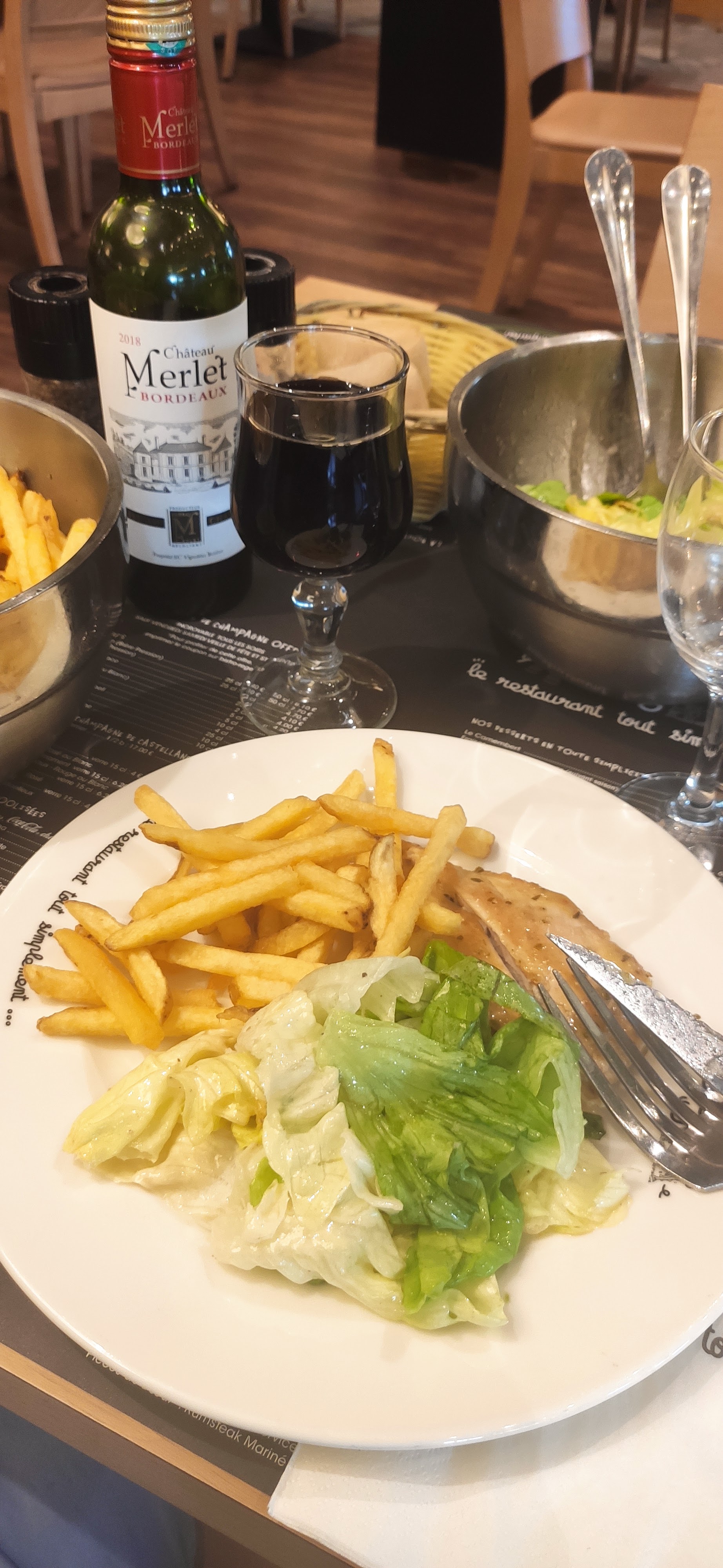 Première fois très bon, deuxième visite j ai mangé la même chose très déçu, pièce boucher avec un léger goût de poisson (la sauce je pense ,bizarre), les frites sont bonne, la salade trop saucée, dommage.