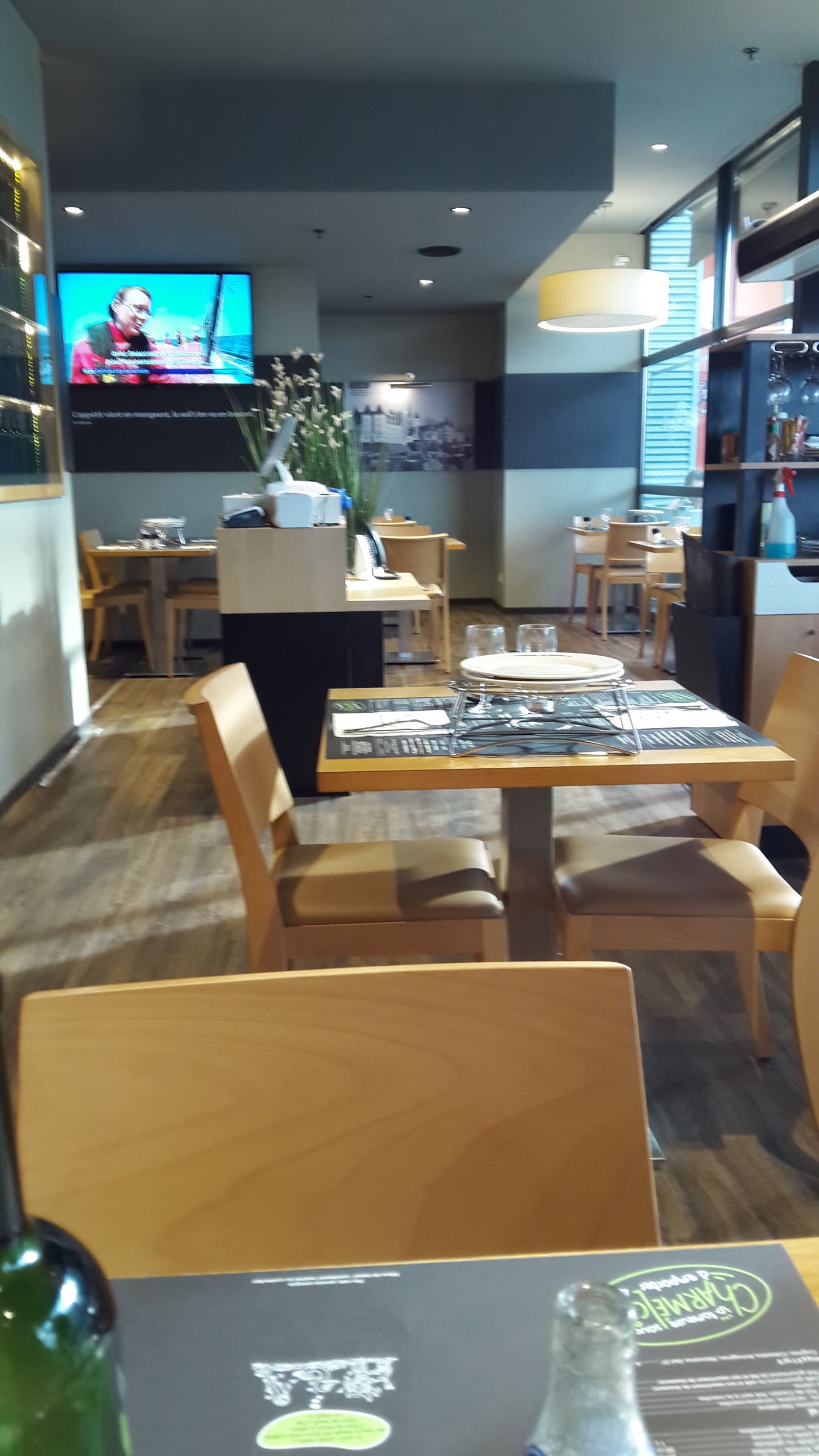 Ambiance brasserie la carte et minimaliste mais efficace service rapide avec des produits de qualité et bon choix de dessert