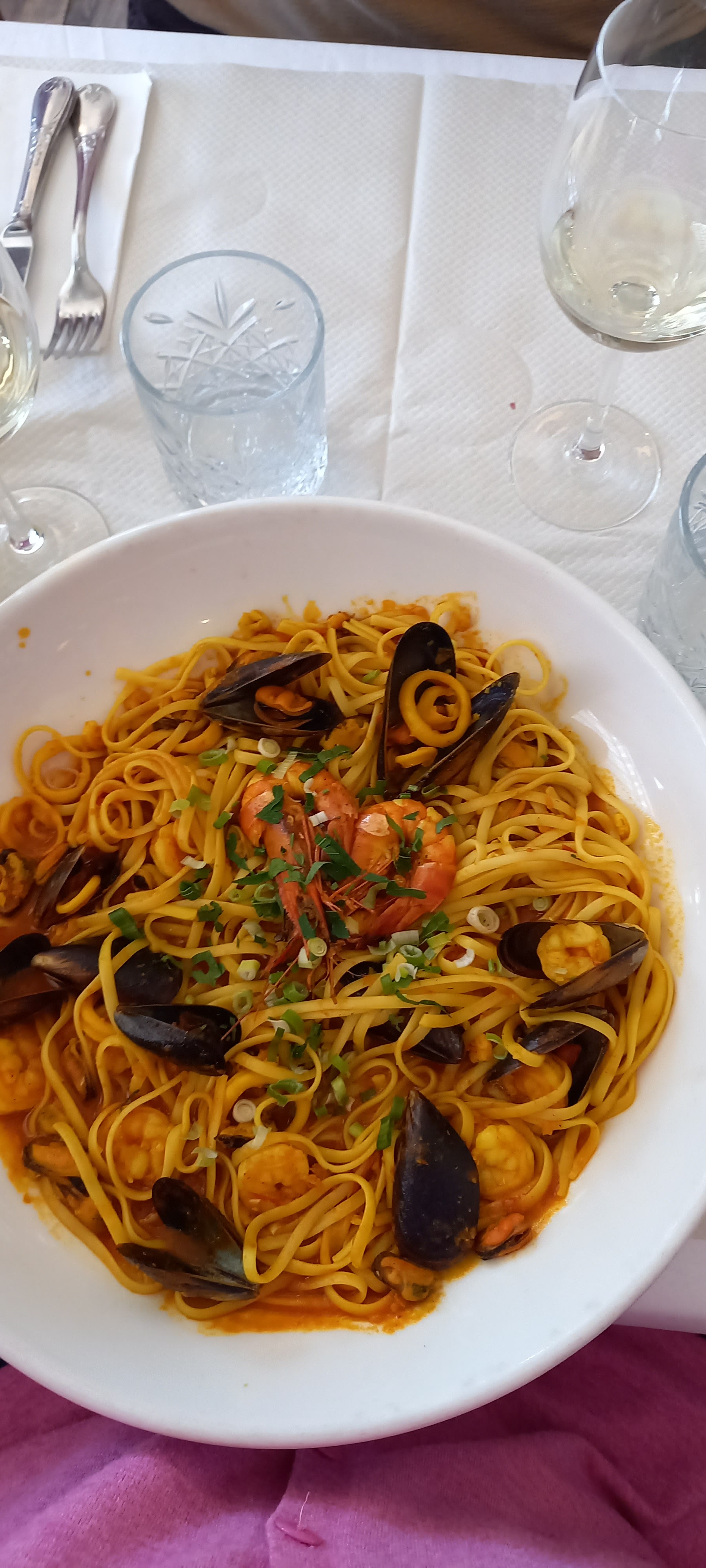 Accueil mitigé sur un lieu qui devrait être un minimum convivial!!! Surtout la veille du marathon Nice-cannes et qu'il est affiché pasta party à l'entrée du restaurant... En plus, pas de toilette pour les clients du jours....mais aussi un attente de 2 heures d'attente pour ce malheur plat de pâtes... Toutefois, je conserve une certaine empathie à la pauvre serveuse qui se fait crier dessus mais qui fait elle son maximum pour satisfaire les clients... J'espère que tout cela sera corrigé dans l'avenir car ce lieu n'est aujourdhui pas à la hauteur de sa situation géographique .