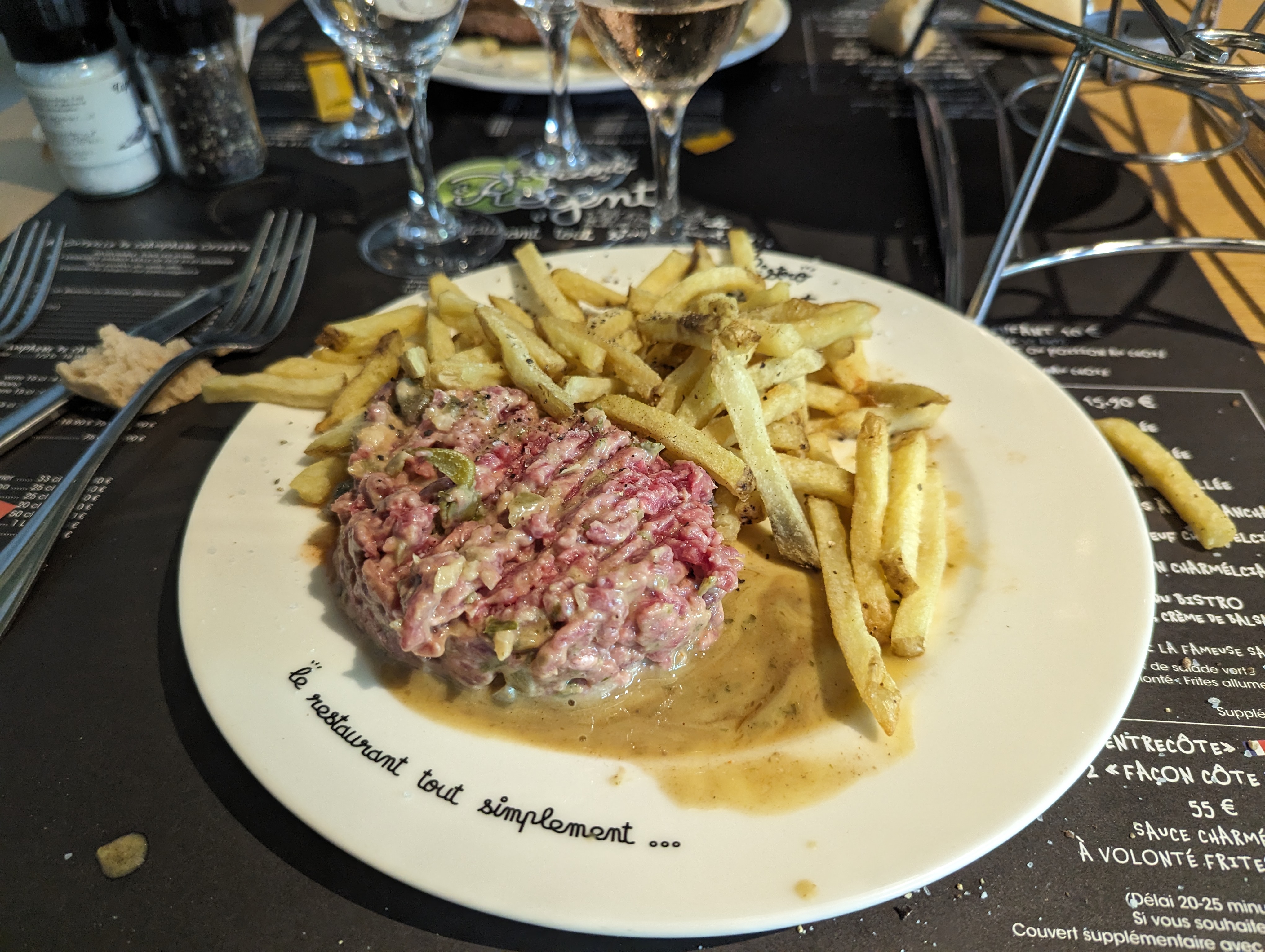Bon restaurant, service rapide et efficace Tout était bon, manque un peu de présentation soignée, les frites étaient bonnes mais clairement elles étaient irrégulières trop de petits yeuxprésent. Le tartare est à tomber 👌👌👌💕 C'est un endroit où j'hésite pas à revenir c'est vraiment excellent