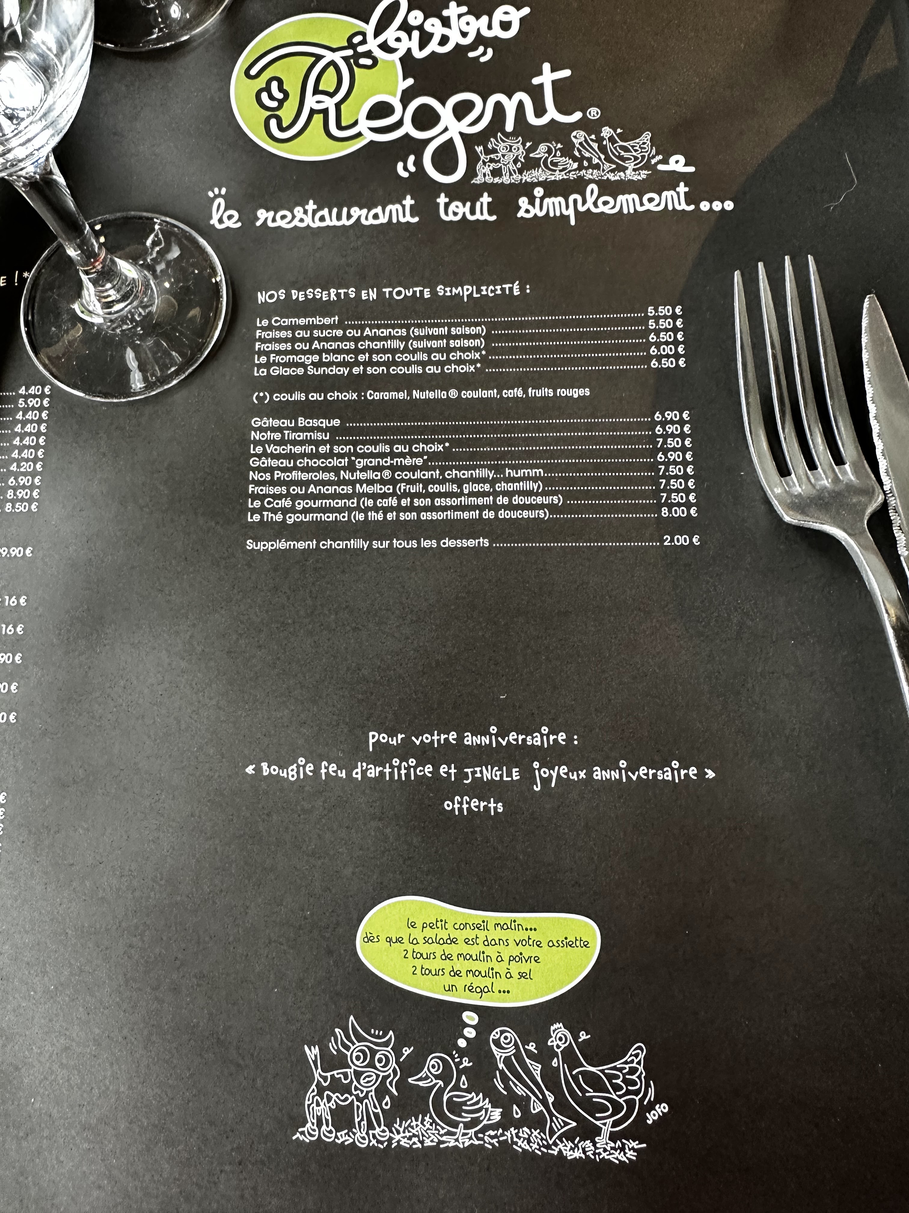 Bistrot Régent a toujours été une valeur sûre, je le recommandais autour de moi à mes collègues et ma famille. Il y a très peu de choix mais ce qui est réalisé est bon. Mon experience d'hier soir n'entache en rien la qualité des produits. À l'avenir, vous devriez éviter de vous moquez des clients et de faire des remarques à connotation douteuse en leur présence.