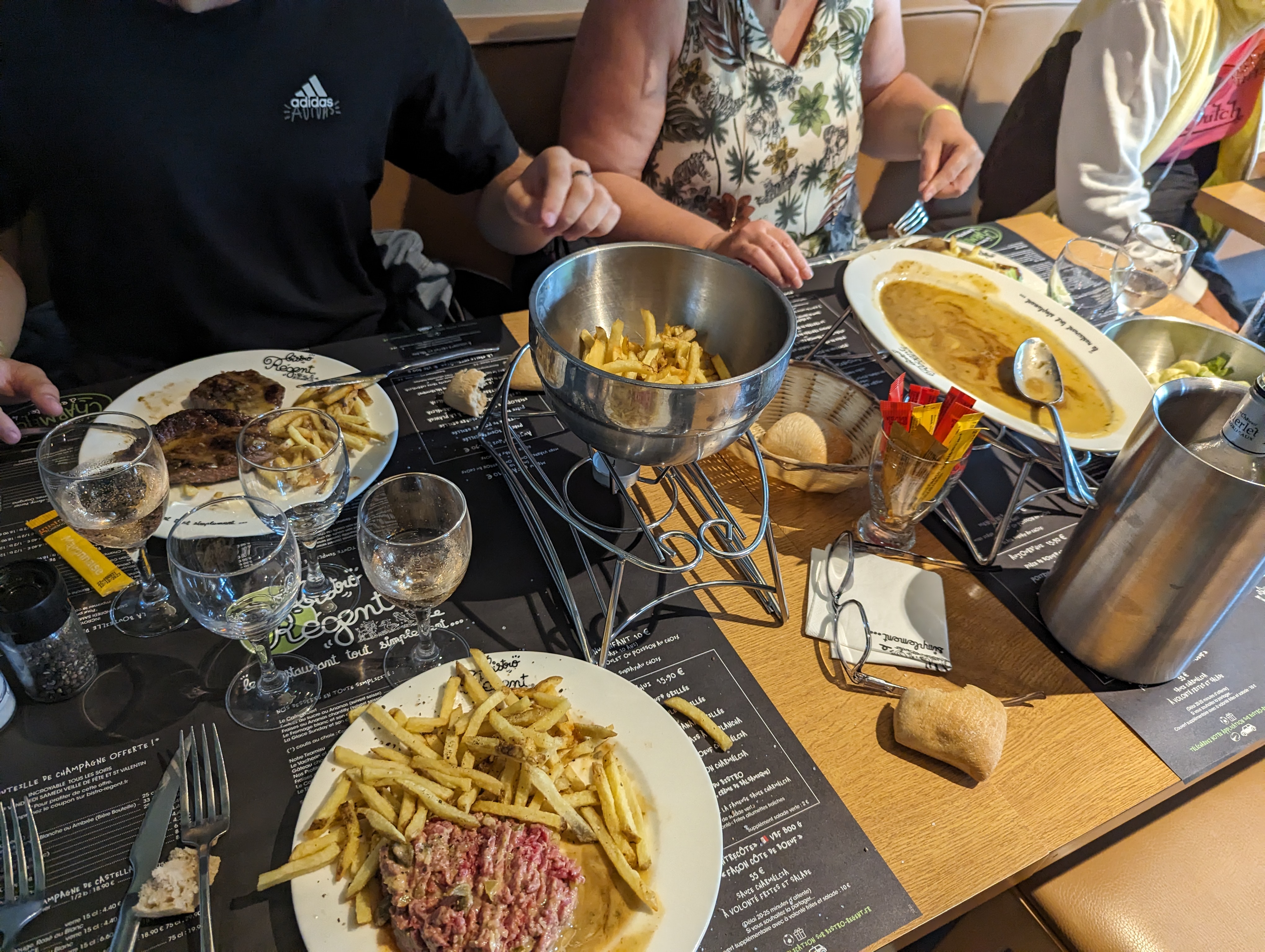 Excellent, à l'extérieur, au calme, la viande, les frittes excellentes, l'accueil et le service irréprochable. Je recommande.