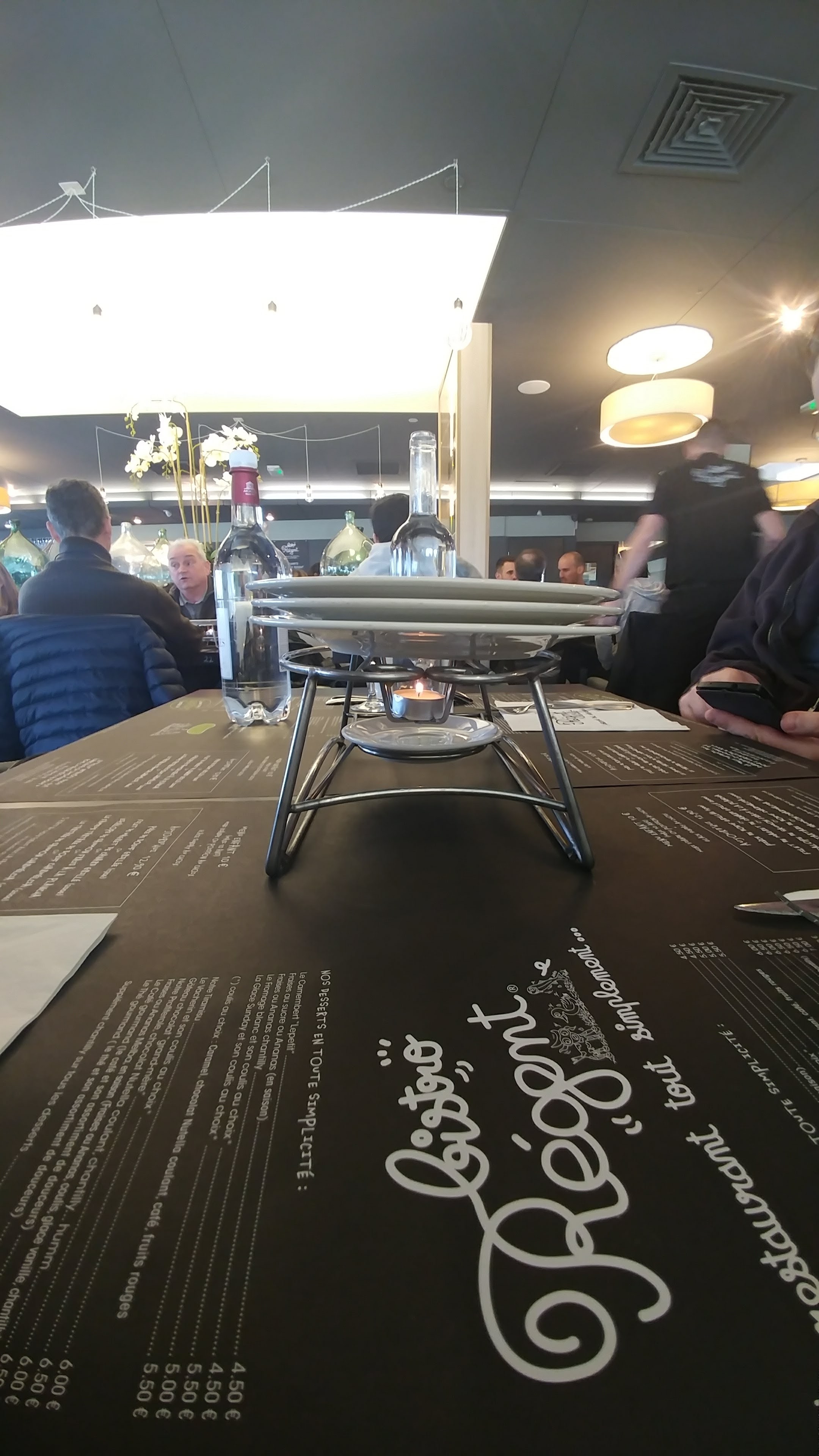 Service rapide, personnel très aimable, prix très raisonnables. En revanche, le doute que j'avais quant à l'utilité des chauffe plat sur la table s'est confirmé. D'une part cela prend beaucoup de place sur la table, et d'autre part, étant donné que nous sommes servi à l'assiette, cela n'a pas vraiment d'intérêt. Sans parler que les plats sortent déjà tièdes des cuisines, ça n'est pas avec une malheureuse bougie de 2 cm que l'assiette va être maintenue chaude. Bref, ça fait style mais plutôt inutile.