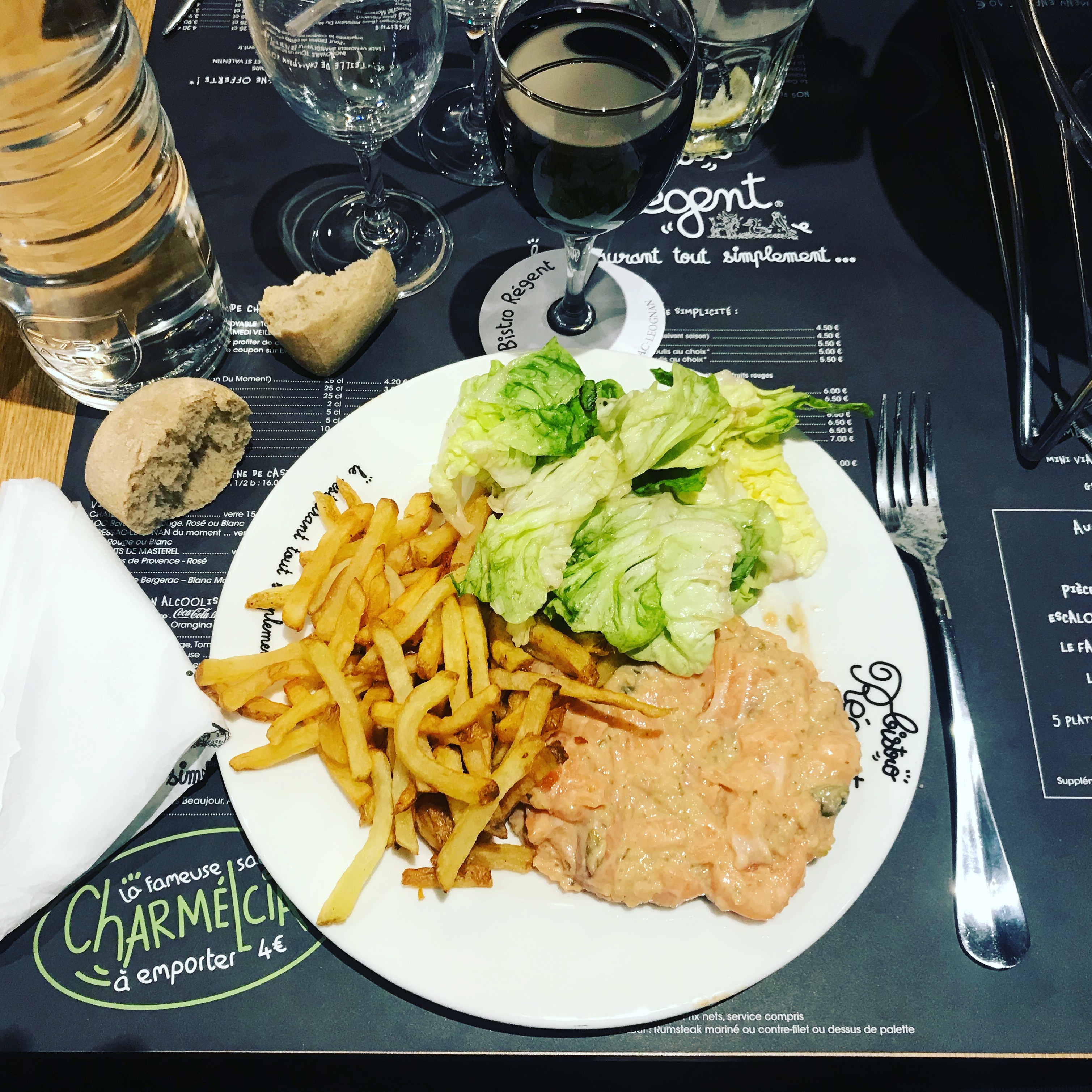 C'est top comme souvent chez Bistro Régent nous avons pris une entrecôte pour 2, la cuisson était nickel et les frites illimité accompagné de la fameuse sauce charmelcia c'est une tuerie! Merci pour l'accueil je reviendrai et je recommande l'adresse!