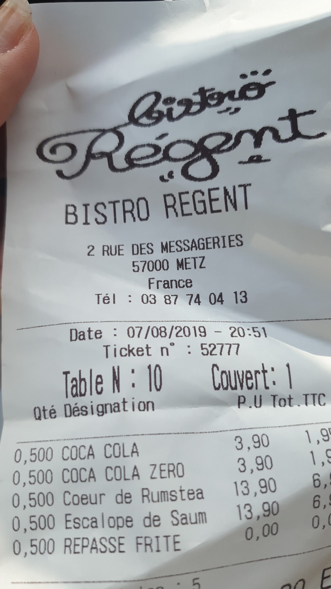 Bistrot Régent, un petit restau qui est très sympathique d'habitude. Première fois à Metz et certainement la dernière. Serveurs sans sourire, serveuse très limite et qui je crois s'est trompé de métier. La vaisselle n'est pas propre et à dresser par nous même. Il a fallu s'y prendre à 5 fois pour avoir une carafe d'eau et l'avoir avant de partir. Côté plats, nous avons entre autre pris La belle entrecôte, belle que sur la carte car la seule chose de belle qu'on à eu c'est une belle indigestion.