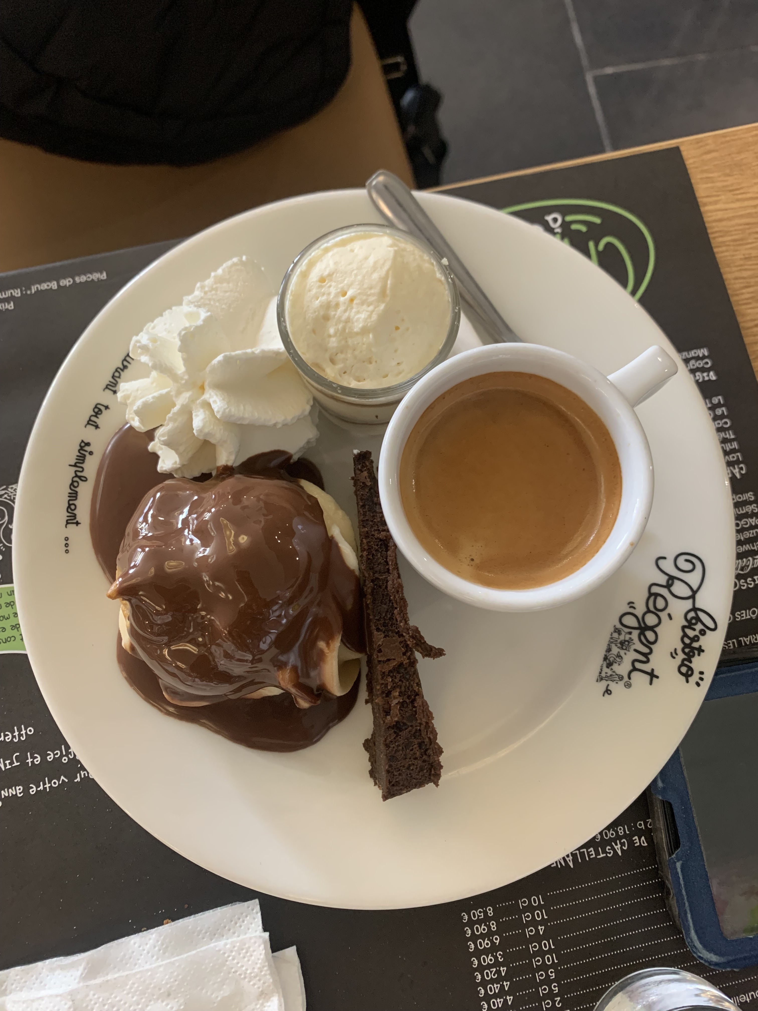 Le bistro regent est un très bon concept les serveur son très agréable et a l'écoute Nous avons goûter le menu végétarien très bon et moi l'entrecôte le cuisinier très sympathique Pour le dessert nous avons prie la profiteroles fait maison et son petite assortimrnt de douceur et le café gourmands fait maison Nous reviendrons...
