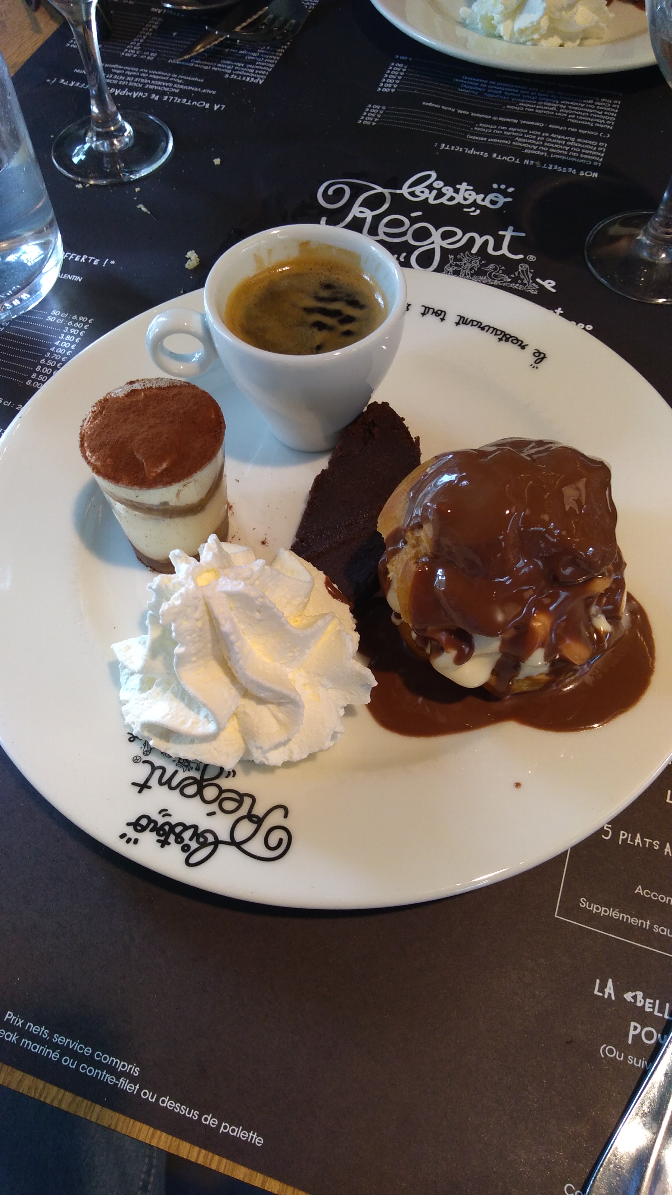 Pas mal service sympa pas cher mais desserts pas terrible surtout profiteroles surgelées de basse qualité