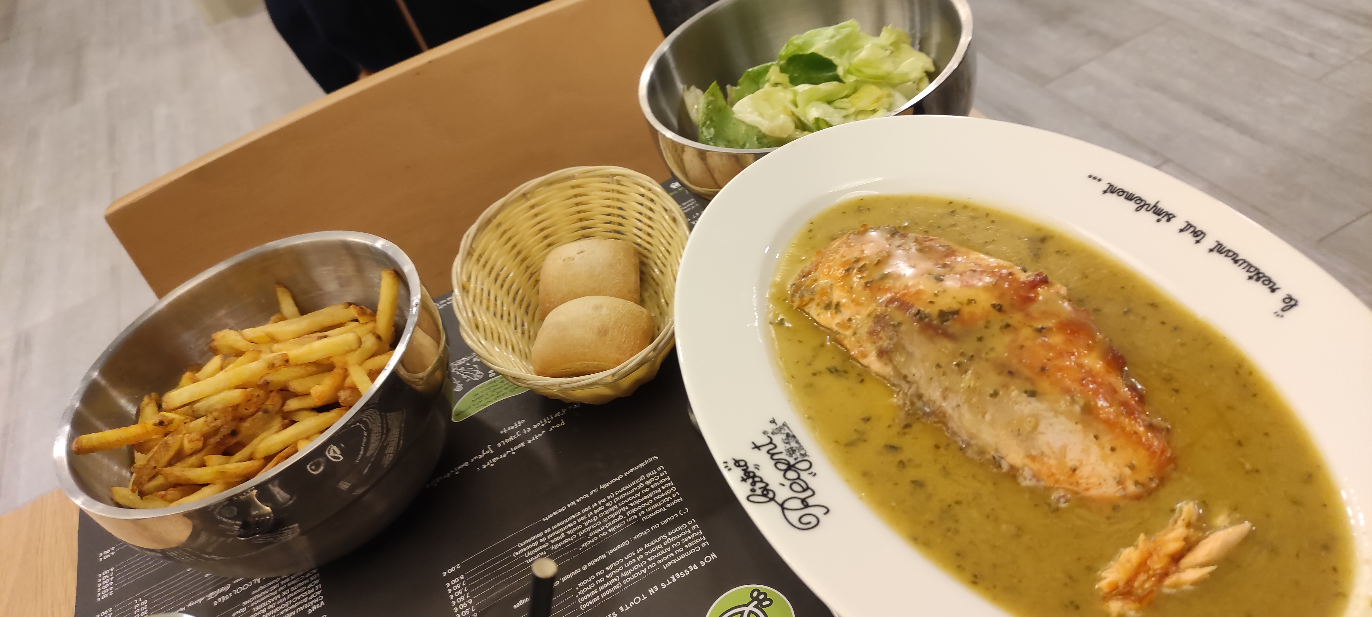 Excellent rapport qualité prix.Une pause détente rapide en faisant les courses, nous apprécions steak et saumon parfaits... avons renouvelé et continuerons!