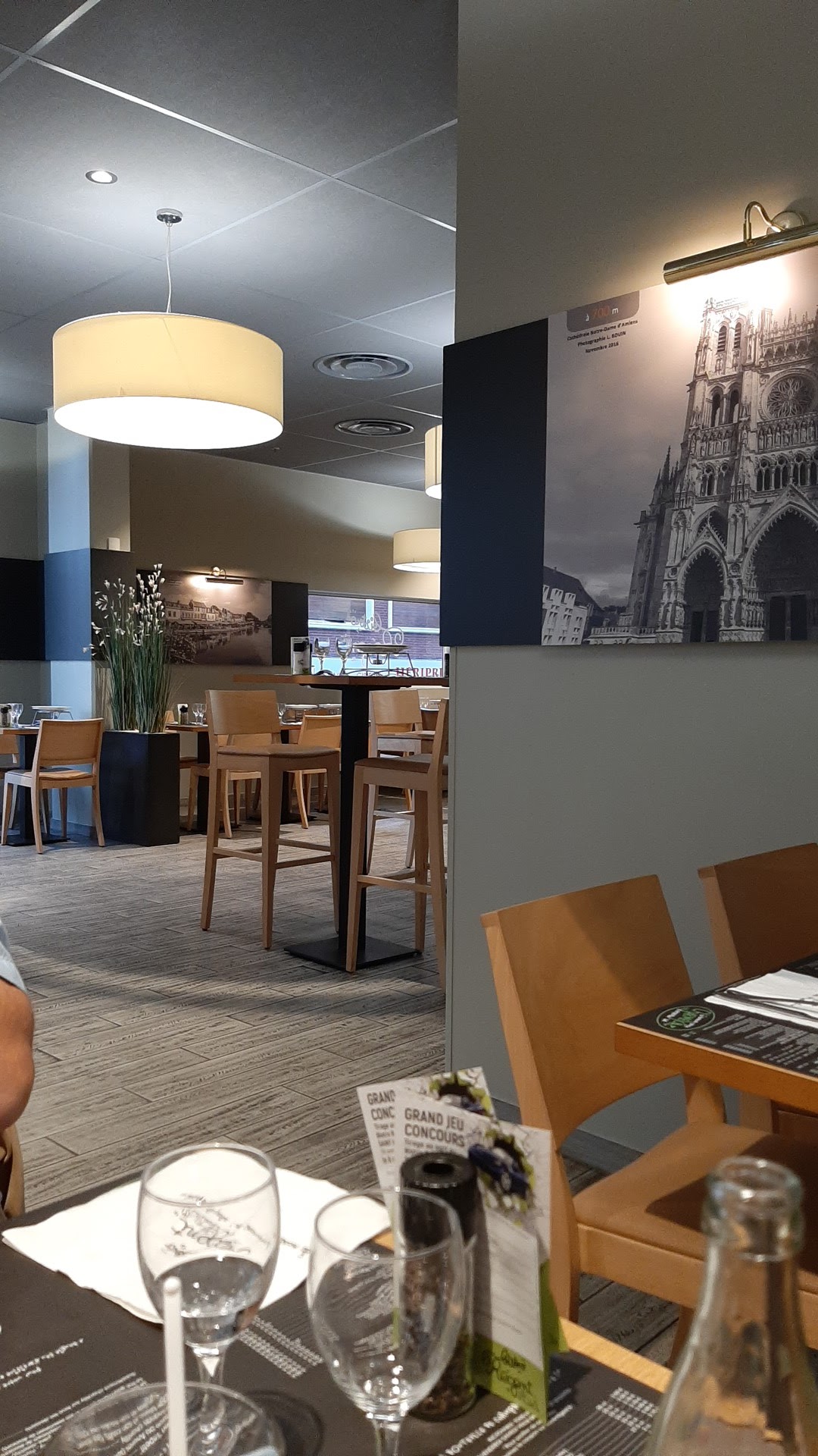 En pleine rederie d Amiens. Beaucoup de monde... malgre cela, le personnel était très sympa et souriant. Service rapide. Peu de choix dans le menu mais pour moi, c est rassurant, des produits frais!! Magret de canard délicieux, boeuf tendre et saumon excellent. Frites fraîches. Les desserts étaient très bons et copieux. Juste dommage de n avoir que de la 1664 en choix de bière. Une petite bière locale serait une bonne idée? ! Prix très abordables. Rapport qualité prix très bien. Decoration au goût du jour. Essayez!