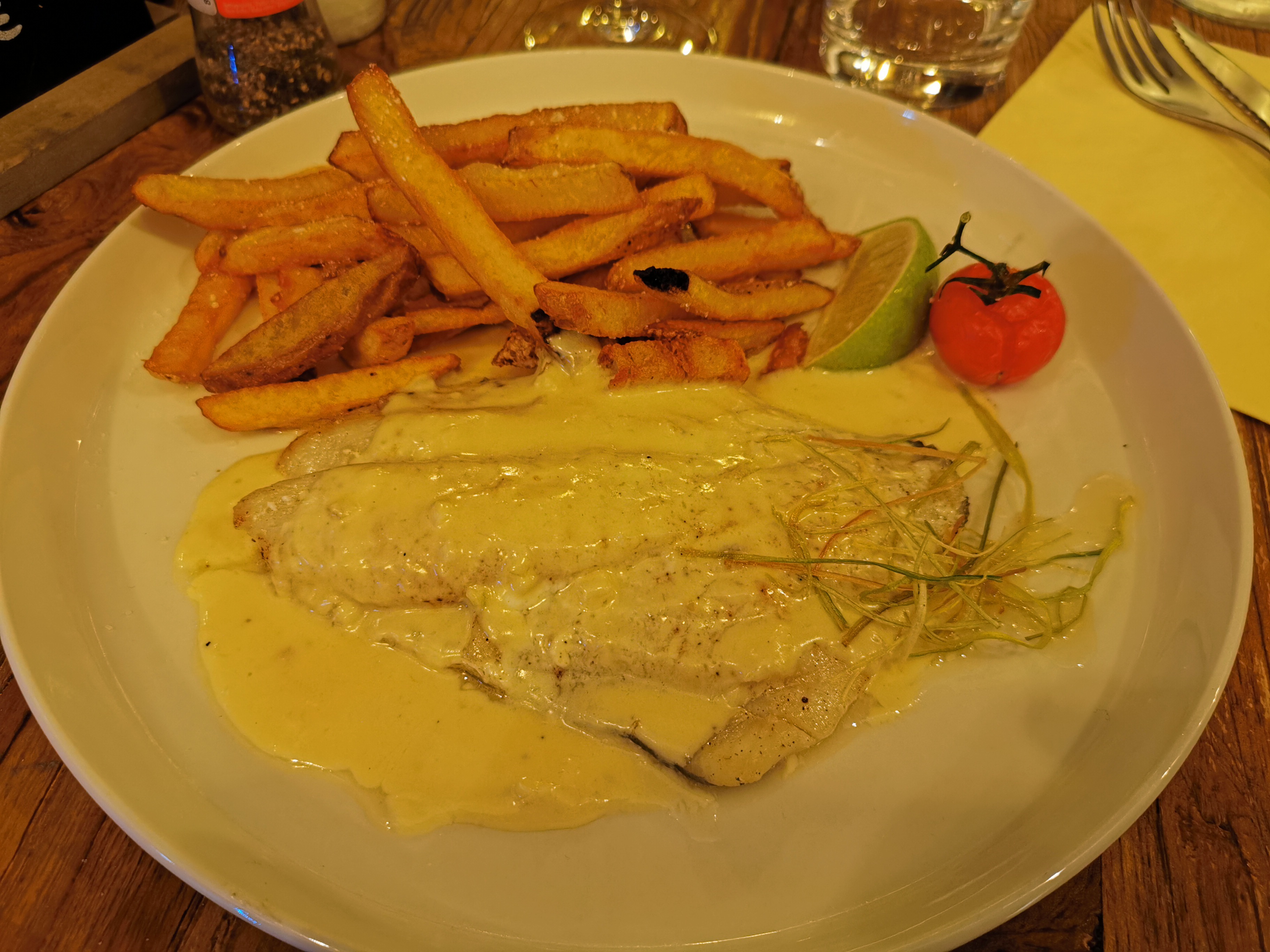 Je recommande, frite et salade fraîche à volonté. Portions correctes pour le prix sauf peut-être quelques déserts un peu légers. Très bien servi par une jeune femme brune, la blonde à l'accueil était tout aussi souriante. Nous avions même eu une bouteille de champagne offerte.
