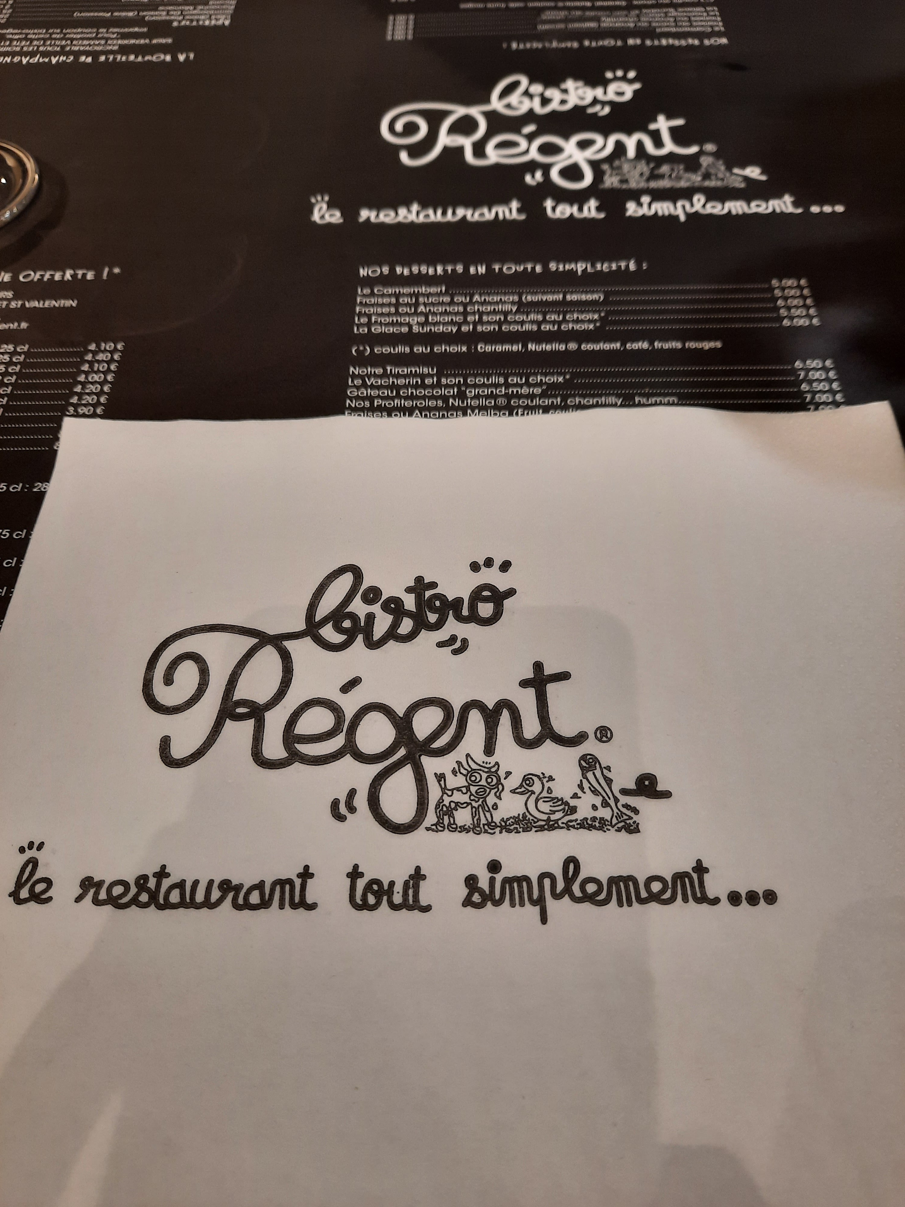 Nous sommes venus manger avec mon compagnon et notre fils, très bon accueil, personnel au top, malgré le monde présent, ils ont su répondre à nos attentes, surtout à notre fils qui voulait une photo avec Laurine qui a fièrement accepté sa demande pour son plus grand bonheur, pour le repas, le choix des viandes est plus que correcte, ainsi que les frites et la salade sans parler des desserts, un véritable régal pour les yeux et les papilles, nous reviendrons sans hésité dans votre restaurant, merci à toute l'équipe du bistro regent, à bientôt