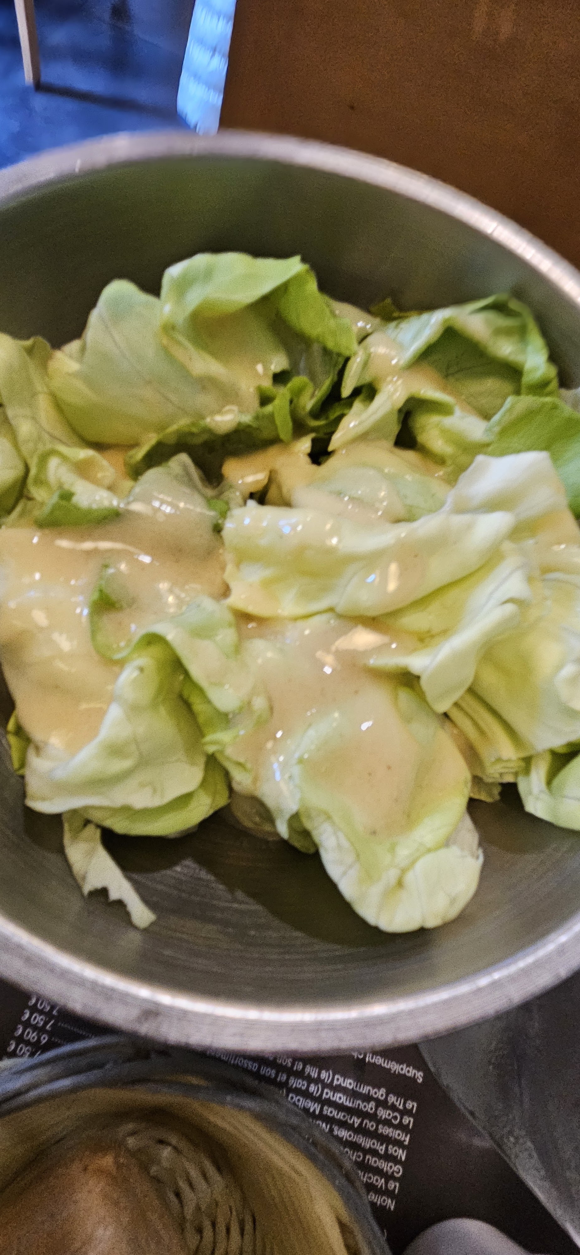 Repas bien sans plus les frites excellente et la salade parcoure les sauces sans pareil pour tout les viandes et poissons je trouve ça bof