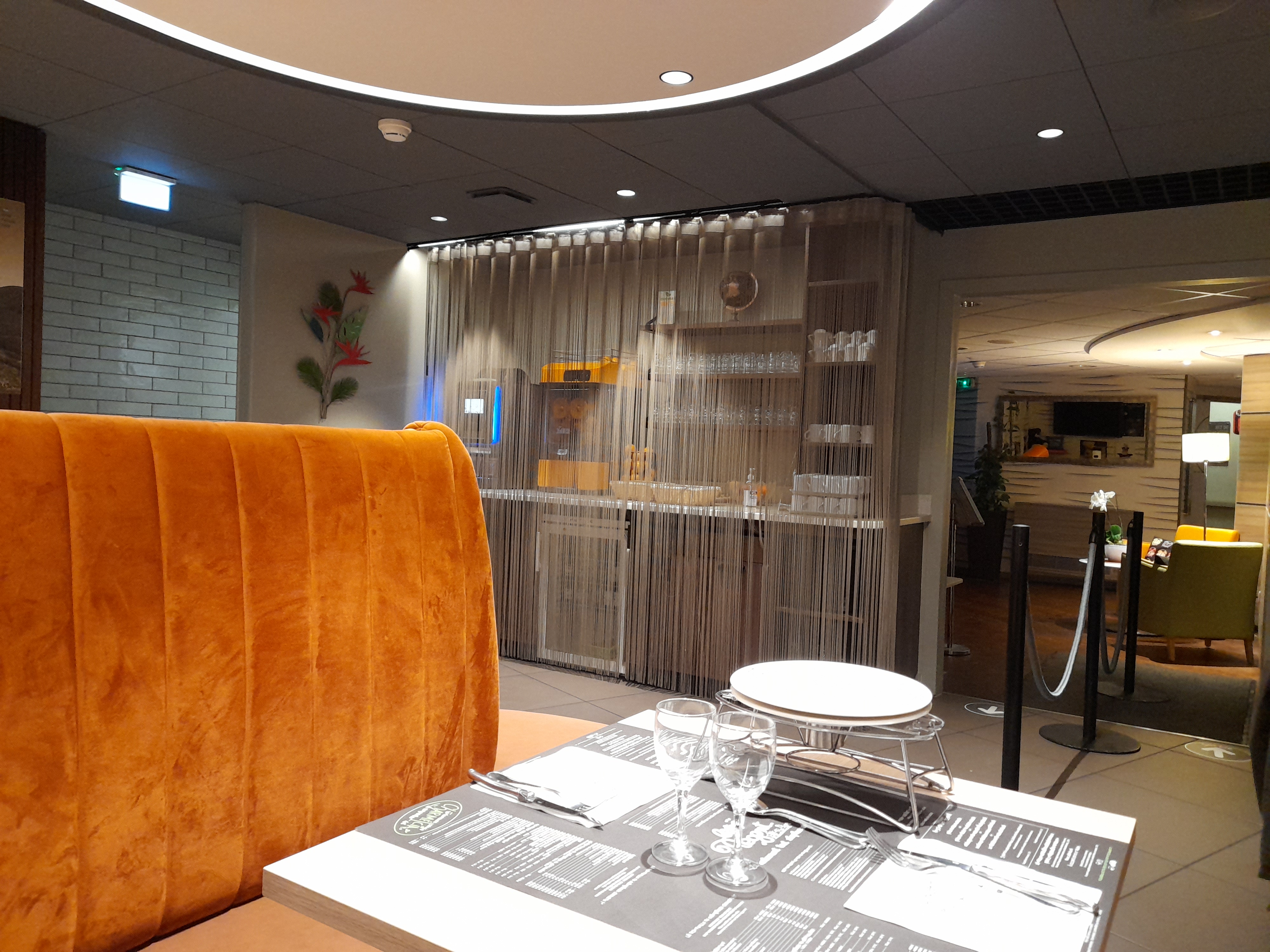 Nous sommes repartis du restaurant car il faisait froid dans le restaurant. La serveuse a cherché à nous changer de place mais son supérieur est arrivé et nous a précisé qu'il faisait froid et que s'était comme ça dans tout le resto à cause des travaux dans l'hôtel .Je tiens à préciser qu'il a été très désagréable! Nous ne reviendrons plus!