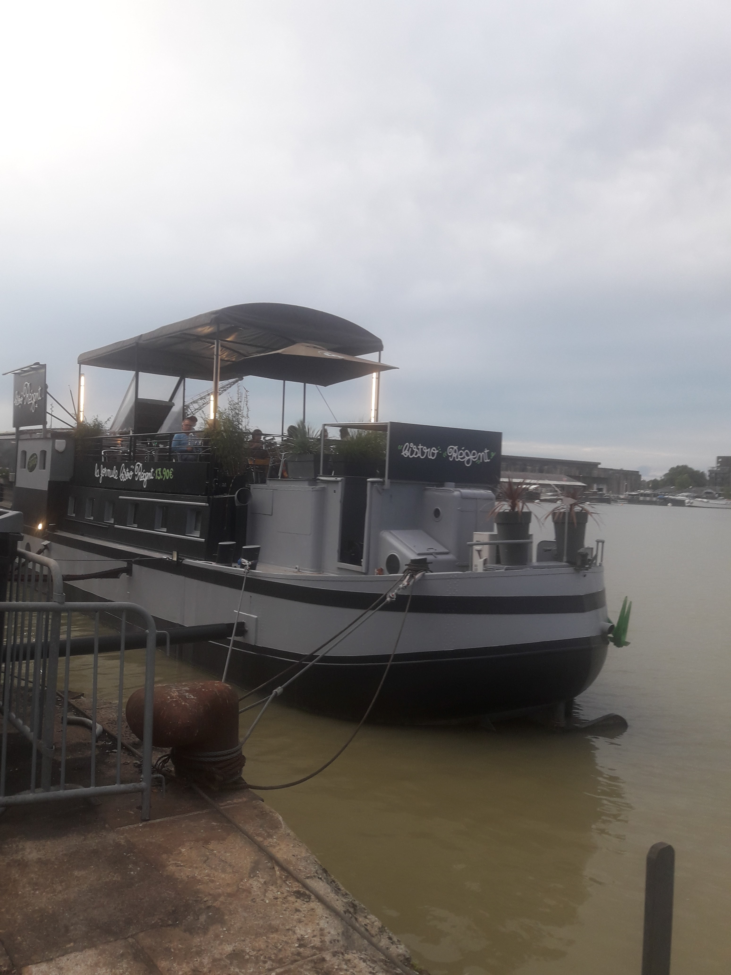 Nous avons mangé au bistro régent au bassin à flot, donc sur un bateau. Super sympa, personnel très accueillant et service rapide