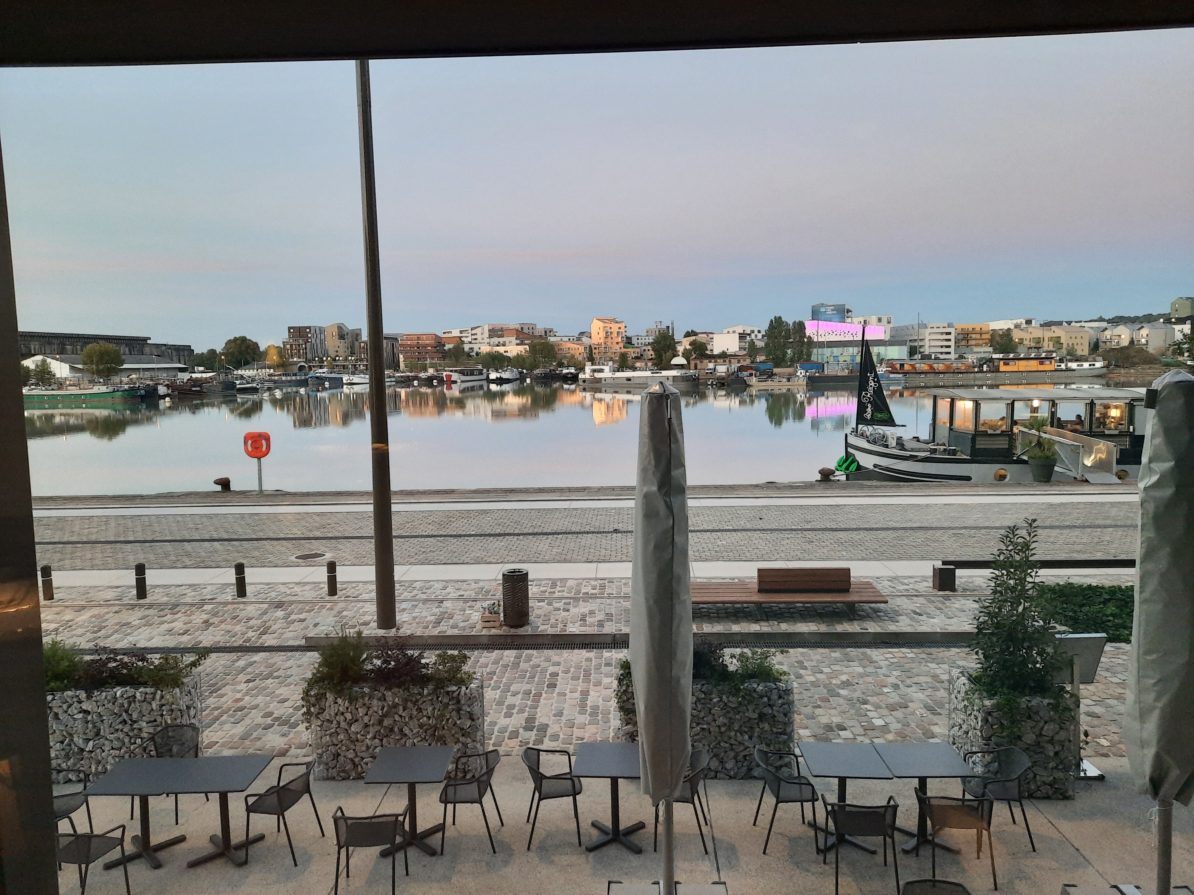 Certainement le Bistrot Régent avec la vue la plus originale de Bordeaux. Il est possible d’y manger avec une vue sur le bassin à flots et la base sous marine. On aime le site ou pas. Petit bémol pas de bière pression surtout avec ces chaleurs, c’est dommage. Pour le reste sans surprise.