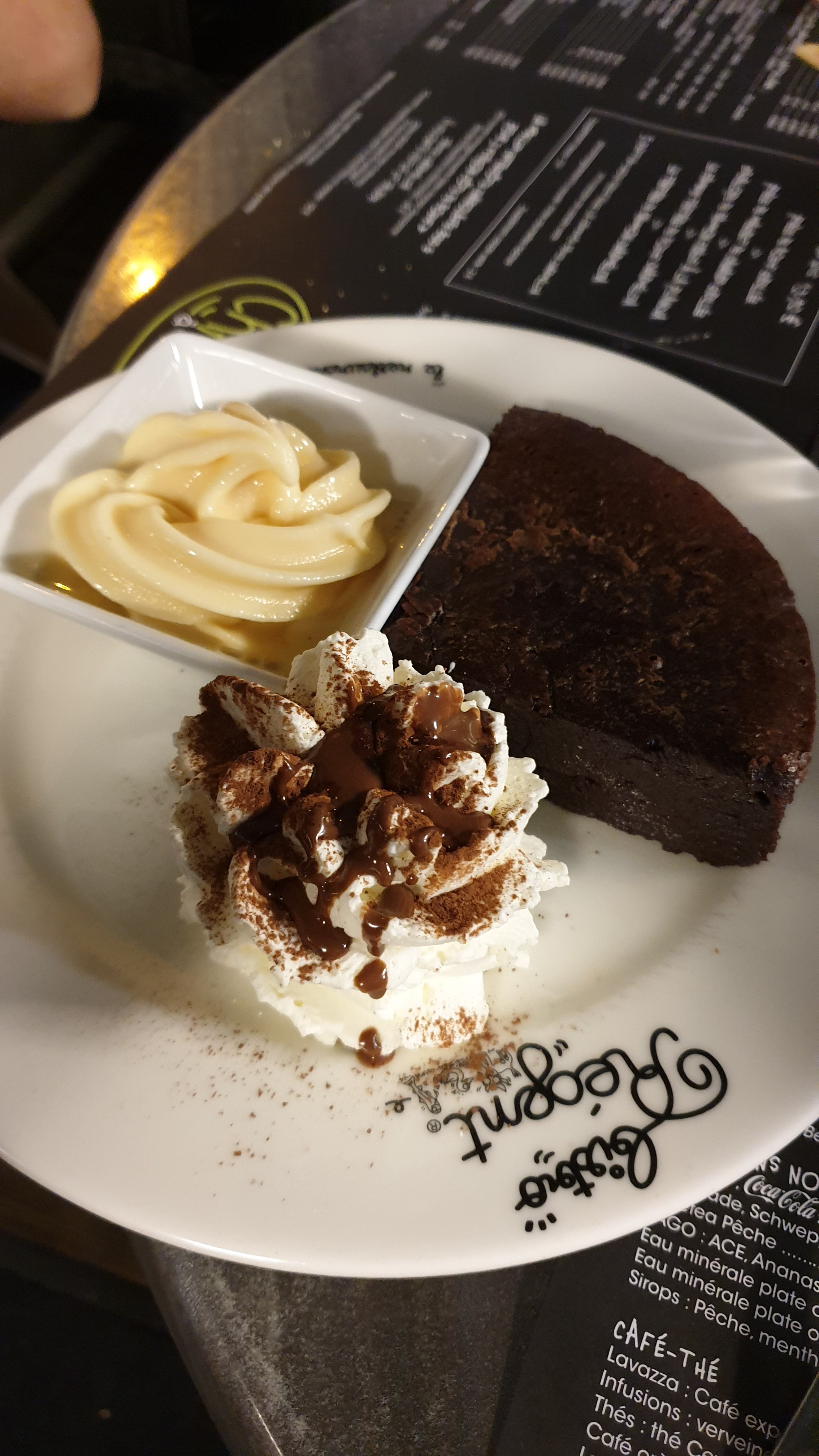 Absolument génial avec un accueil au top ! Les 2 serveurs que nous avons eu été top: un jeune cheveux châtain bouclé et le patron il me semble. Encore merci nous avons passé un super moment et le café gourmand est vraiment très copieux pour le coût !!!