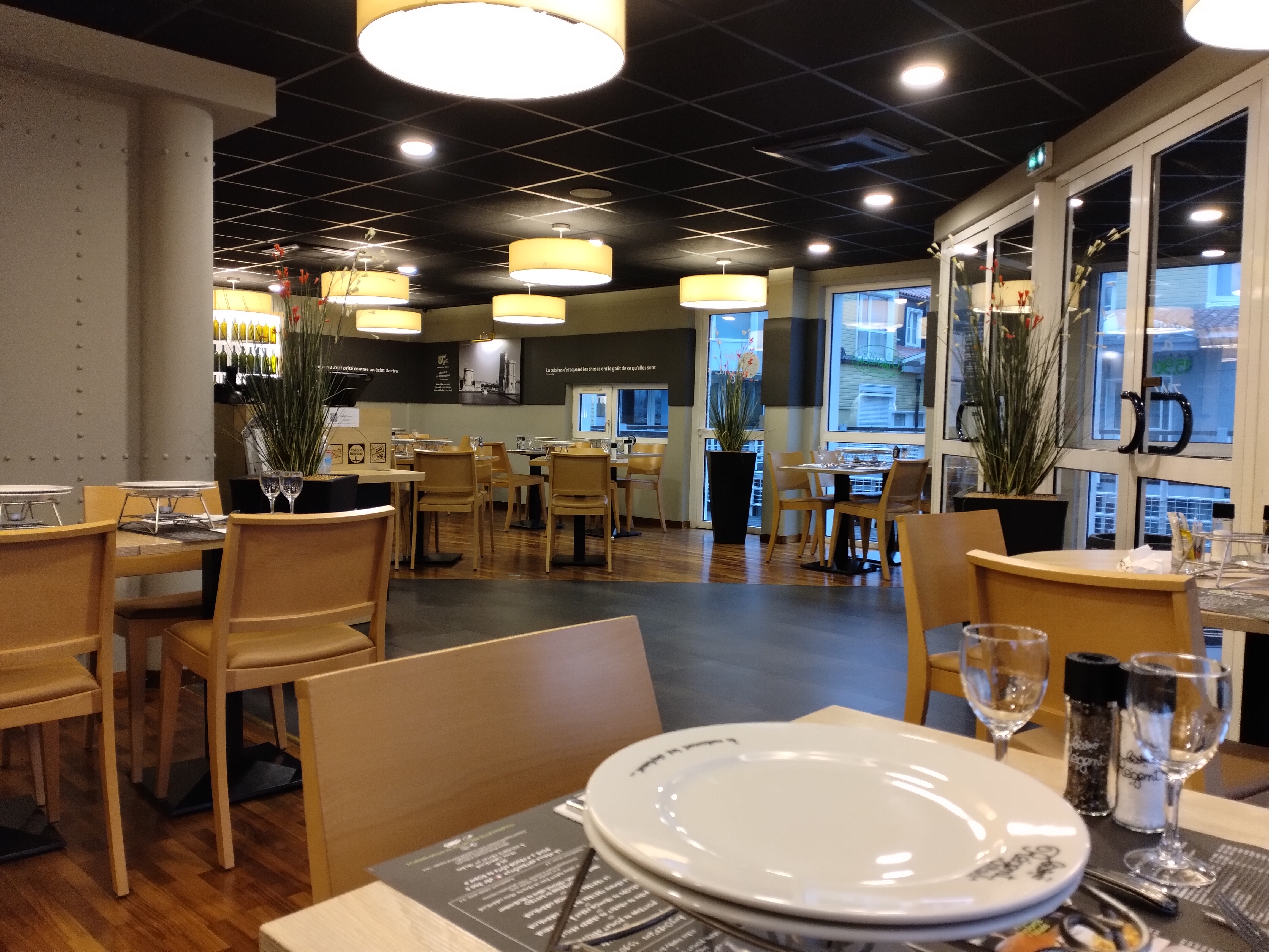 Gérante qui stresse la clientèle…. Et le personnel ! J’avais réservé pour midi, un jeune employée me propose une table que j’accepte mais j’attends une collègue. Une femme (la gérante, brune avec grosses lunettes foncées) me saute dessus (vraiment ce même sentiment chaque fois qu’elle s’adresse à qq’1) et me dit « c’est moi qui place » ! Sur un ton ! Dans le commerce et surtout dans la restauration, il faut peut être faire attention à sa façon de s’adresser aux clients. Le restaurant était loin d’être complet….. je n’imagine pas cette femme lorsqu’il doit y avoir un coup de bourre. Elle n’est pas faite du tout pour ce poste, je plains les jeunes employés qui eux avaient l’air de faire tout ce qu’ils pouvaient pour satisfaire la clientèle.