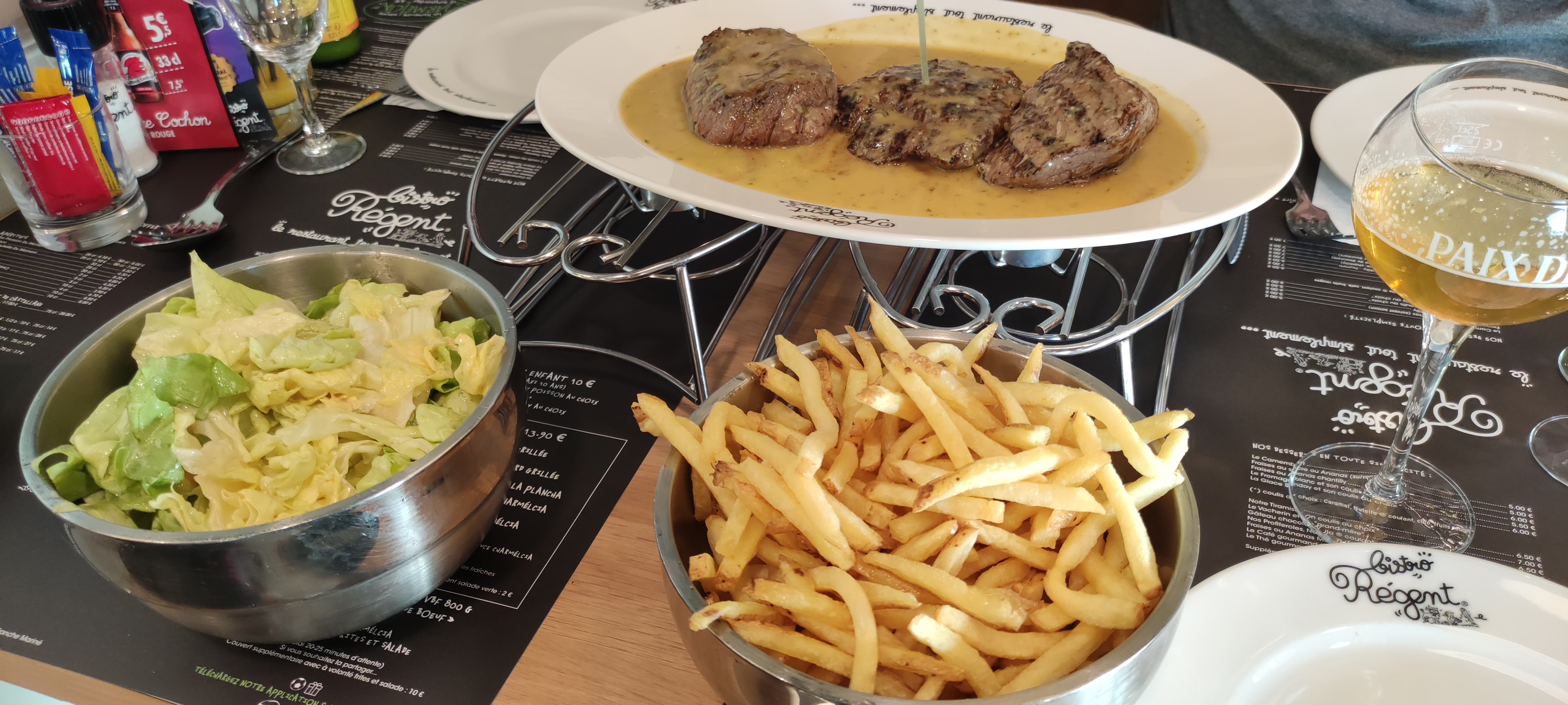 Nous y sommes allés le jour de l'ouverture. Personnel accueillant et de bonne humeur. J'ai pris l'entrecôte pour 2 donc à partager, je conseille les yeux fermés aux amateurs de bonne viande rouge. La sauce est vue nulle part ailleurs. Bref ravie d'avoir manger dans le premier bistro régent du Nord pas de Calais 😊