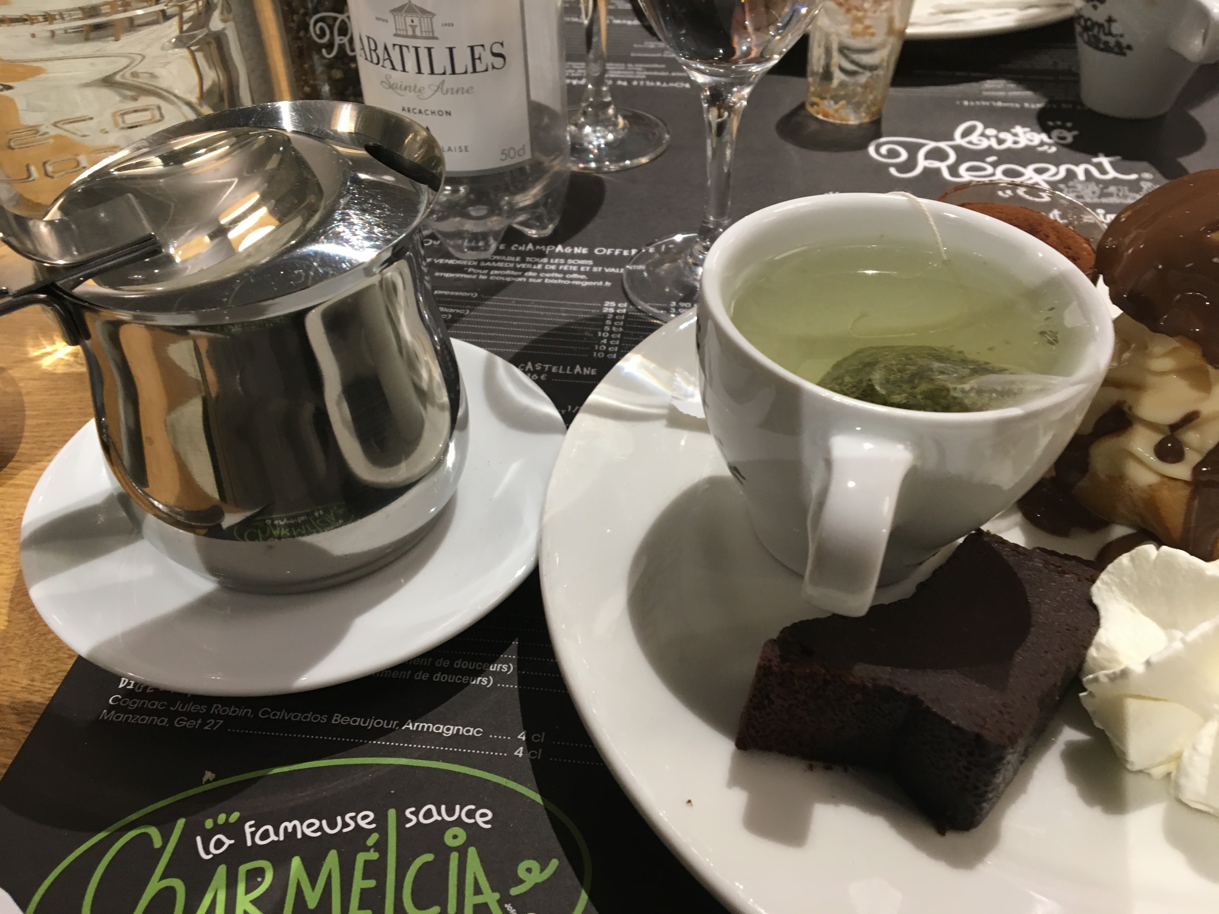 1ère fois que je tentais le Bistro Régent. Arrivées à 2, on ne nous gratifie pas d'un bonjour que l'on nous demande déjà si nous avons réservé (un dimanche midi) et de présenter ensuite le pass (normal) mais tout cela sans un sourire ou sans aucun air avenant ! L'accueil n'y est pas des plus souriant: 3 personnes se sont pourtant présentées à notre table... Espérons que c'était pour coller à l'ambiance du jour (Halloween). Sinon, la pièce de boeuf n'était pas très conséquente et quelque peu nerveuse (on m'a proposé de m'en amener une autre; ce que j'ai décliné poliment). Les accompagnements (frites allumettes et salade) sont conséquents. Le café gourmand l'est ! (Gourmand, mention spécial au gâteau au chocolat mais pas aux profiterolles). Un repas plat et dessert/café pour 20 euros. C'est honnête !