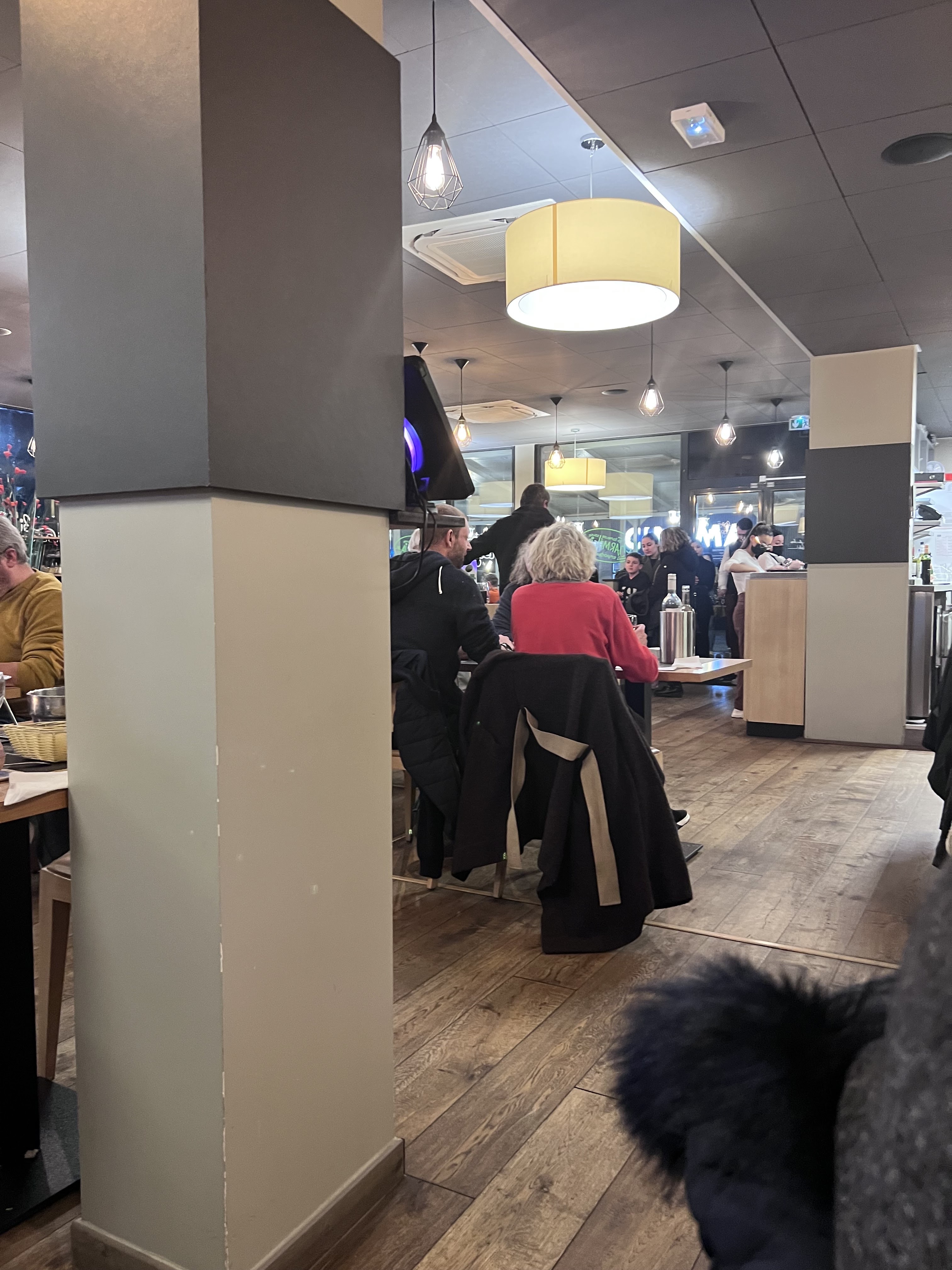Service rapide, plat froid, j'ai gardé mes vêtements car il faisait froid dans ce restaurant. Prix élevé.