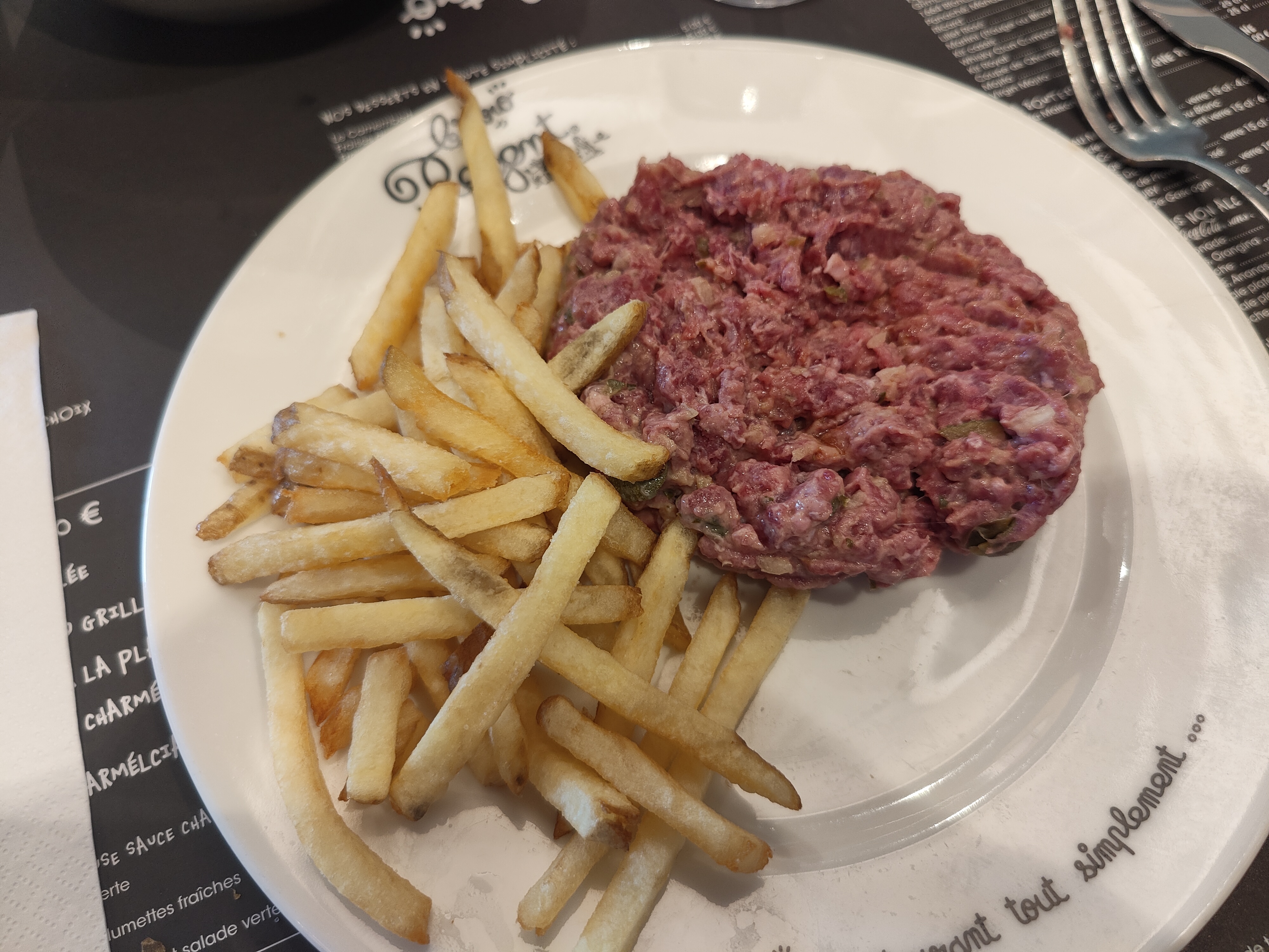 Lieu vraiment sympa et convivial. Le tartare de boeuf est à tomber avec la sauce charmelcia. Je recommande 😜 les frites sont top avec la salade à volonté.