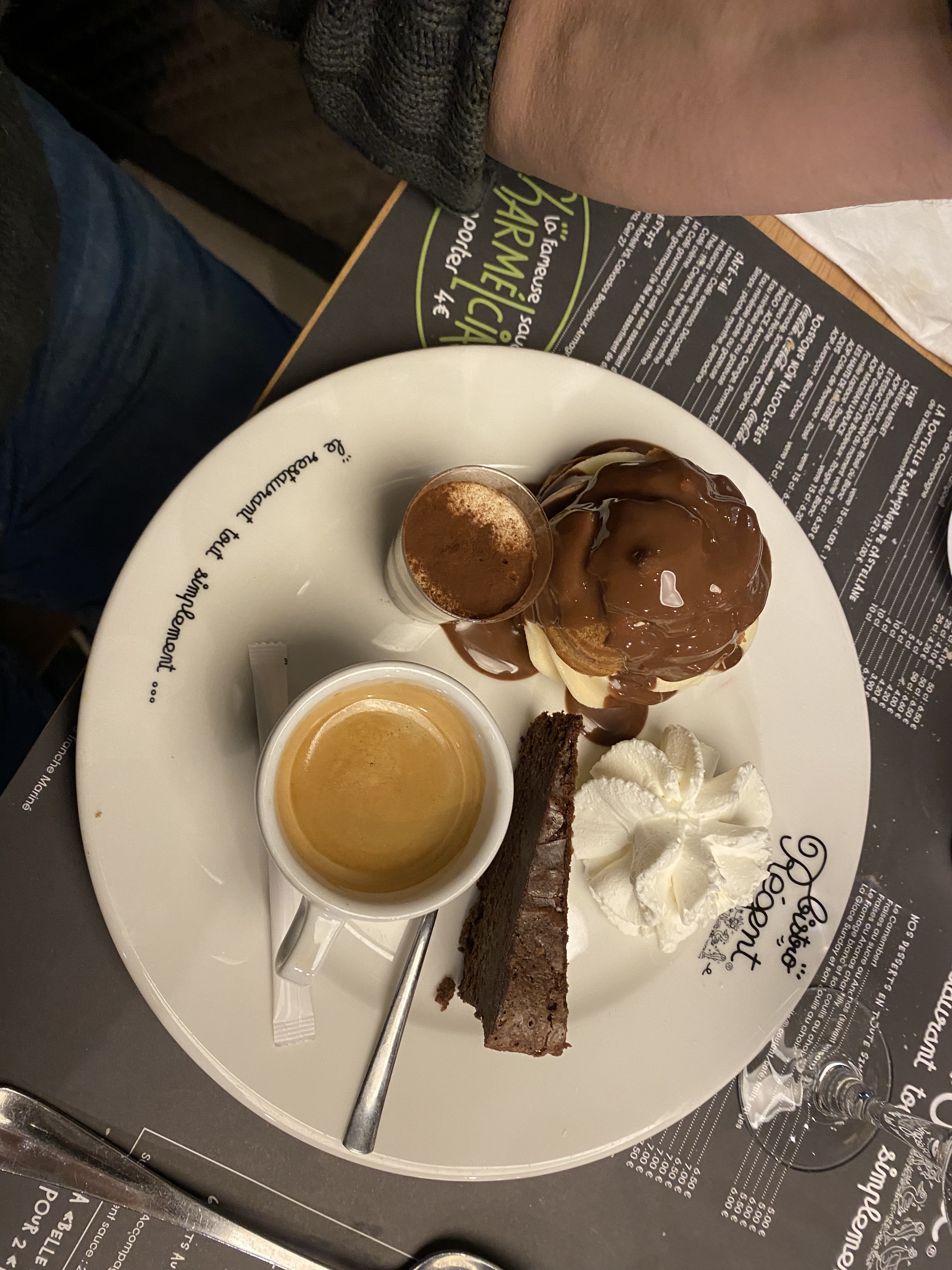 C'était plutôt bon Les profiteroles étaient pas terrible mais le reste du repas était bon