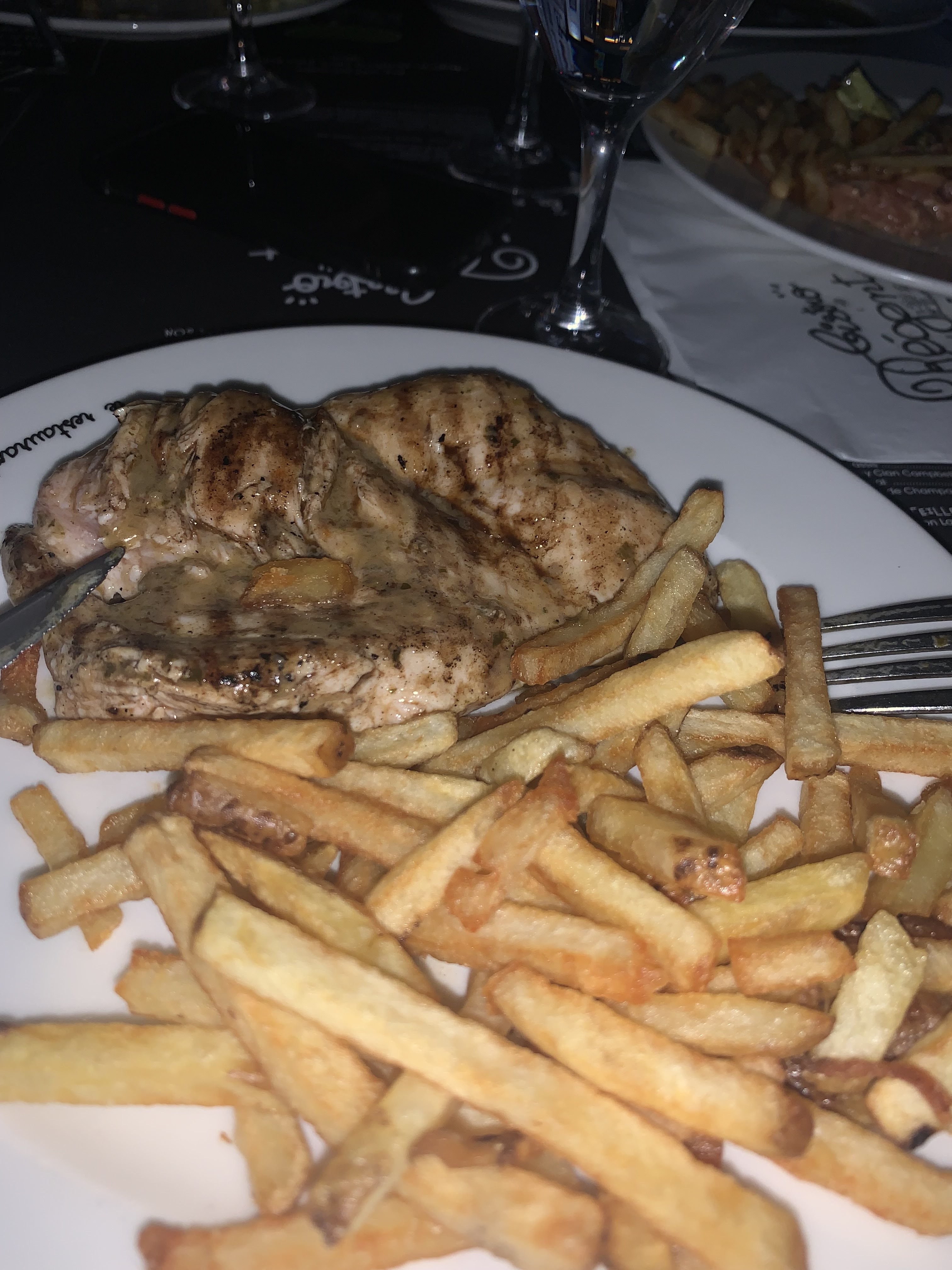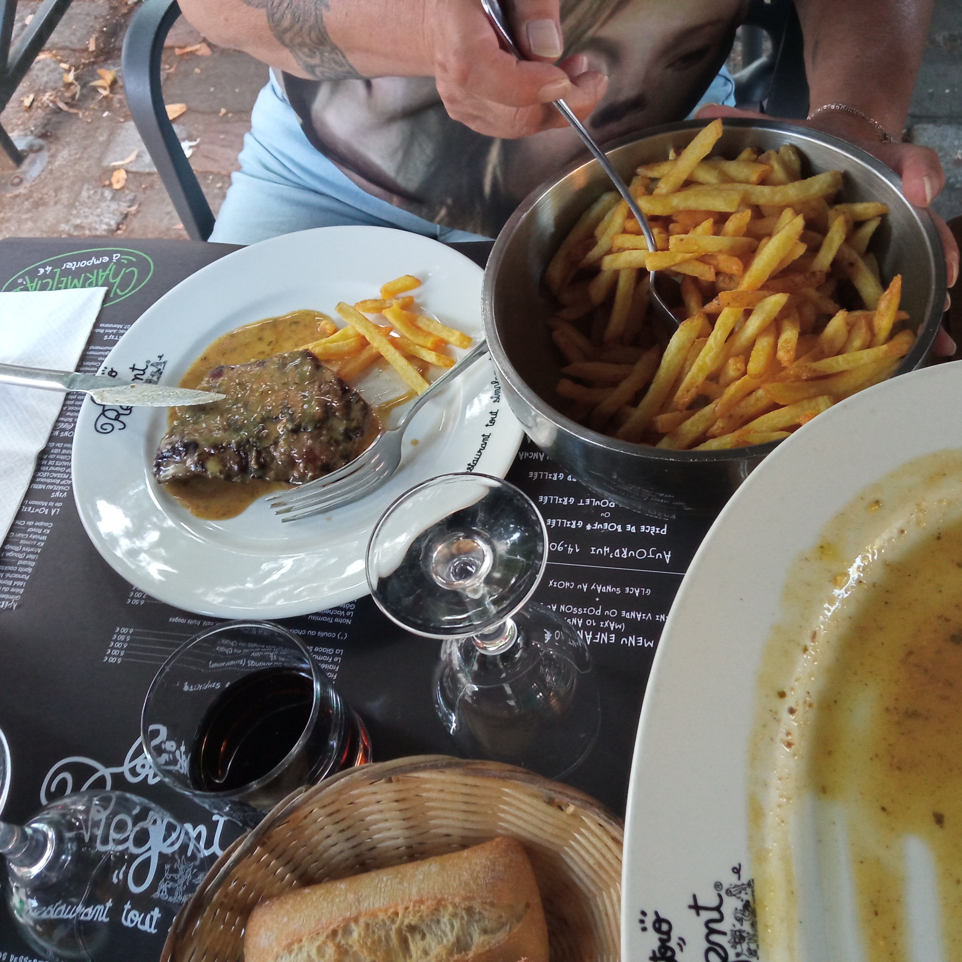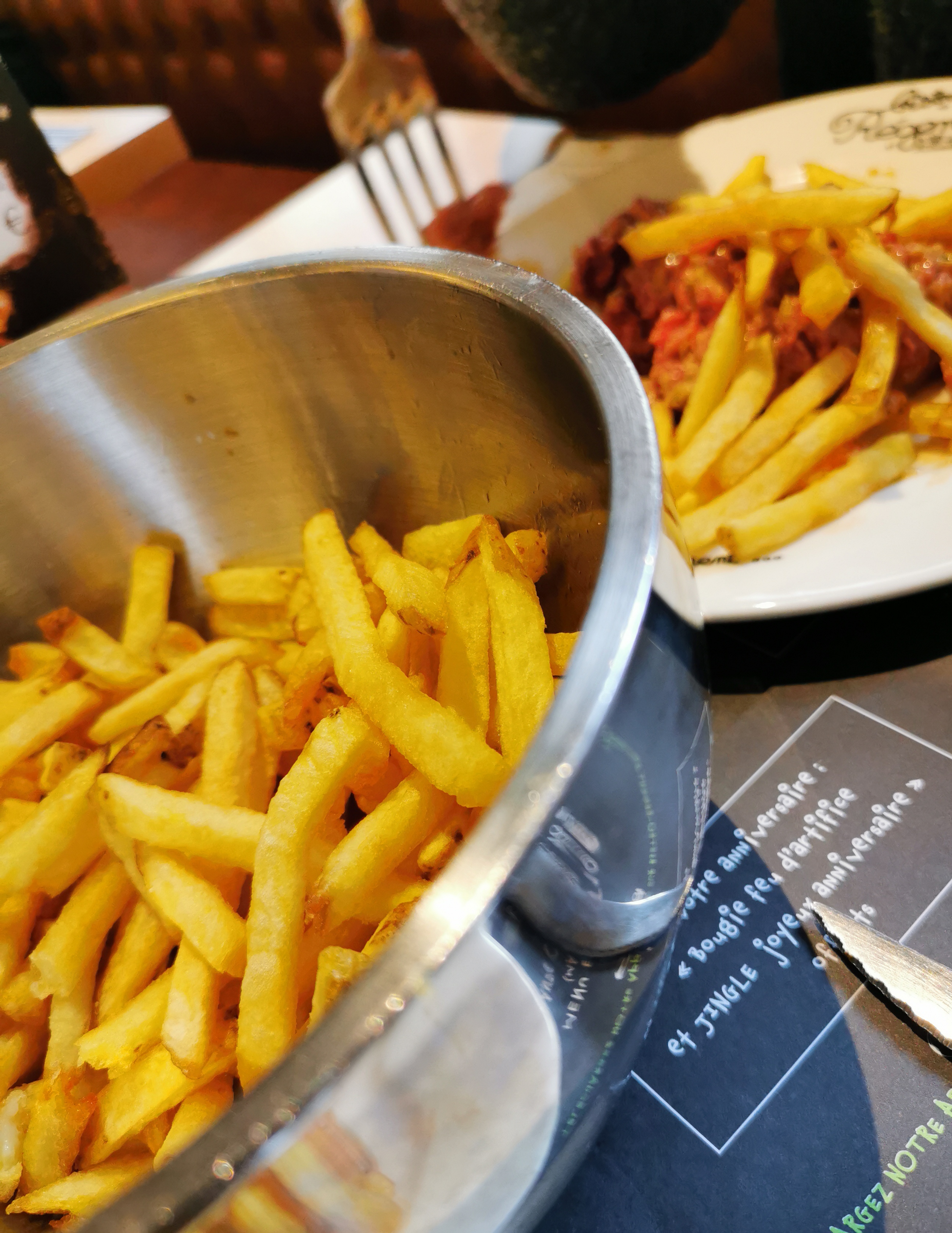 Désolé la viande était trop bonne donc pas sur la photo, il n'y a plus que les frites. Je recommande vivement ce restaurant autant pour le repas que pour le prix très correct