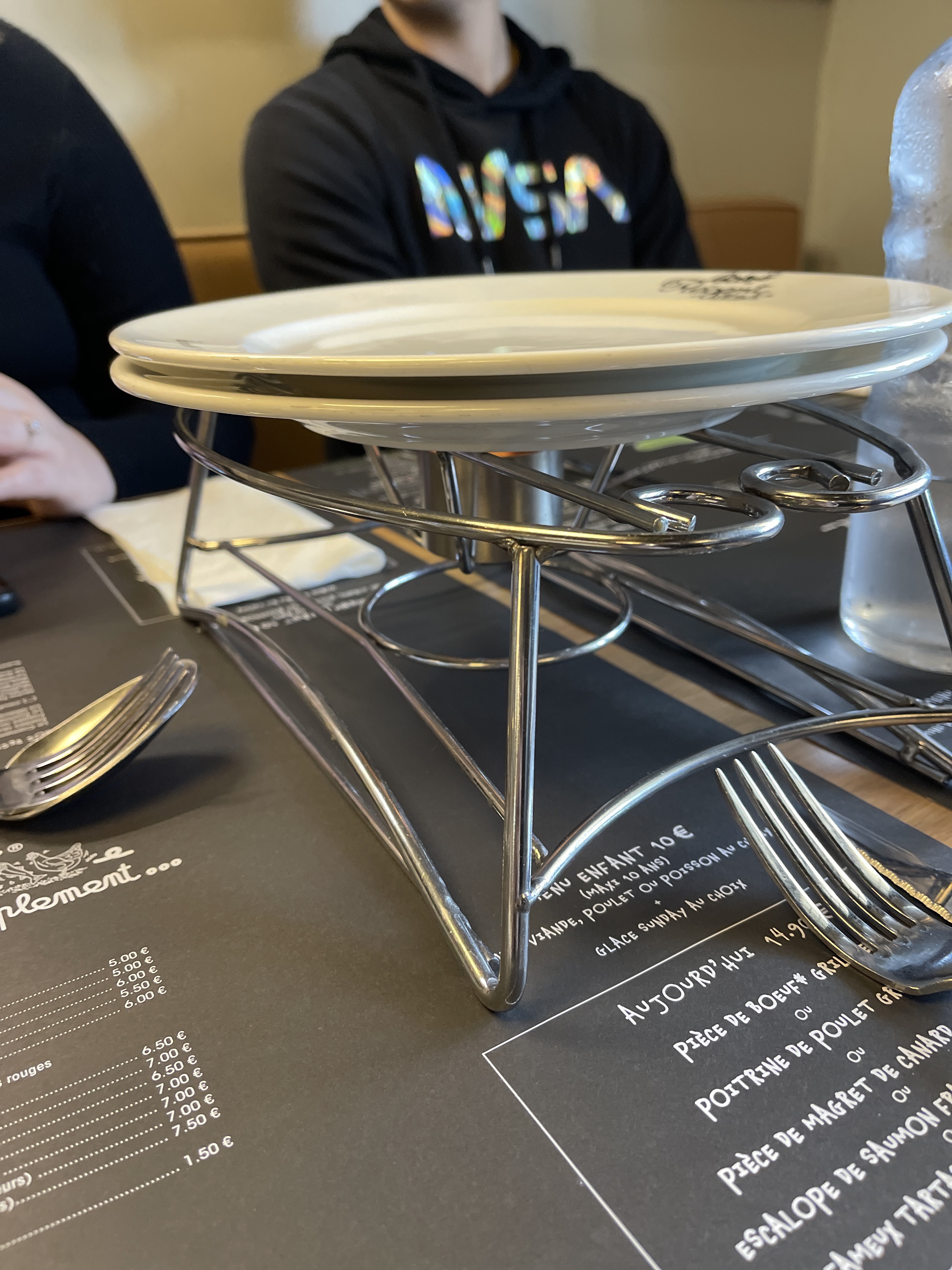 Plats servis en même temps que l'apéro donc plats froids quand on commence à manger . Bougies chauffe plat pas allumées: pensez à prendre 1 briquet. Ok pour le poisson mais frites complètement molles et alors ne prenez pas les profiteroles: 2 énormes choux en pâte feuilletée servis encore congelés ... le hum de la carte devient plutôt un pas ouf .