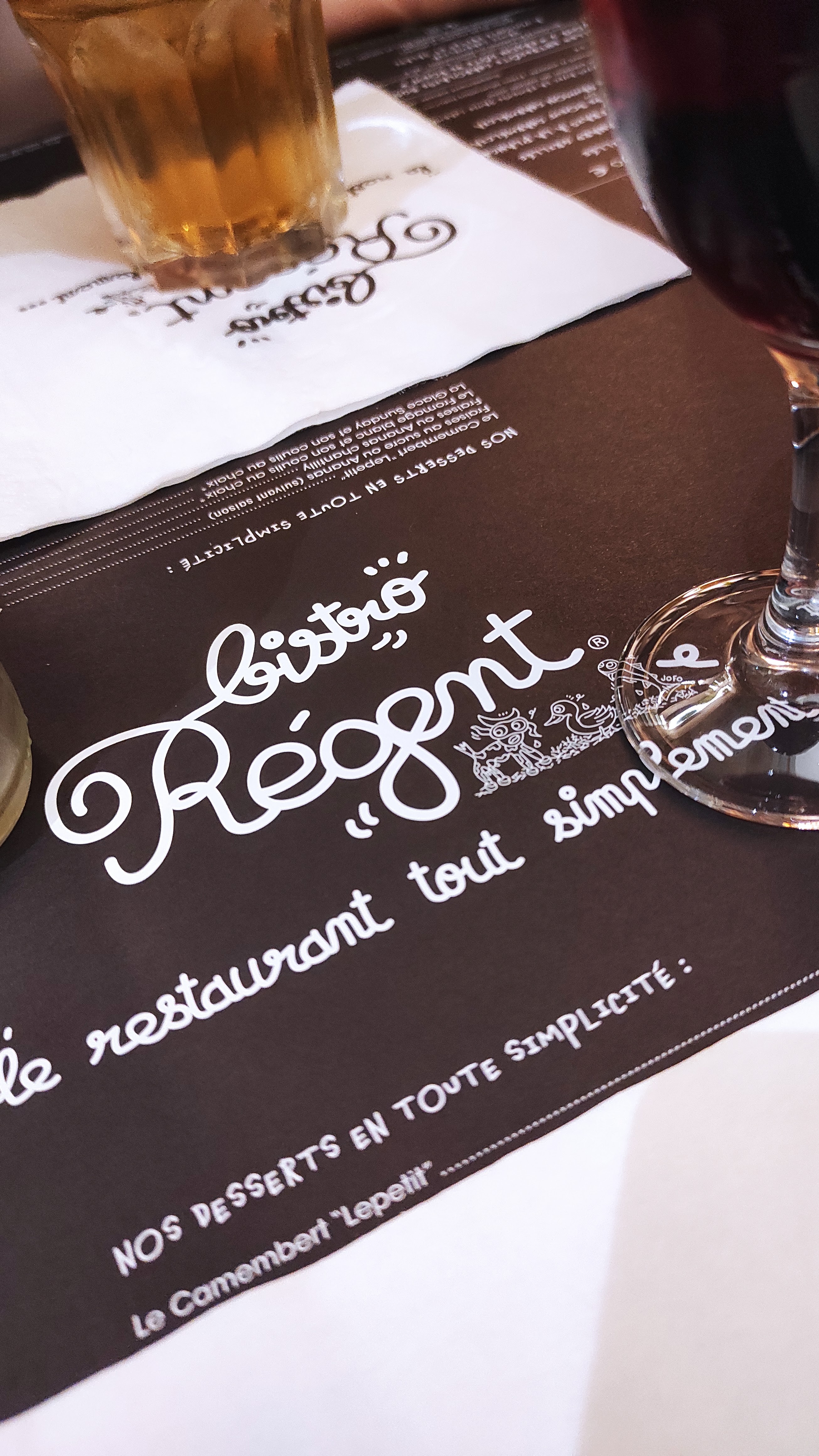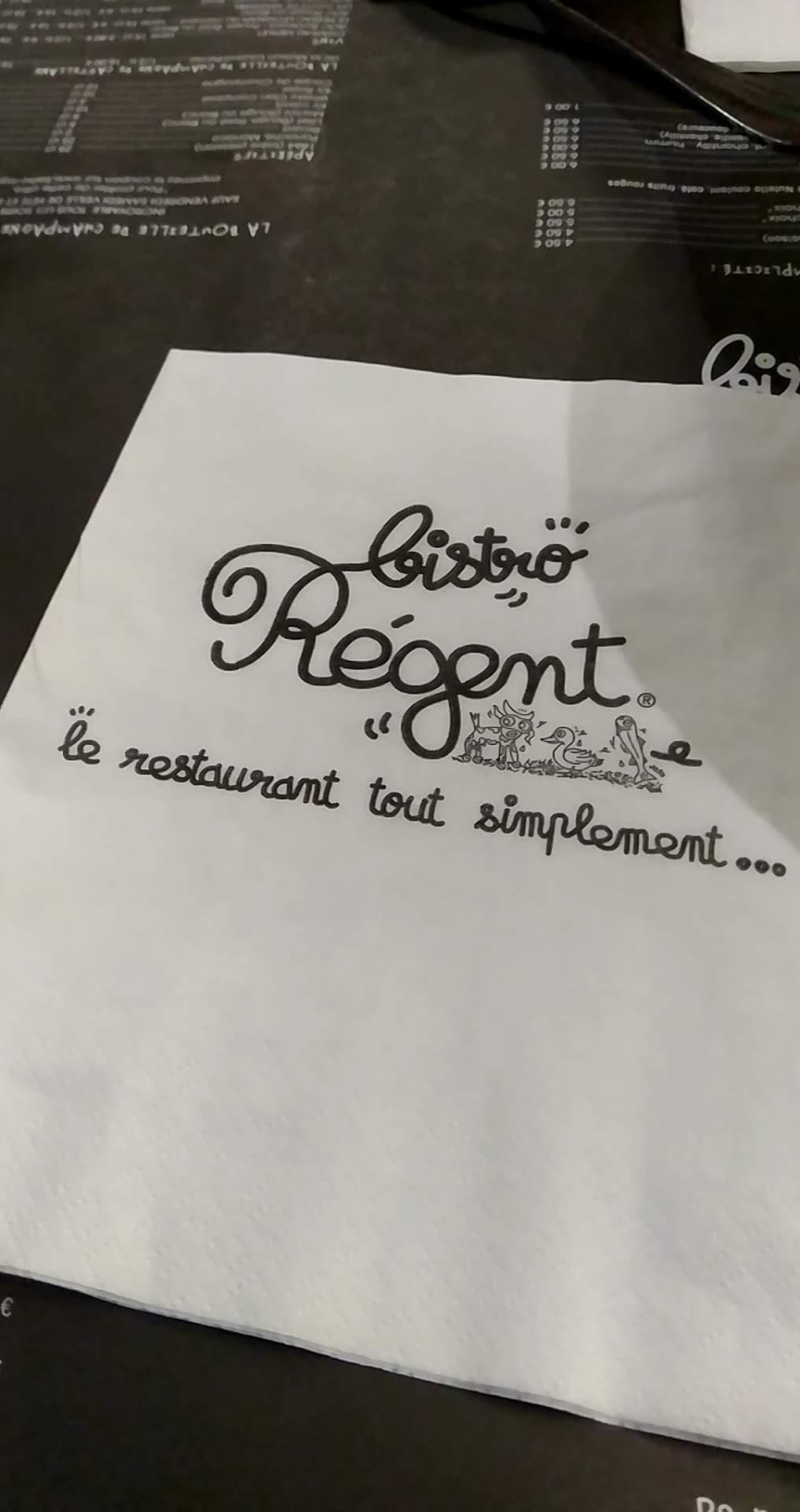 Félicitations pour votre professionnalisme. A l écoute de vos clients, échange très agréable Service impeccable. Nous recommandons ce Bistro Régent.