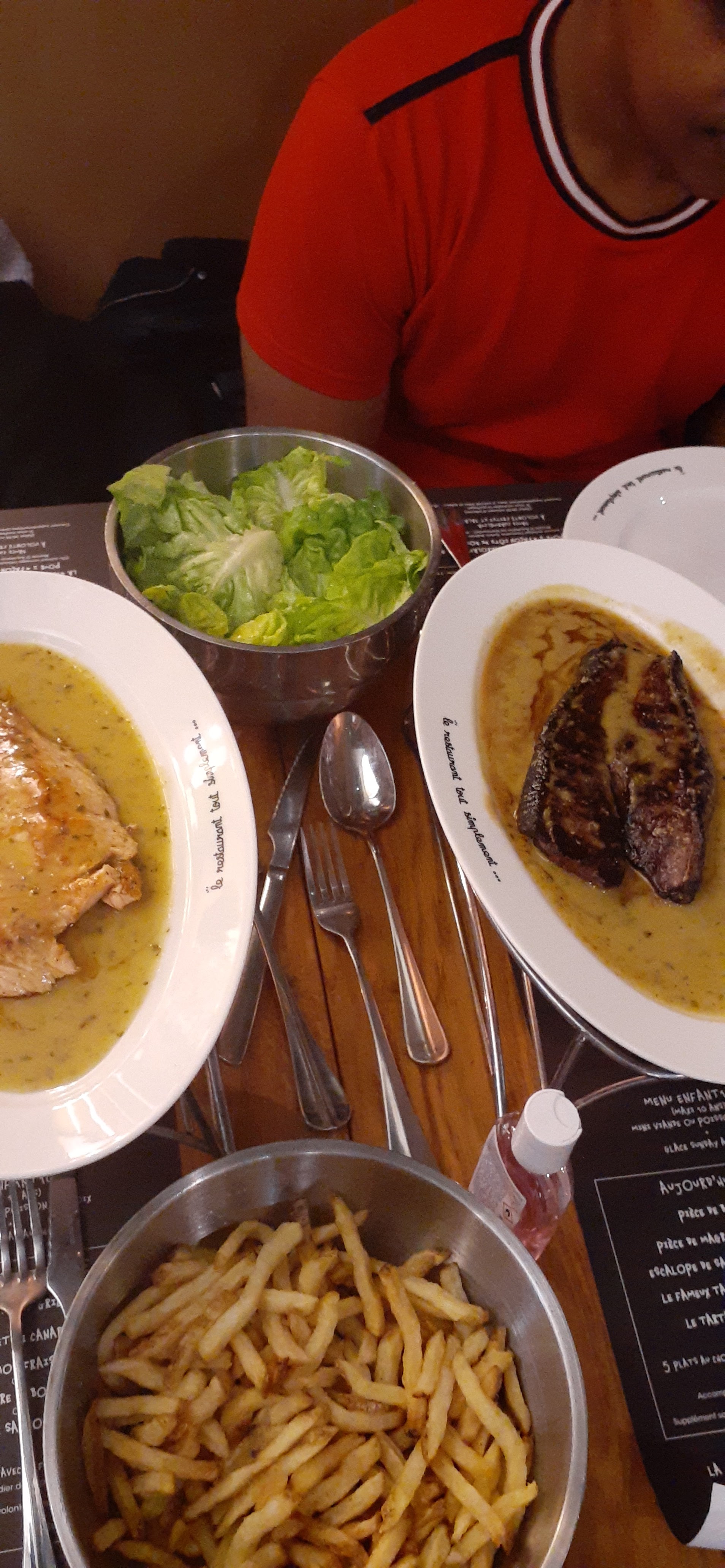 Un super bistro très convivial, on choisit une viande ou un poisson, et les frites et la salade sont servis à volonté dans un grand bol comme à la maison. Quant à la sauce secrète, un délice et un serveur vraiment dévoué. Nous avons passé une super soirée en famille