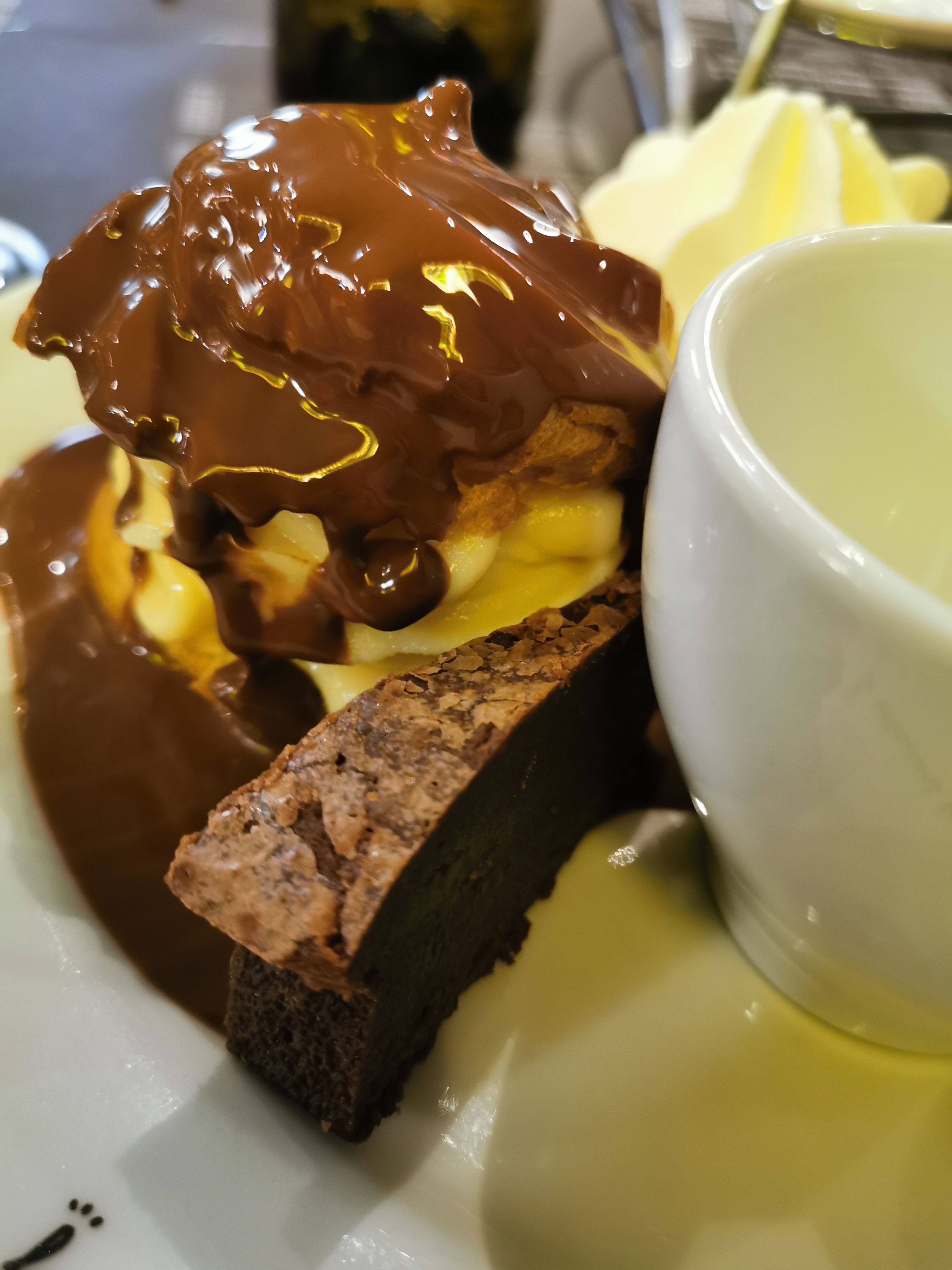 Restauration sans grande surprise car toujours les mêmes plats signature dans tous les bistrots Régent. Dessert café gourmand généreux avec un énorme profiterole.