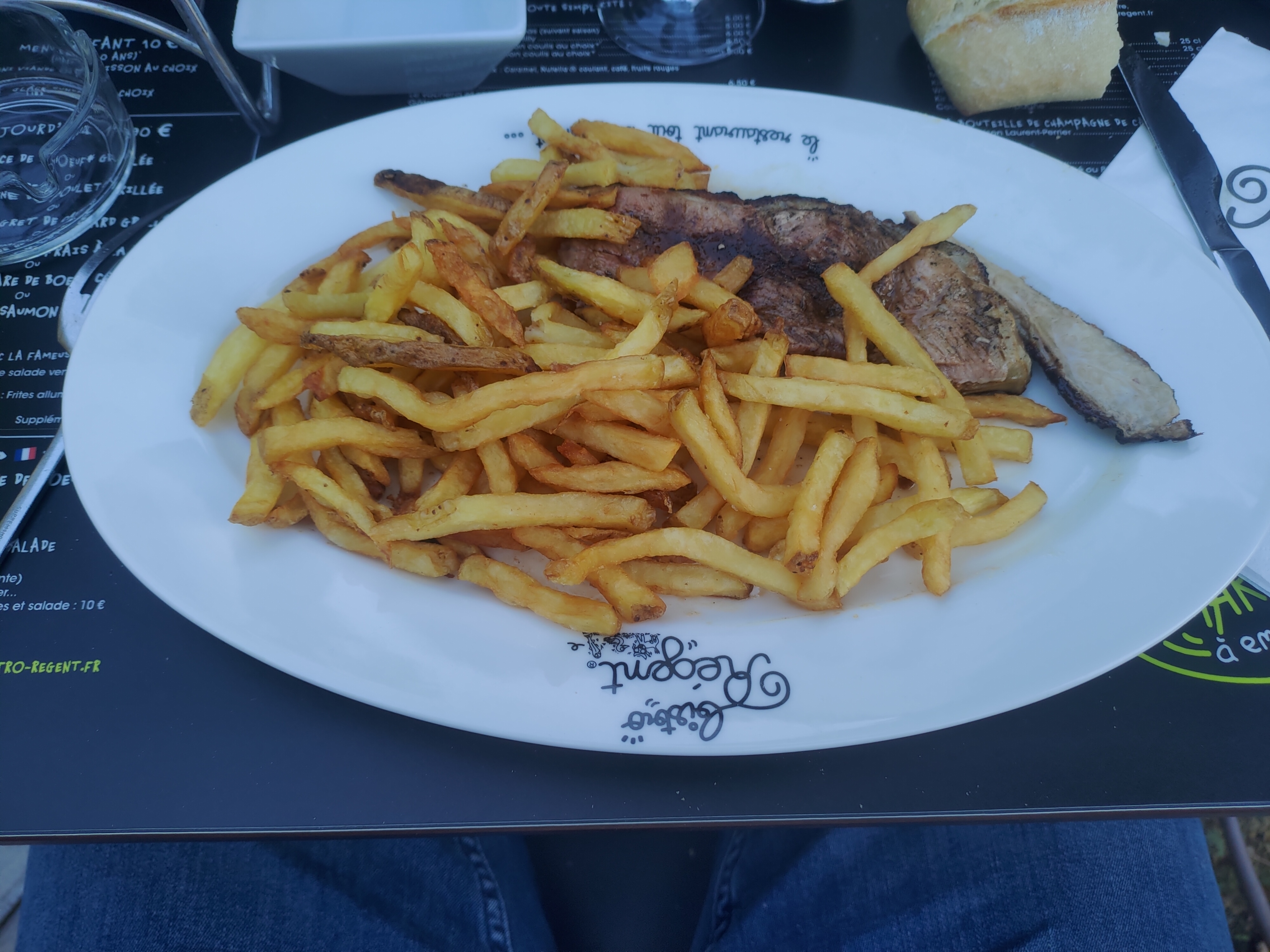 Les frites sont plutôt des epluchures de pommes de terre frites. ********************************** Décembre 2022 , nouvelle visite et évaluation beaucoup plus positive . La pièce de bœuf est tendre (attendrie peut-être mais tendre et sans nerfs) , le tartare de saumon très bon, et les frites belles et servies chaudes . Le sunday au caramel très bon ,la bouteille de Bordeaux à prix raisonnable. Service agréable ; nous sommes venus avant la foule ...