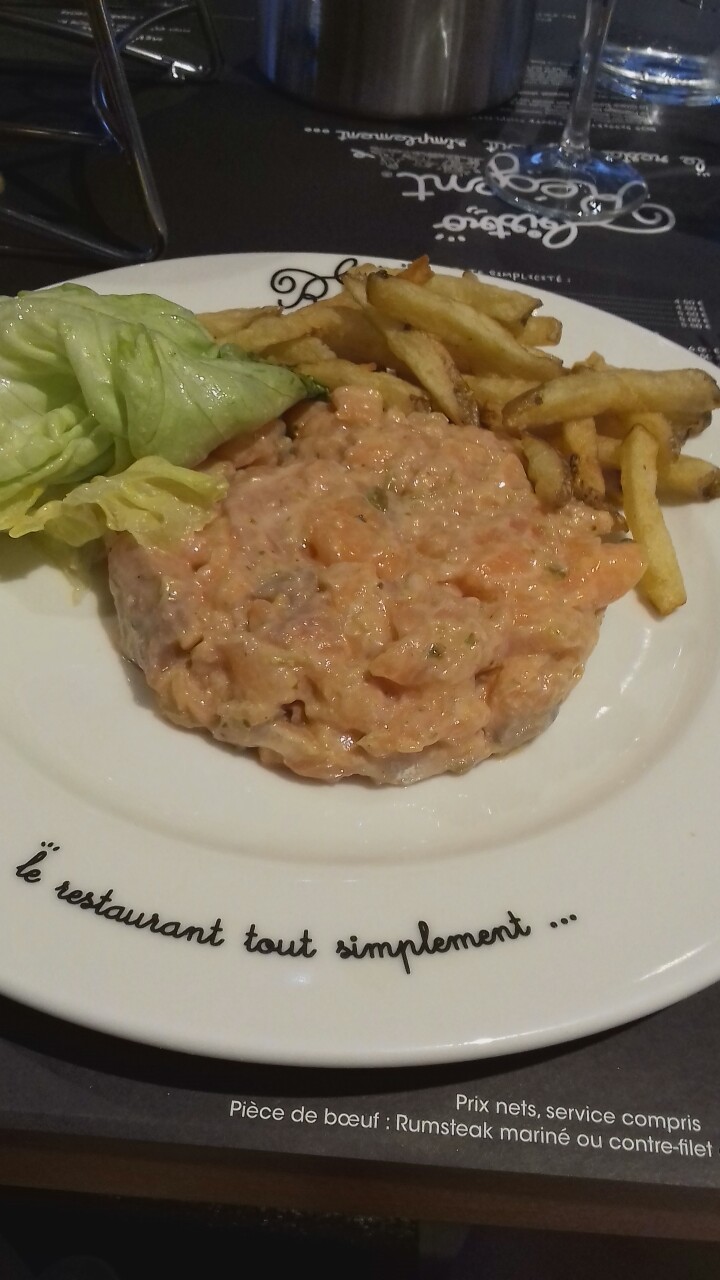 Bon restaurant. Carte simple et produits de qualité. Le tartare de saumon au top assaisonnement nickel. Les sauces la salade et les frites rien à redire. Desserts copieux. Toute la famille s est régalée. Service et serveur/serveuse efficace et sympathique.