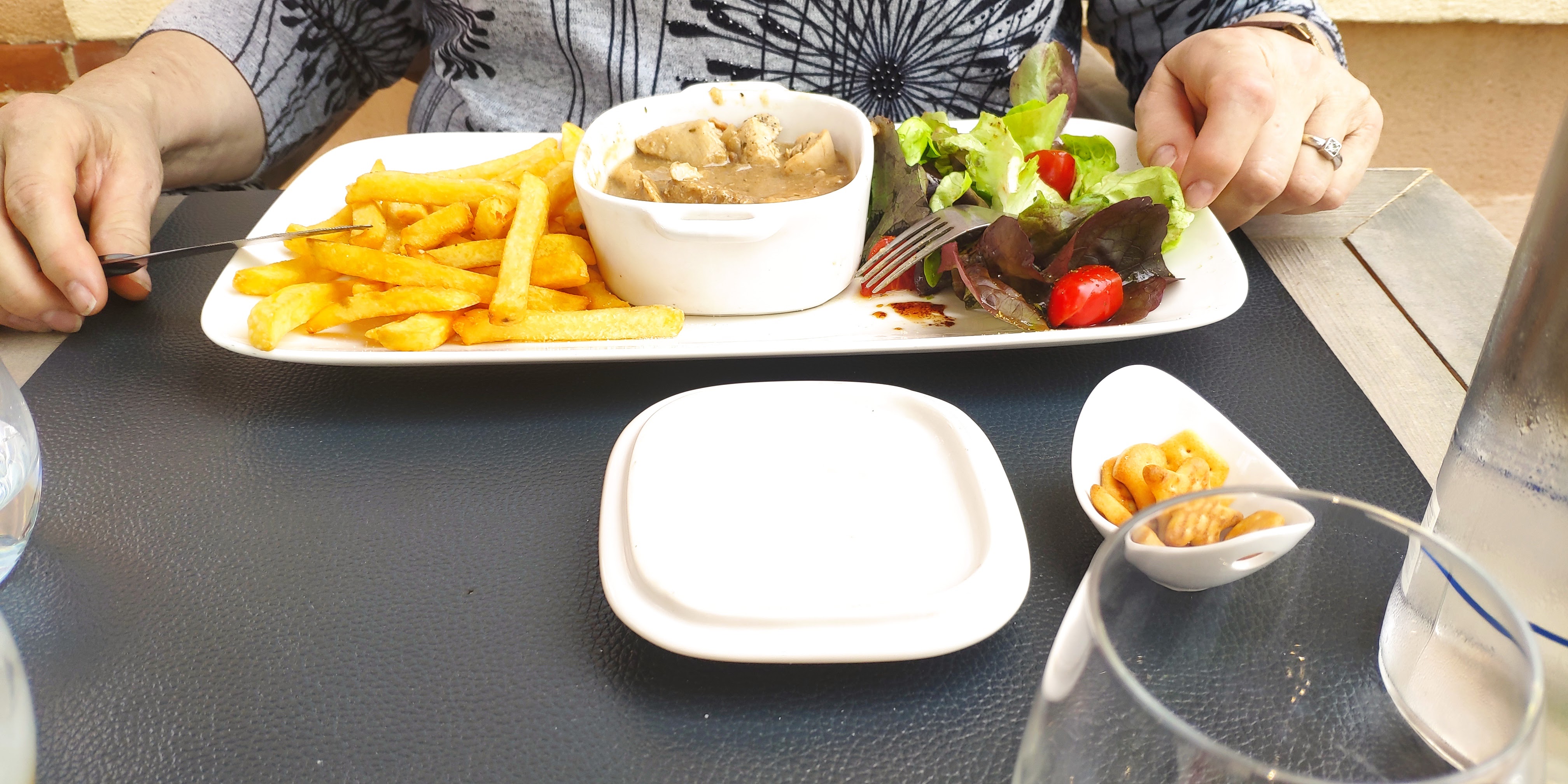 Nous avons rencontré Peter et Hilde dans notre camping à Cézan et étions très curieux de connaître leur bistro. Heureusement, c'était sur une piste cyclable que nous pouvions emprunter depuis le camping et après 22 km nous y sommes arrivés. Nous avons apprécié un délicieux repas dans une bonne ambiance. Puis encore 10 km pour revenir au camping.