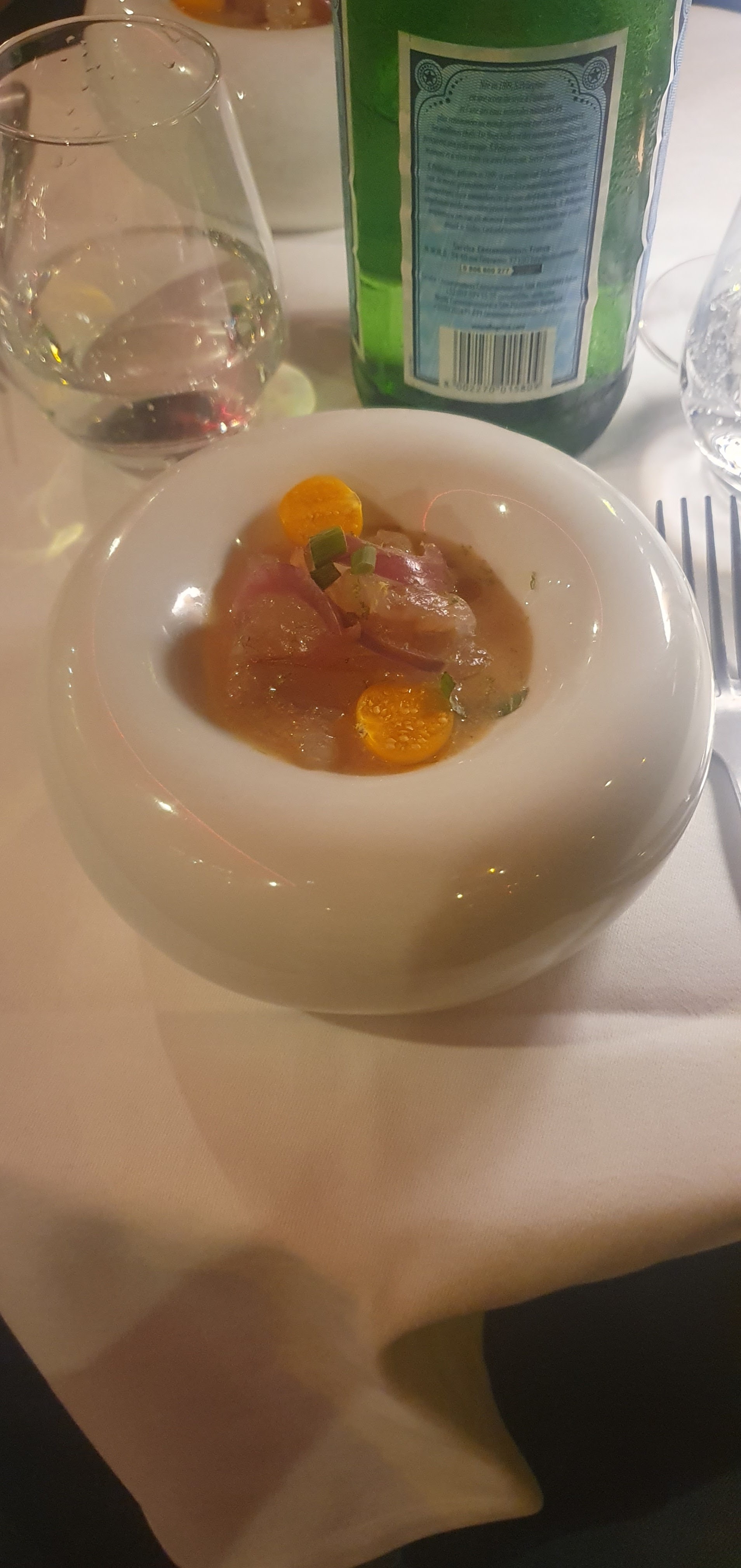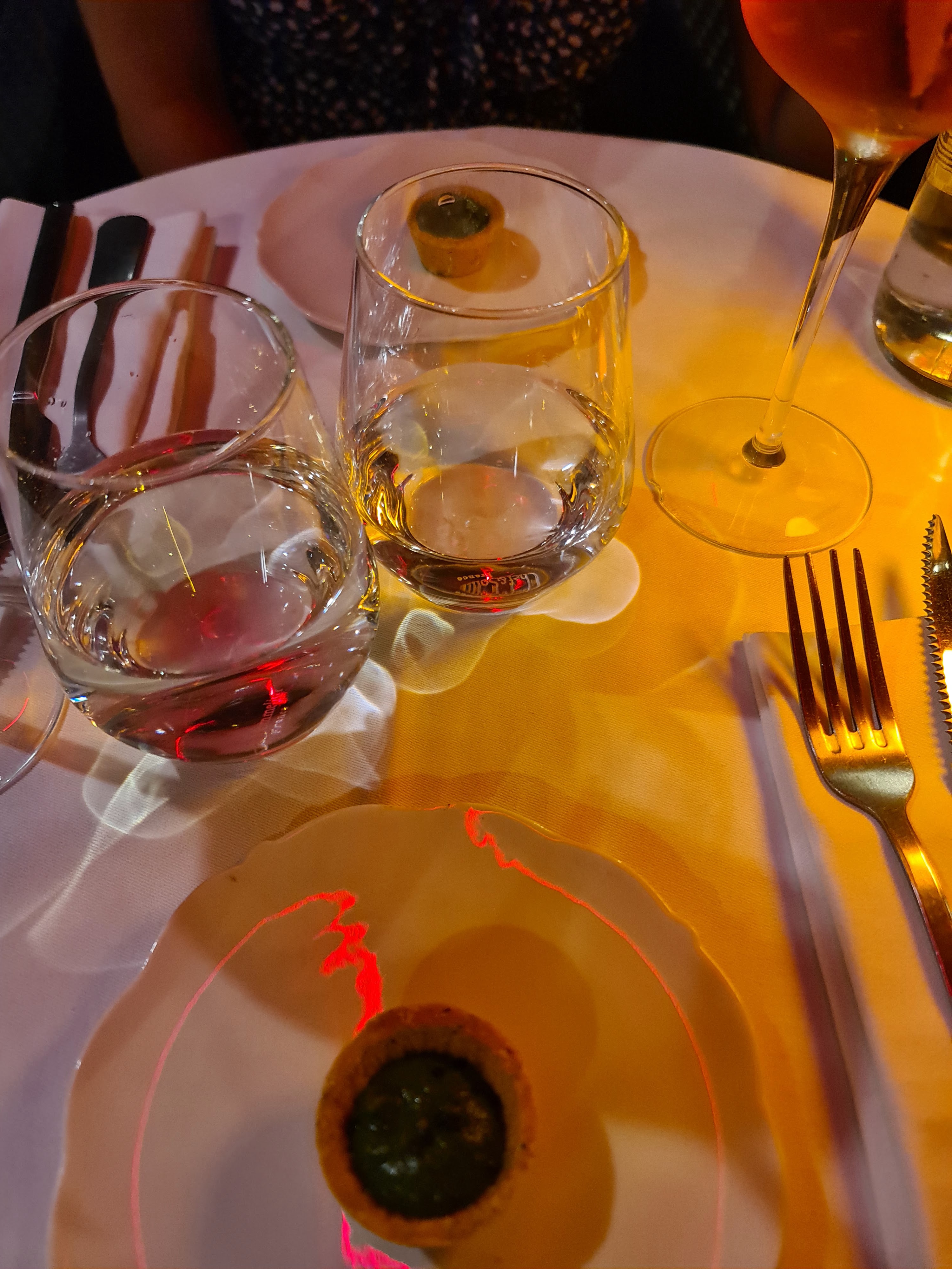 Très bonne soirée, plats excellents et vins pour les accompagner parfaits (option vin prestige choisie, mais aucun doute que l'option simple aurait été excellente également) ; mention spéciale en fin de repas pour le rhum arrange au romarin accueil ++++ Bref une très belle adresse que l'on ne saurait que recommander !!!!
