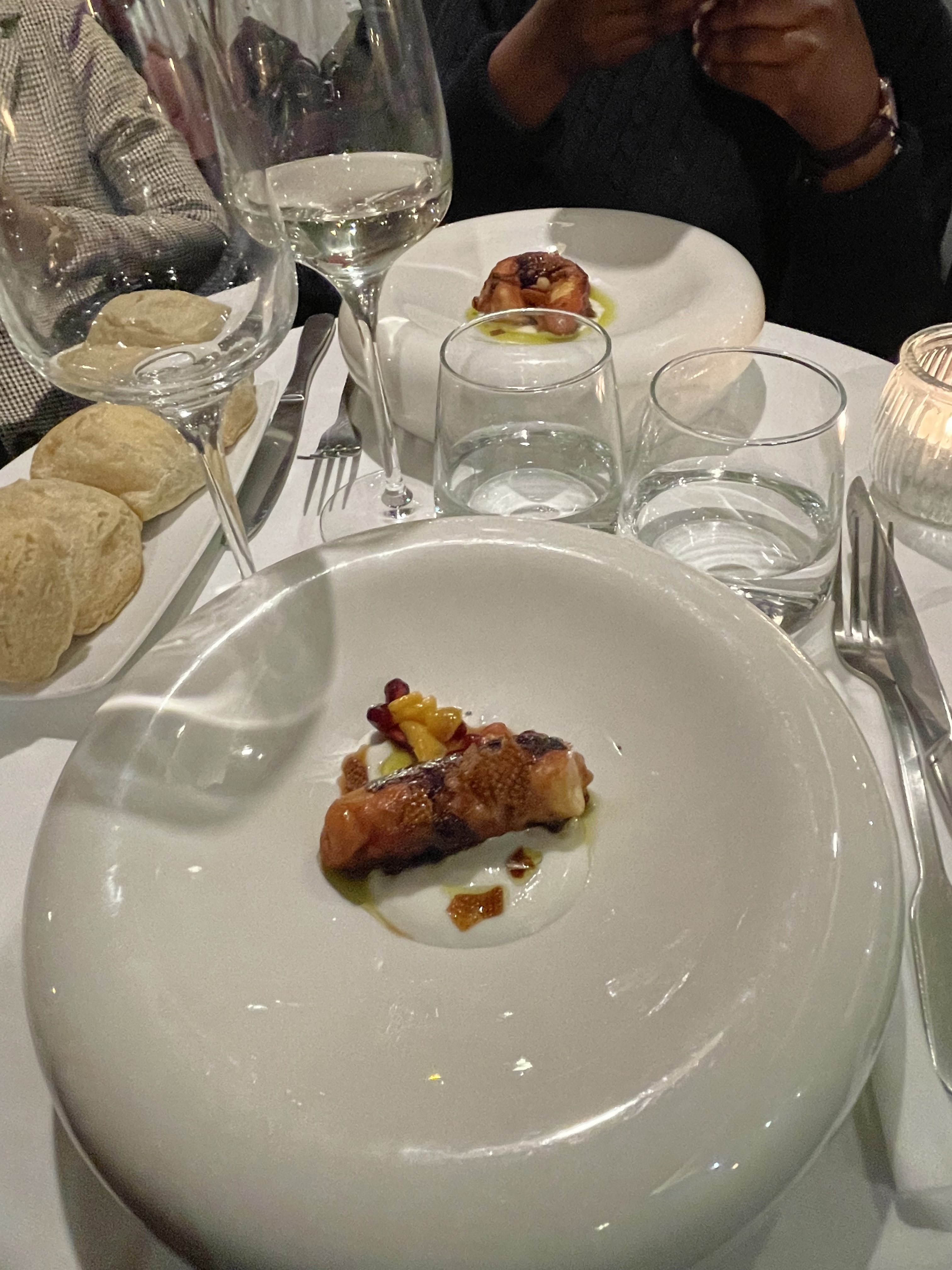 Très belle découverte avec un personnel aux petits soins. Nous avons opté pour un menu en 7 temps qui était excellent de l'entrée au dessert. L'ambiance est très agréable. Je recommande à ceux qui n'ont pas eu l'occasion de tester ce restaurant de le faire dès que possible. Mention spéciale pour le poulpe, le boeuf et le dessert qui étaient succulents !