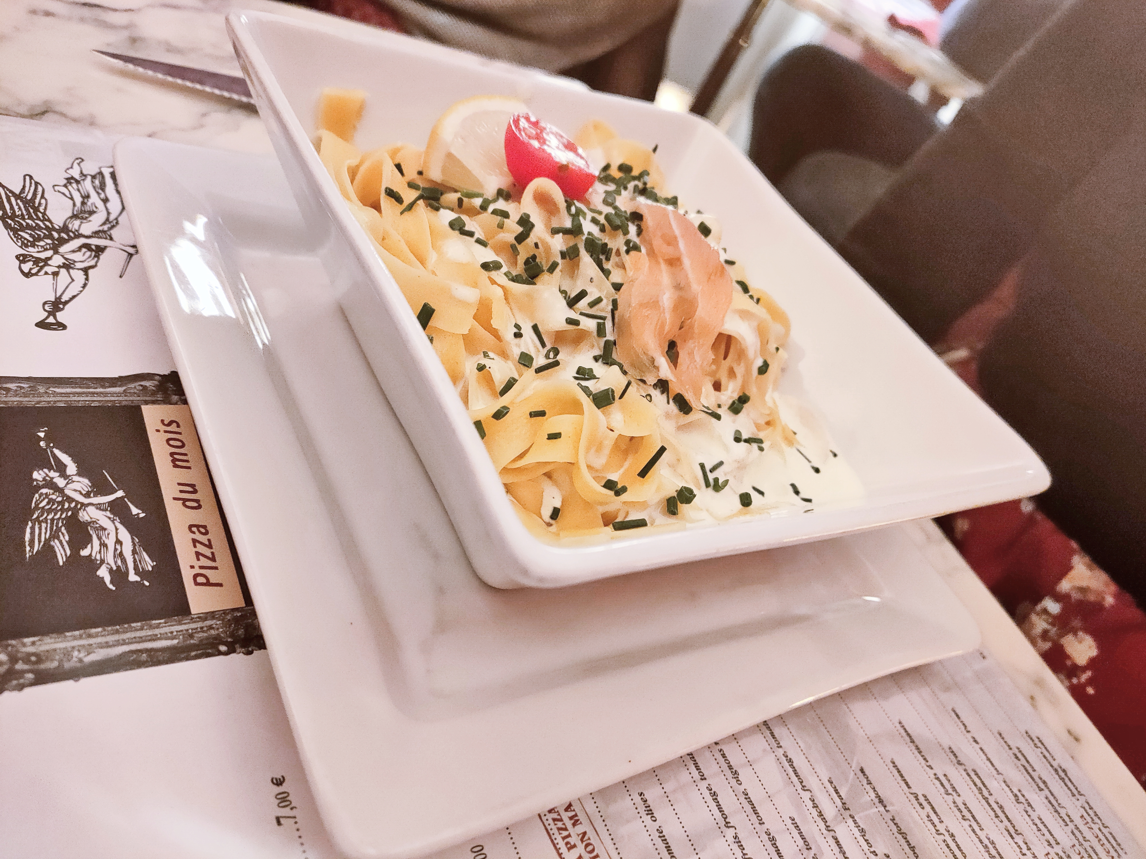 Service exécrable, une attente de 40min pour avoir nos plats et de manière séparé (sympathique de manger alors que l'autre n'a pas encore reçu sa commande). Niveau cuisine, les pâtes sont épaisses mais cela reste appétissant.