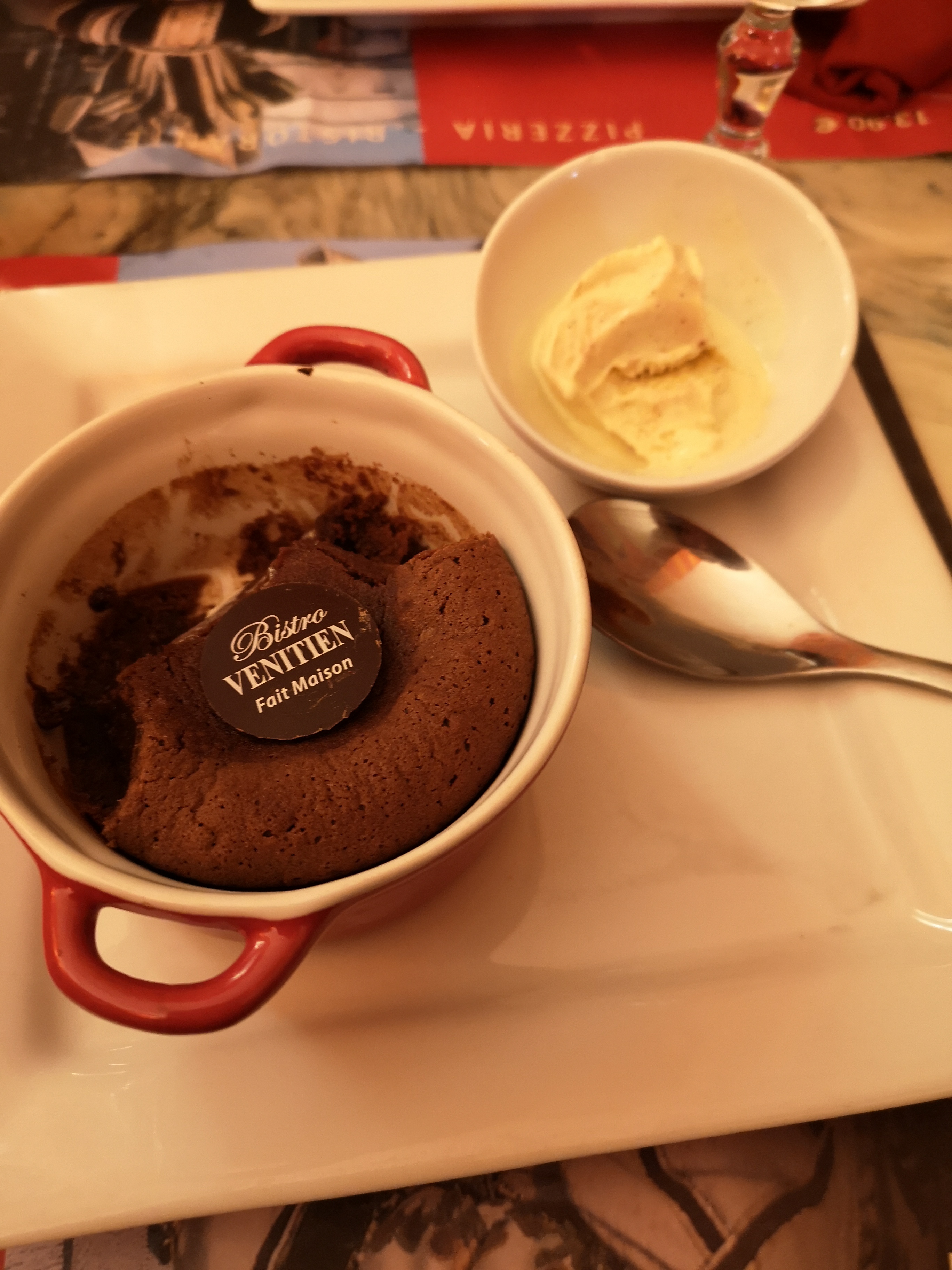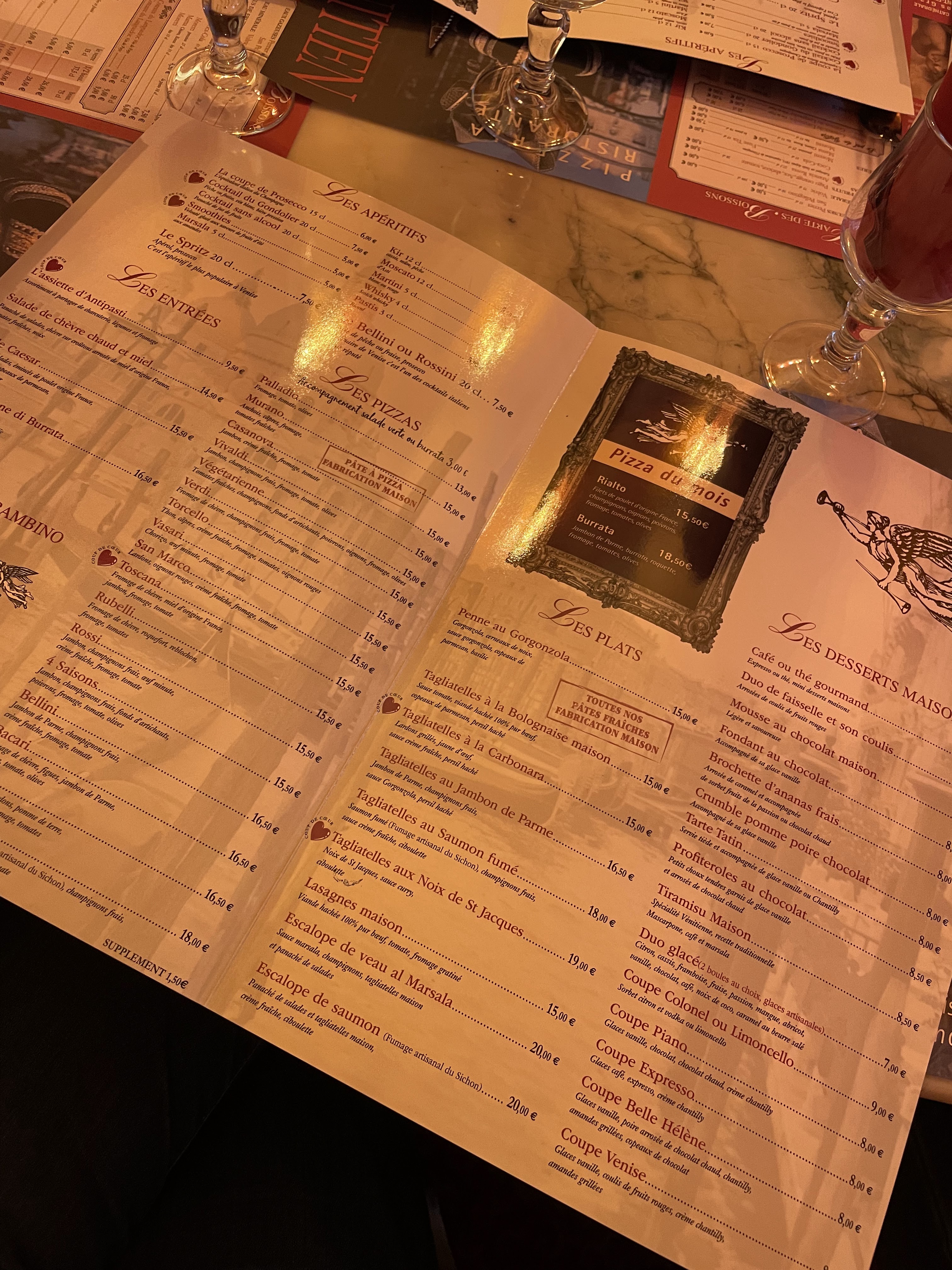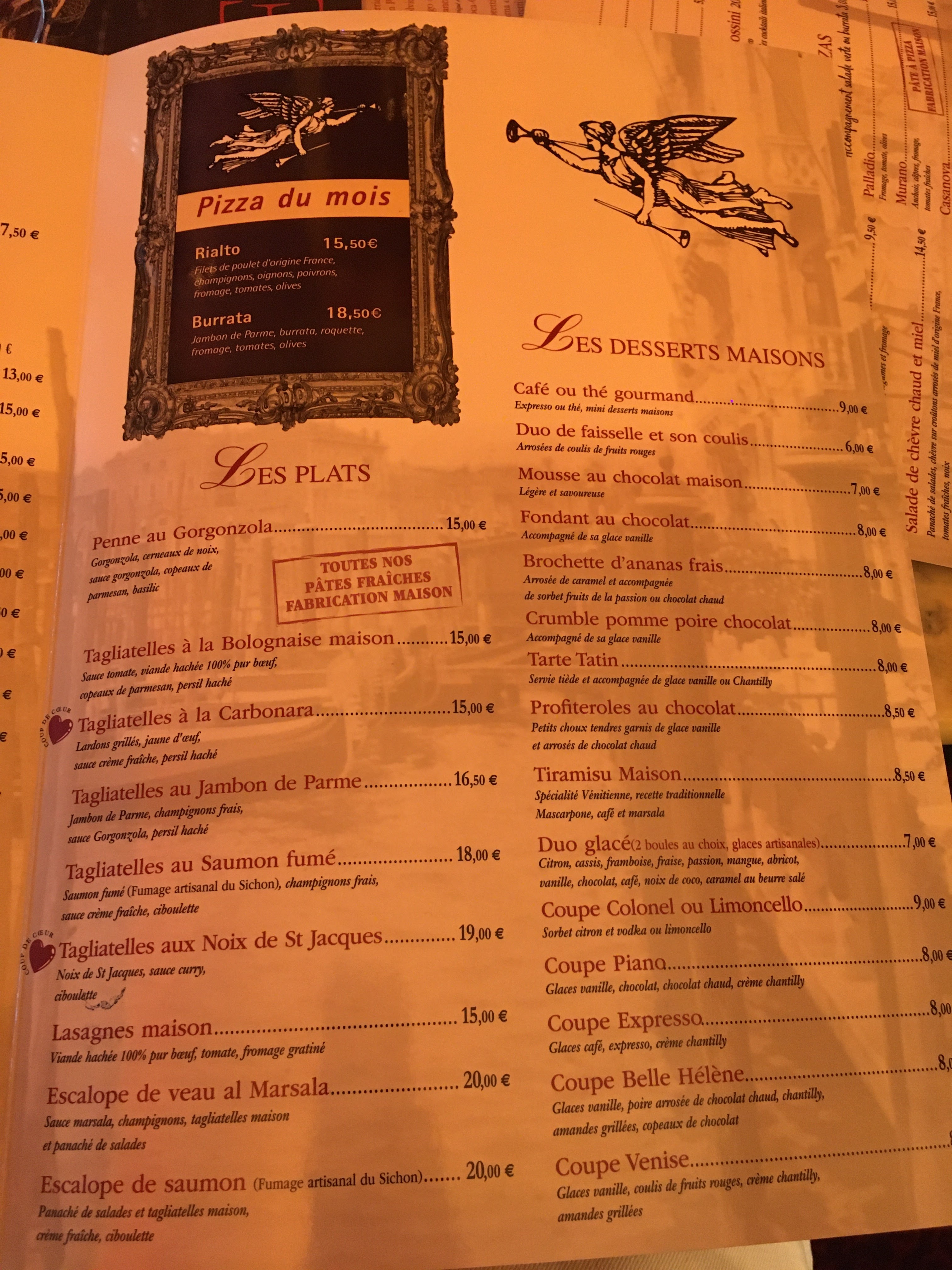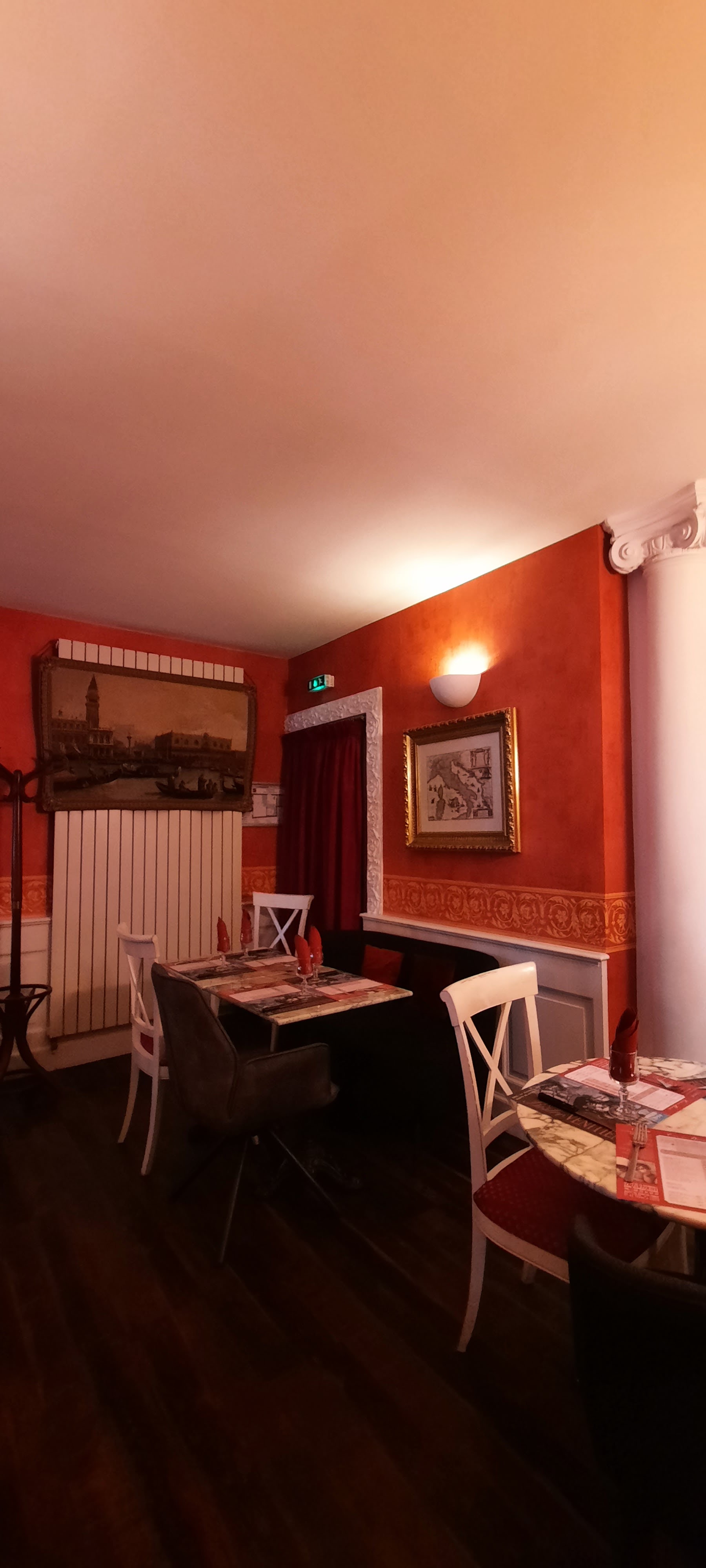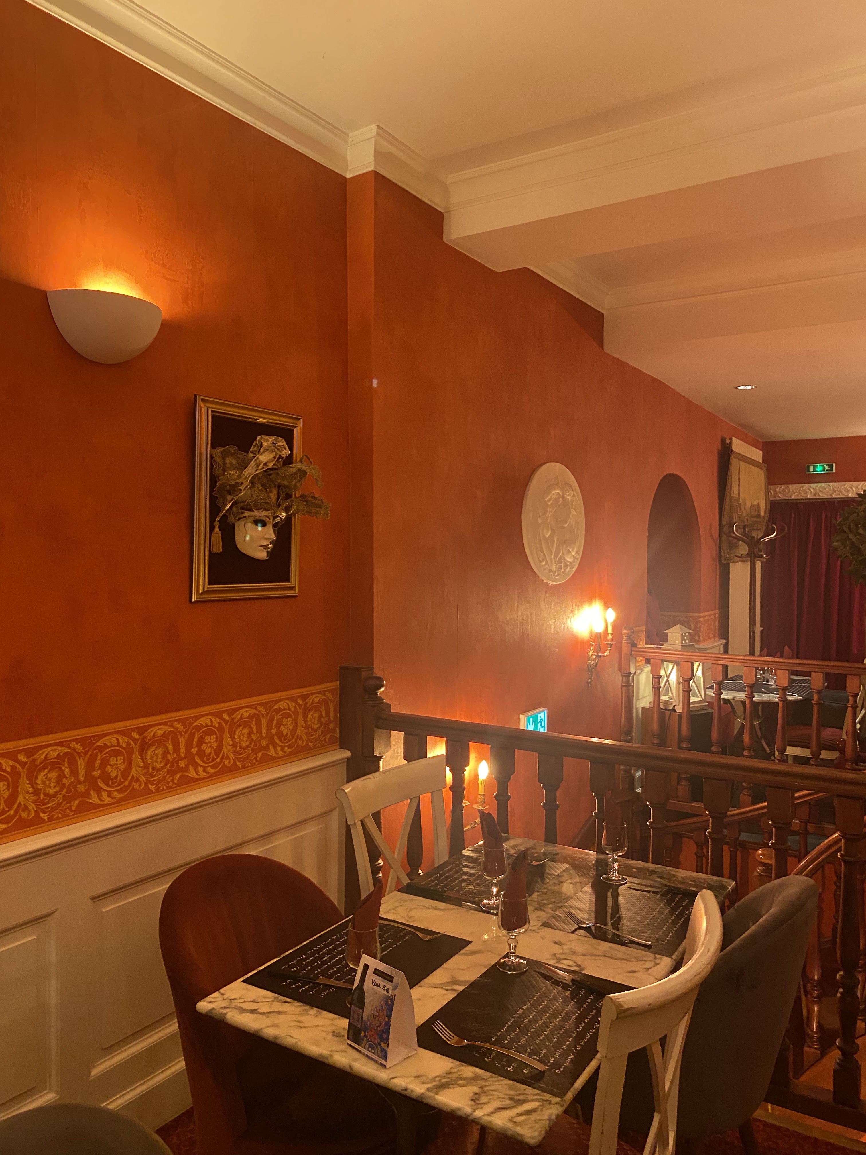 Une super découverte avec une ambiance Venitienne parfaite et très cocooning avec des recoins un peu partout qui permettent de se sentir à l’écart, en intimité dans les différentes parties de la salle… On y est allés pour l’anniversaire de mon fiston et la serveuse lui a offert une profiterole avec une bougie alors qu’il n’avait pas pris de dessert ! Super moment, petites attentions sympas, à refaire au plus vite !