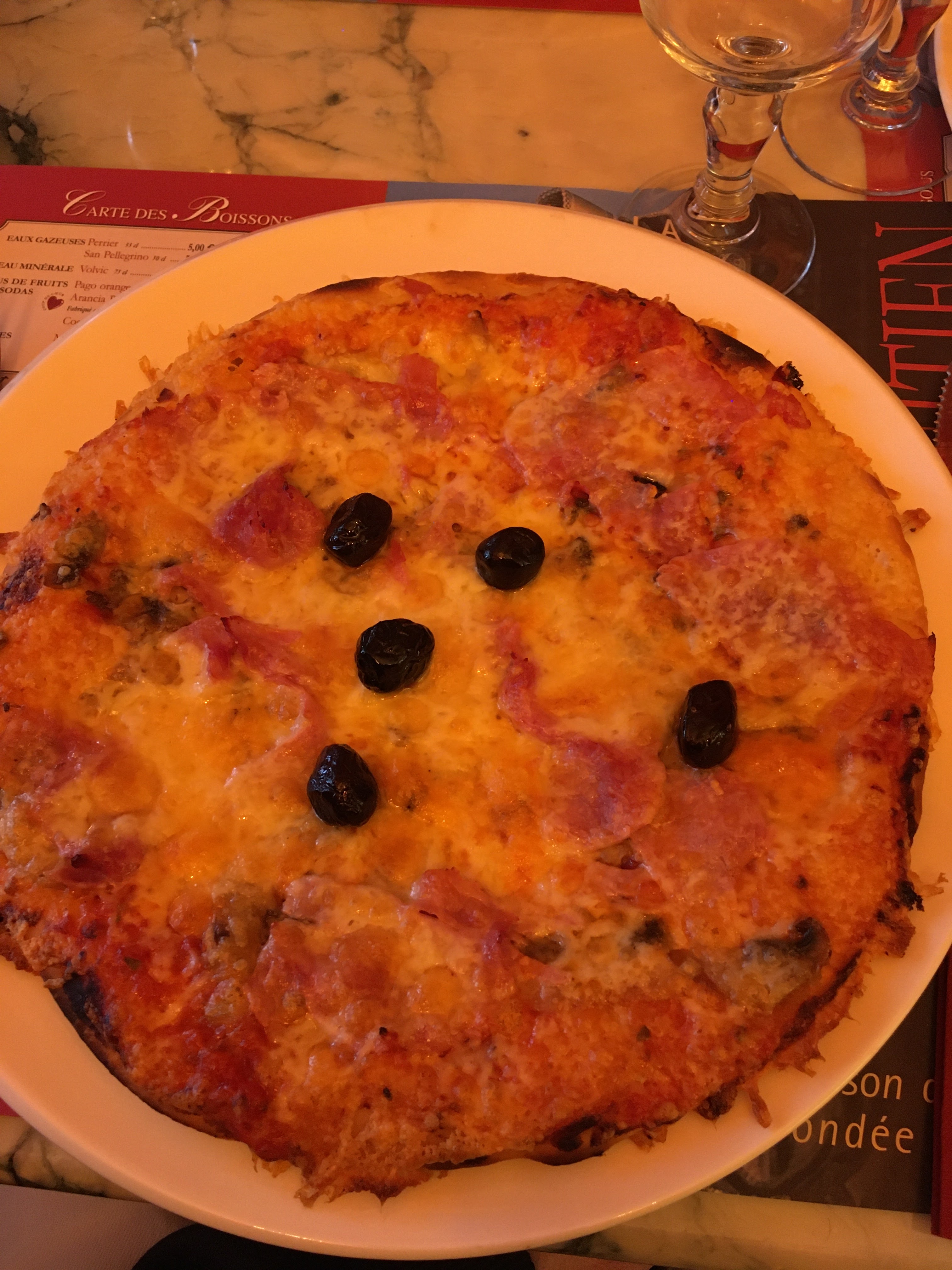 Pizza à pâte fine, un peu de fromage et tomate. (Basique), je m attendais à mieux. En revanche le tiramisu était délicieux Le décor vénitien de la salle est assez chaleureux.